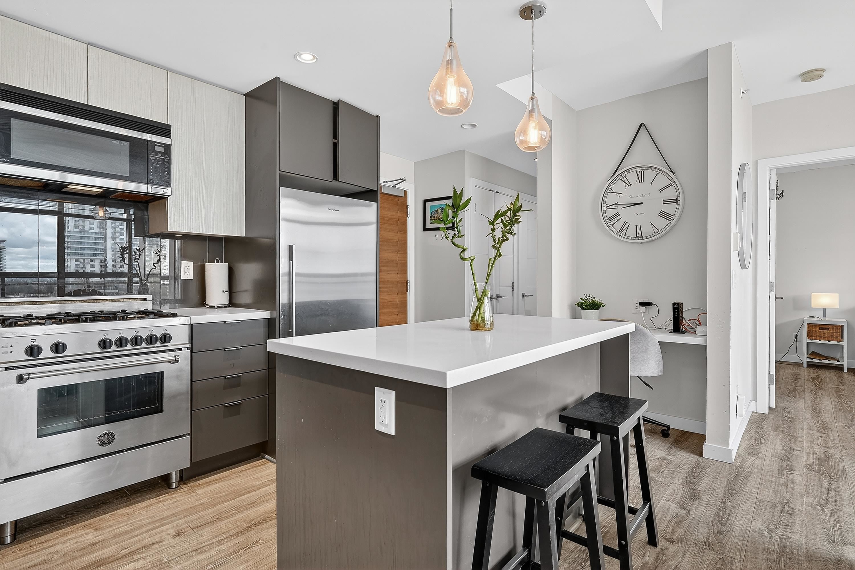 Rare opportunity to own in the sought-after concrete mid-rise Novella, ideally situated in the heart of Burquitlam at 711 Breslay Street. Enjoy unparalleled convenience just steps from Safeway, Burquitlam SkyTrain Station, new YMCA, and more. Direct transit to SFU and a short drive to Como Lake and Mundy Park make this location truly exceptional. This bright and modern top-floor home offers NW-facing views from a generous private balcony. Inside, a spacious open-concept layout features durable laminate floo...