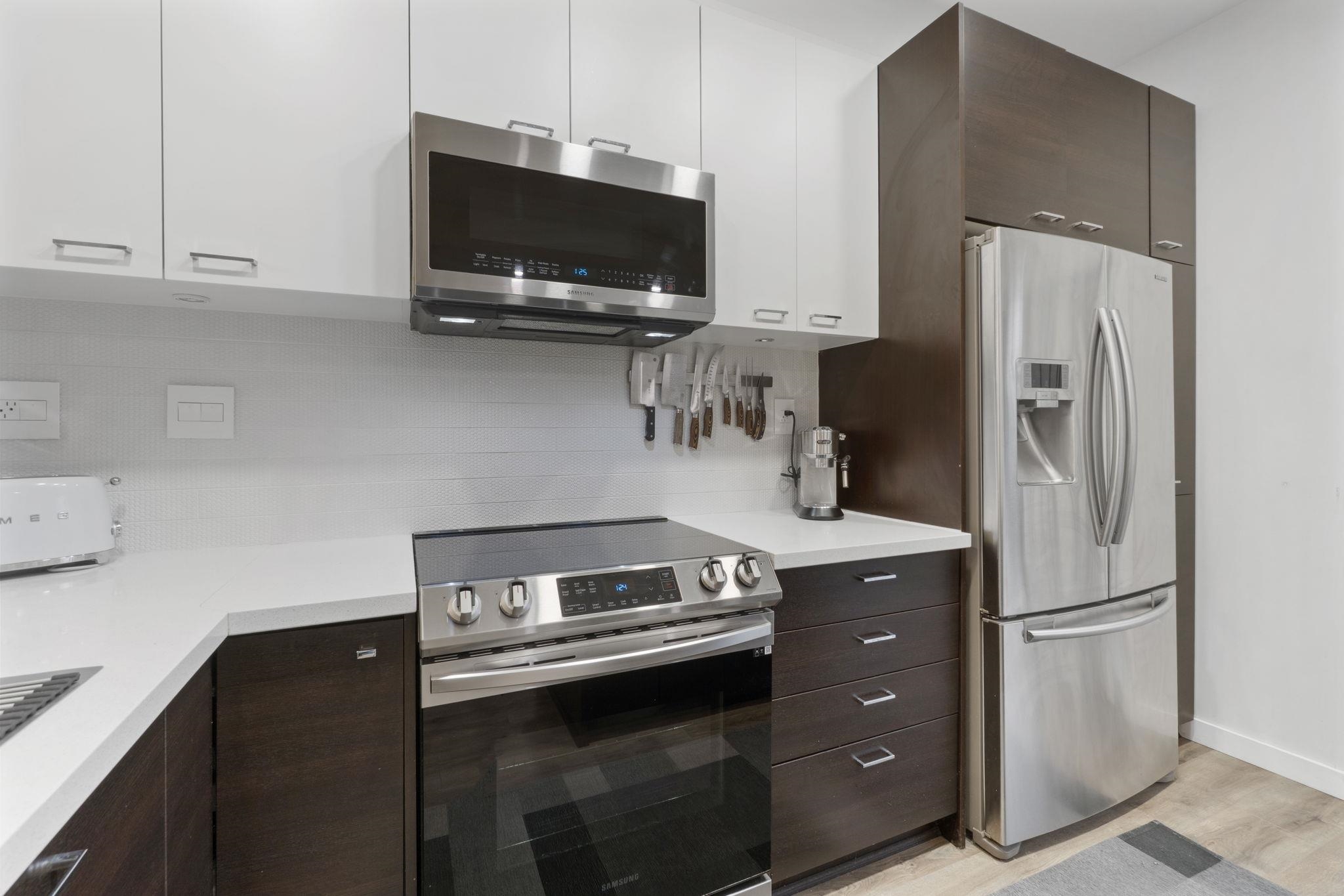 Welcome to this well-appointed 2 bed, 2 bath townhouse in Coquitlam! This home features a functional layout with a bright main level, complete with a balcony and a modern kitchen equipped with stainless steel appliances, built-in microwave, and a fridge with water and ice dispenser. Enjoy indoor-outdoor living with a private patio and small yard on the lower level—perfect for relaxing or entertaining. Includes a double tandem garage for ample parking and storage. Conveniently located with easy access to Lou...