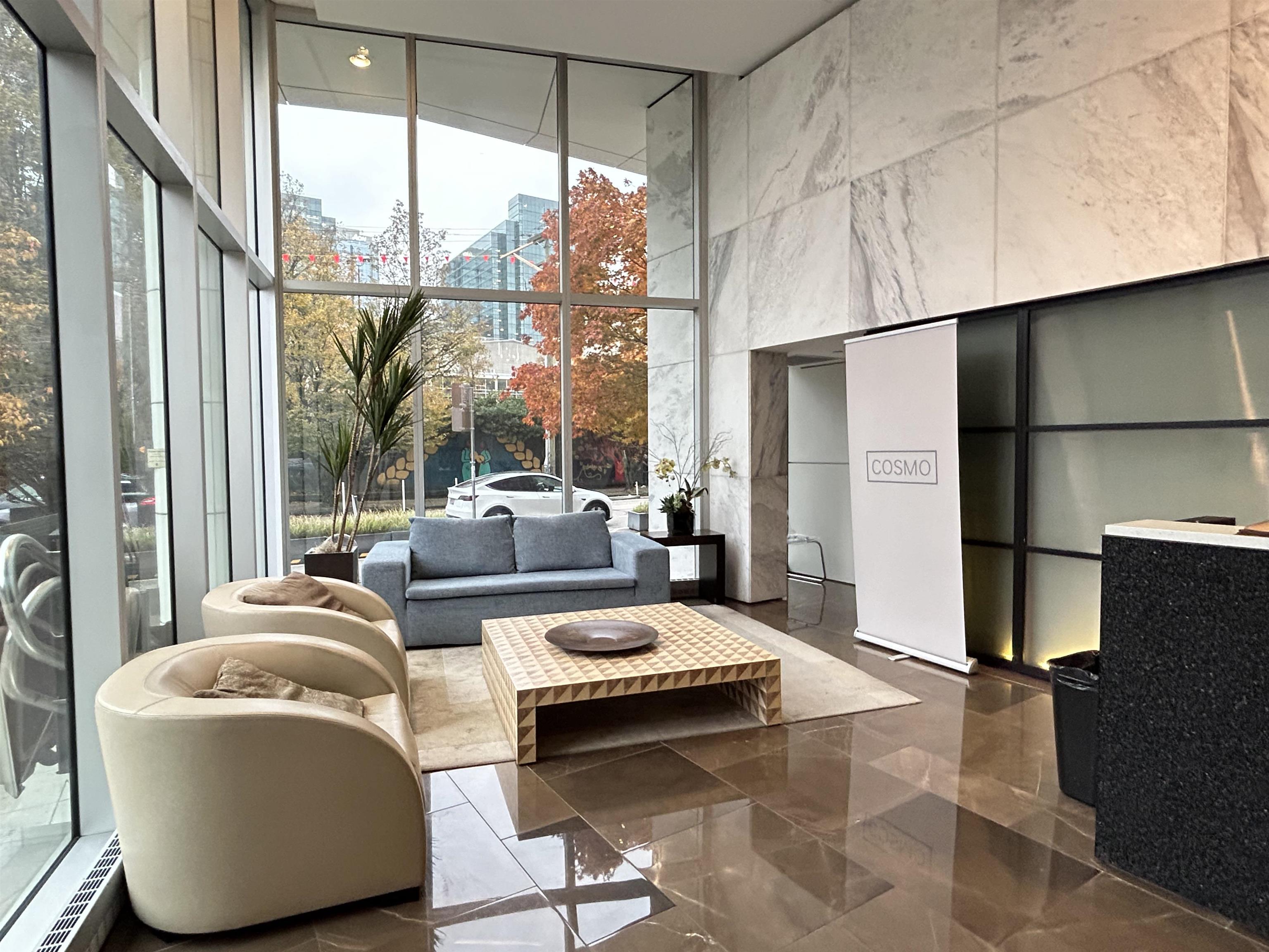 Discover a bright and spacious 1-bedroom plus den residence at COSMO by Concord Pacific, featuring a covered balcony and excellent storage. This home offers a rare, highly functional floor plan with a generously sized den for added flexibility. The south-facing exposure captures beautiful city views with a glimpse of False Creek water views. Enjoy floor-to-ceiling windows, a well-proportioned living and dining area, and a modern kitchen with integrated appliances and quality finishes. Includes one parking s...