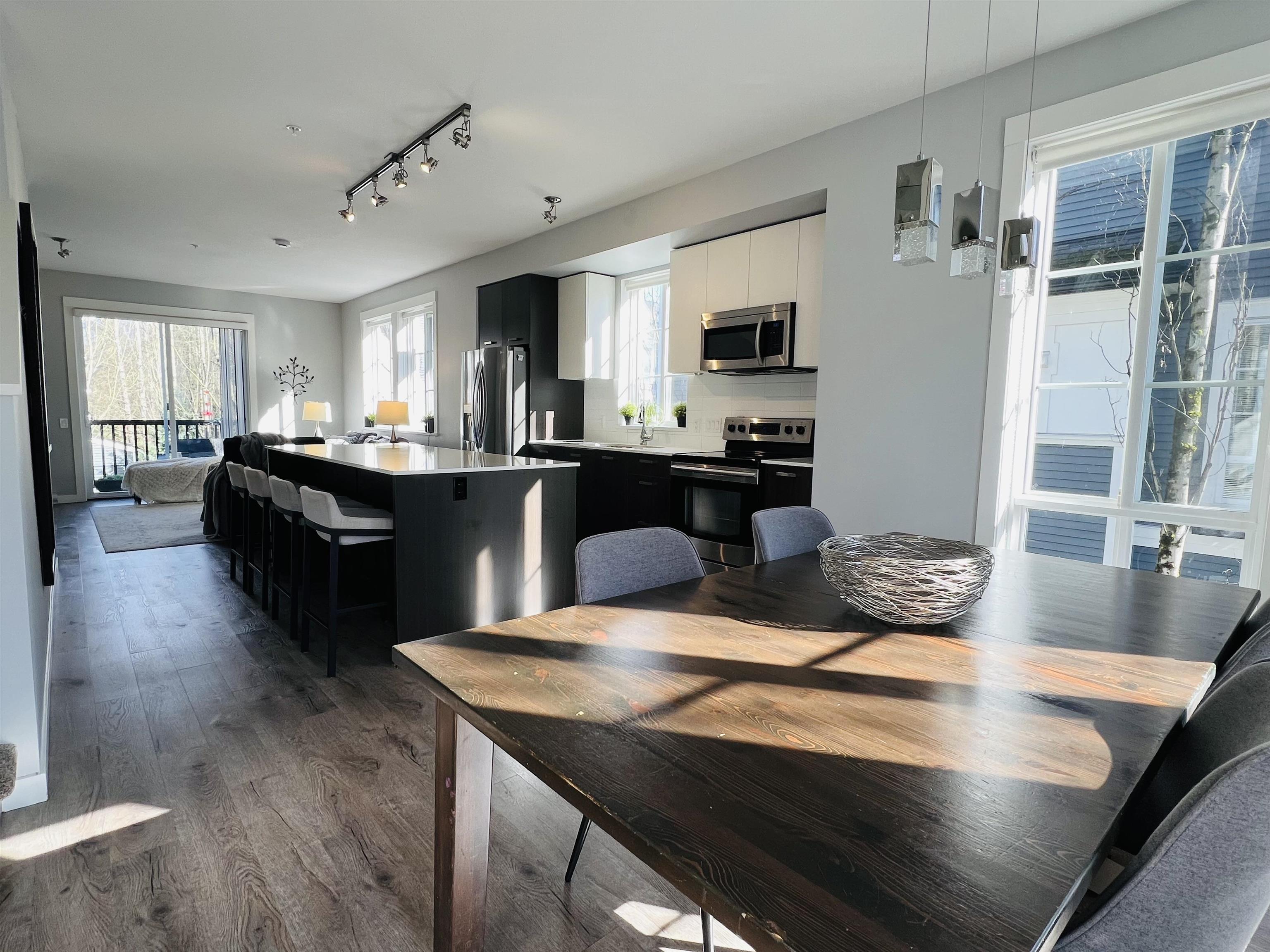 Bright, airy end-unit flooded with natural light & enhanced by soaring 9' ceilings on both floors, this beautifully laid-out home offers an inviting open-concept main level designed for modern living and effortless entertaining. The oversized kitchen is a chef’s delight, featuring a generous island perfect for meal prep, casual dining and socializing. Located in a peaceful, family-friendly neighbourhood, you’re only a short walk to groceries and the Poco Trail for daily strolls or weekend rides. Parking fo...