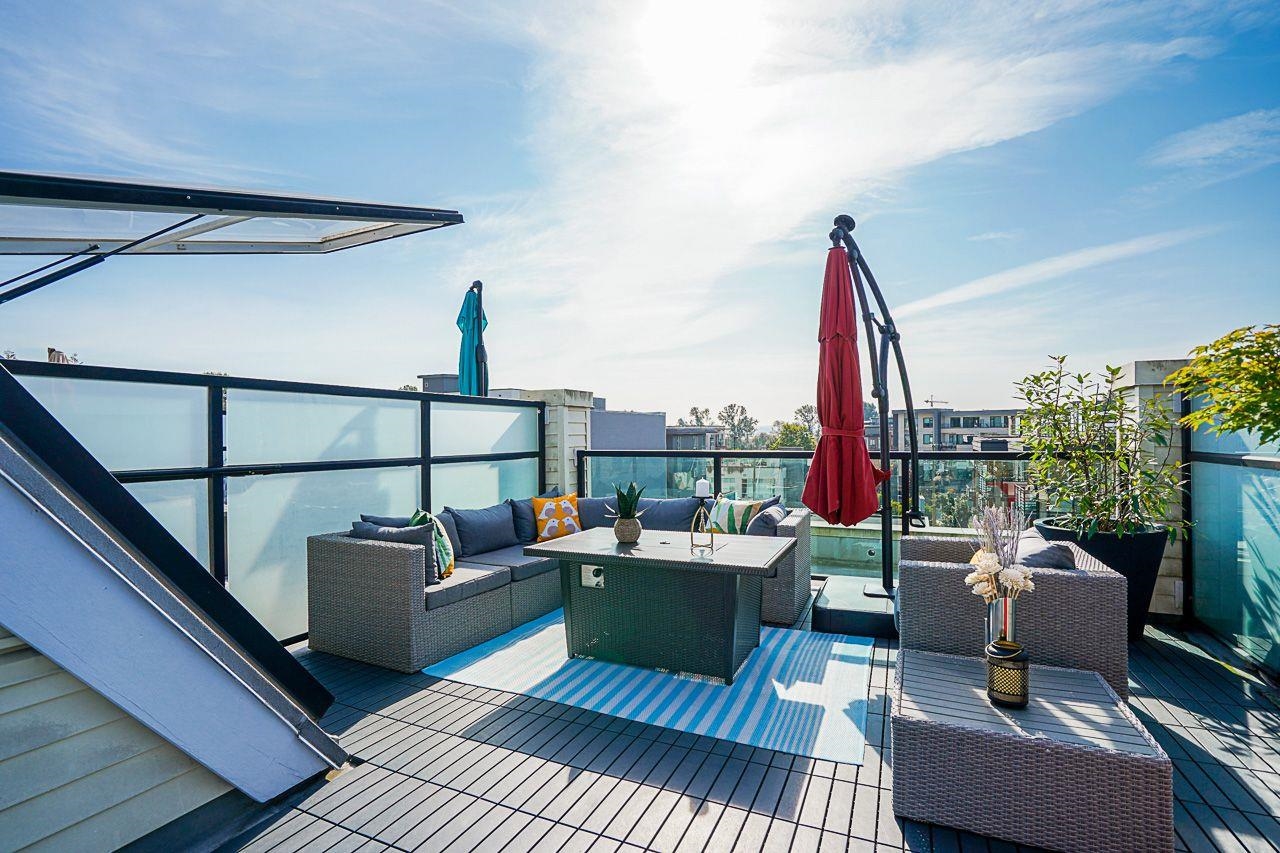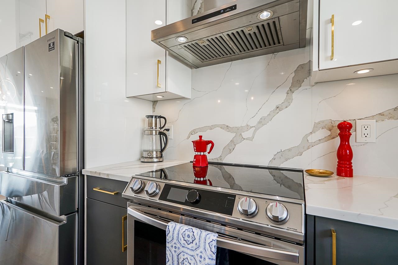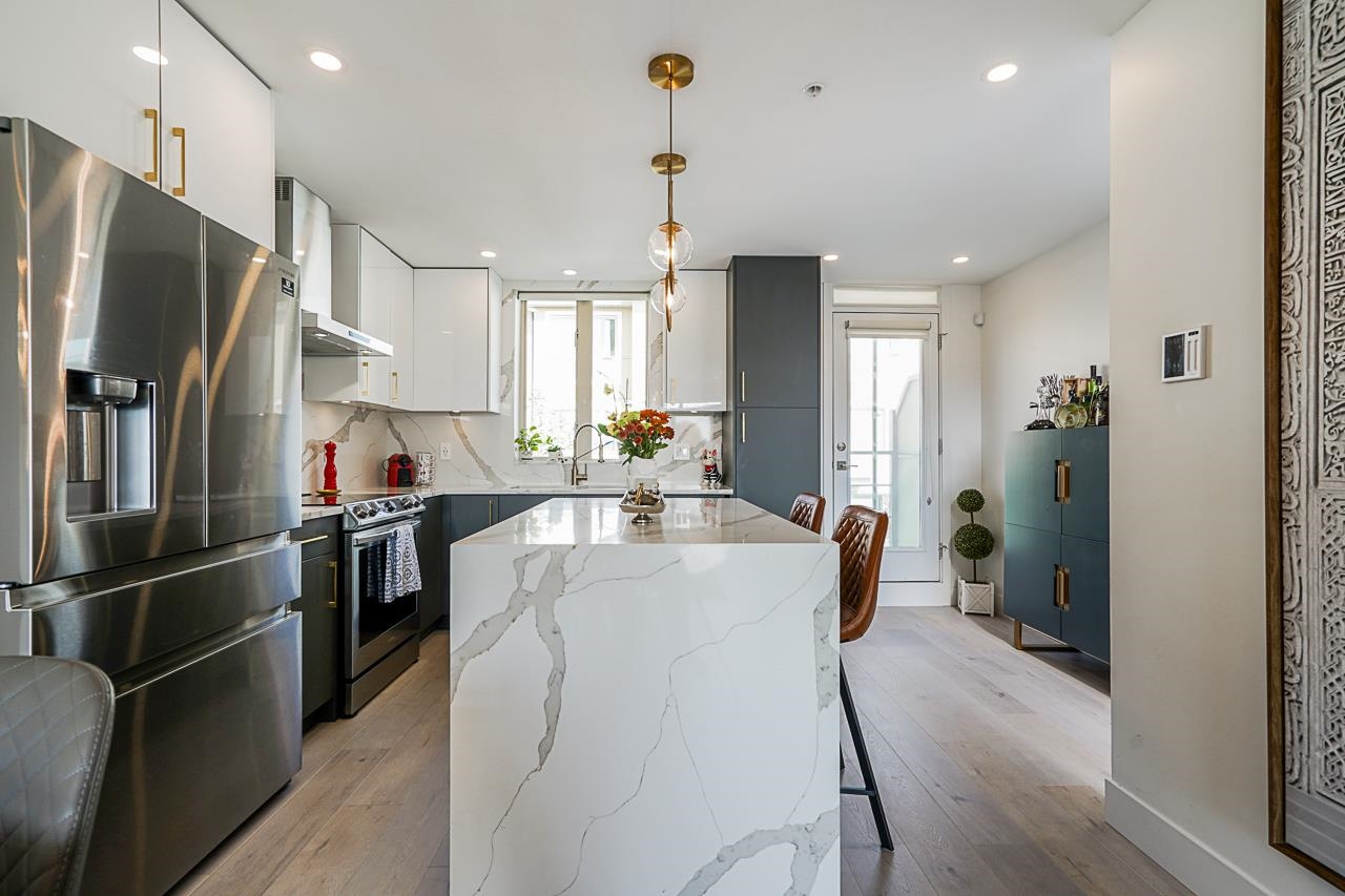 Stunning Renovated 2 bd/2bath Townhouse with 1,156Sqft of living space & 703Sqft of outdoor space including a Rooftop Terrace featuring 360 views of North Shore mountains & City Skylight. Functional reverse floorplan with spacious living space & good size bedrooms featuring a huge patio off the master bedroom. Bright South facing open concept living area perfect for entertaining. The renovations include dream Kitchen with Quartz countertops, custom cabinets & Samsung appliances including an air fryer oven, ...
