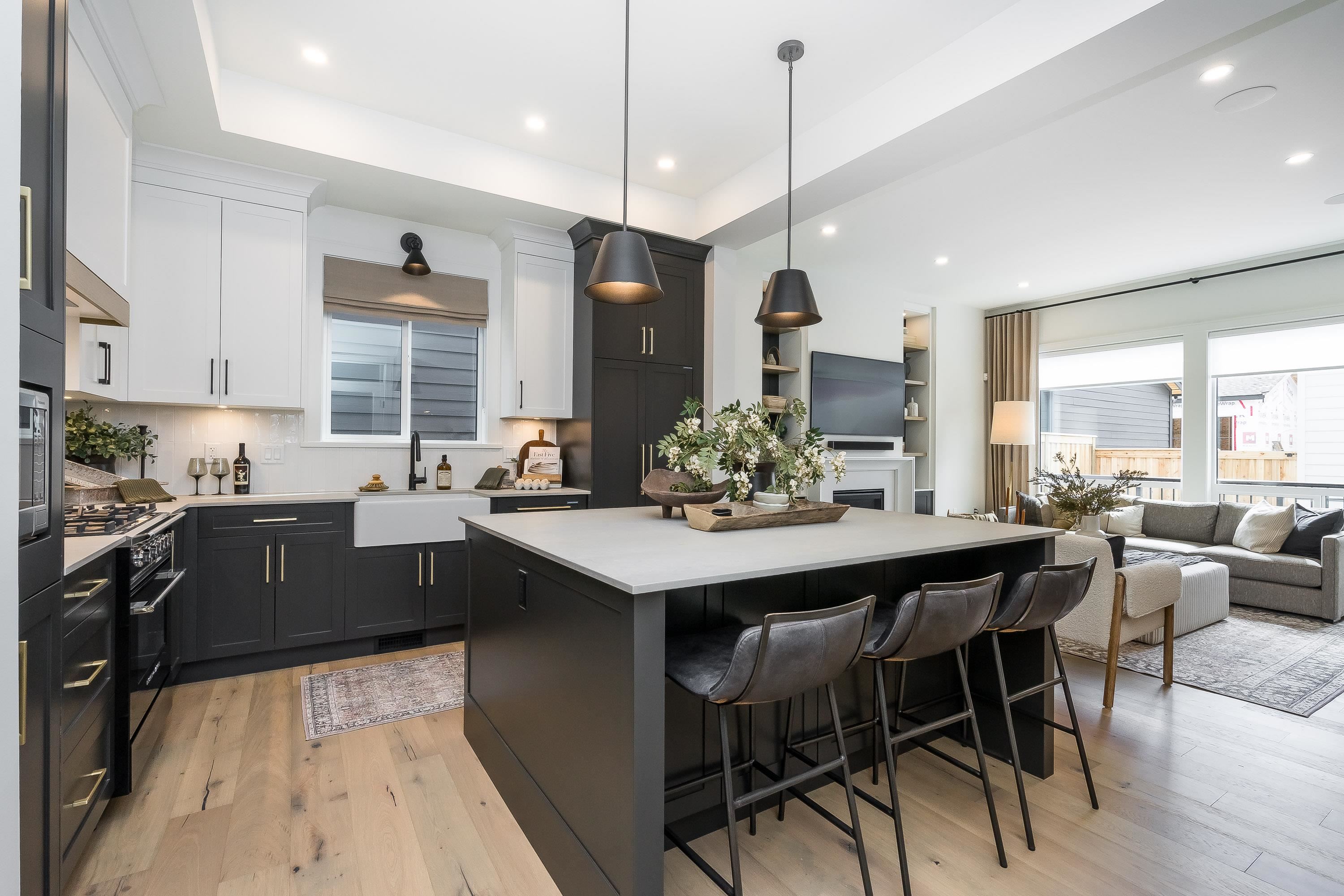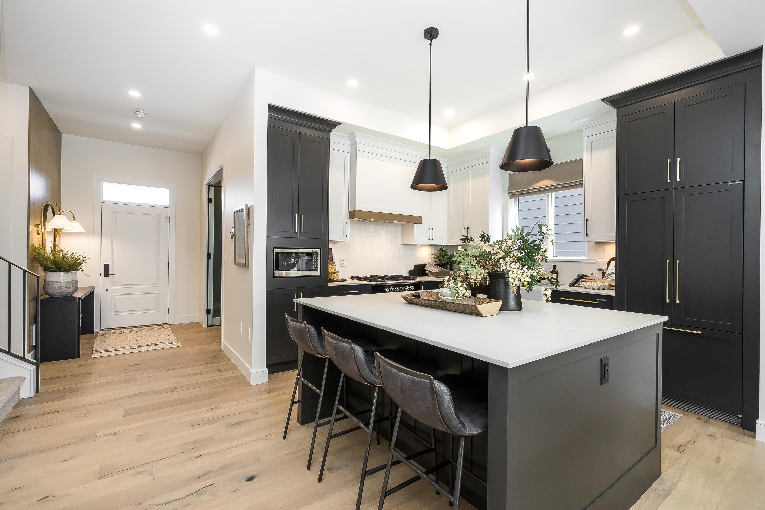 MIRADA ESTATES. Set on 5-acres w/greenspace, paths and a beautiful central pond, these 55 distinctive custom crafted homes proudly developed by Miracon are a beautiful addition to desirable Langley West. This 5 Bed/den, 3.5 bath home boasts 10’ ceilings on the main, open layout, gourmet kitchen, 5-burner gas range/SS appliances, fireplace w/ built ins, 7” Eng. H/W floors, O/S windows, gas furnace plus AC & gas BBQ R/I. Finishes incl. shaker cabinets + quartz counters throughout, spa inspired ensuite feature...