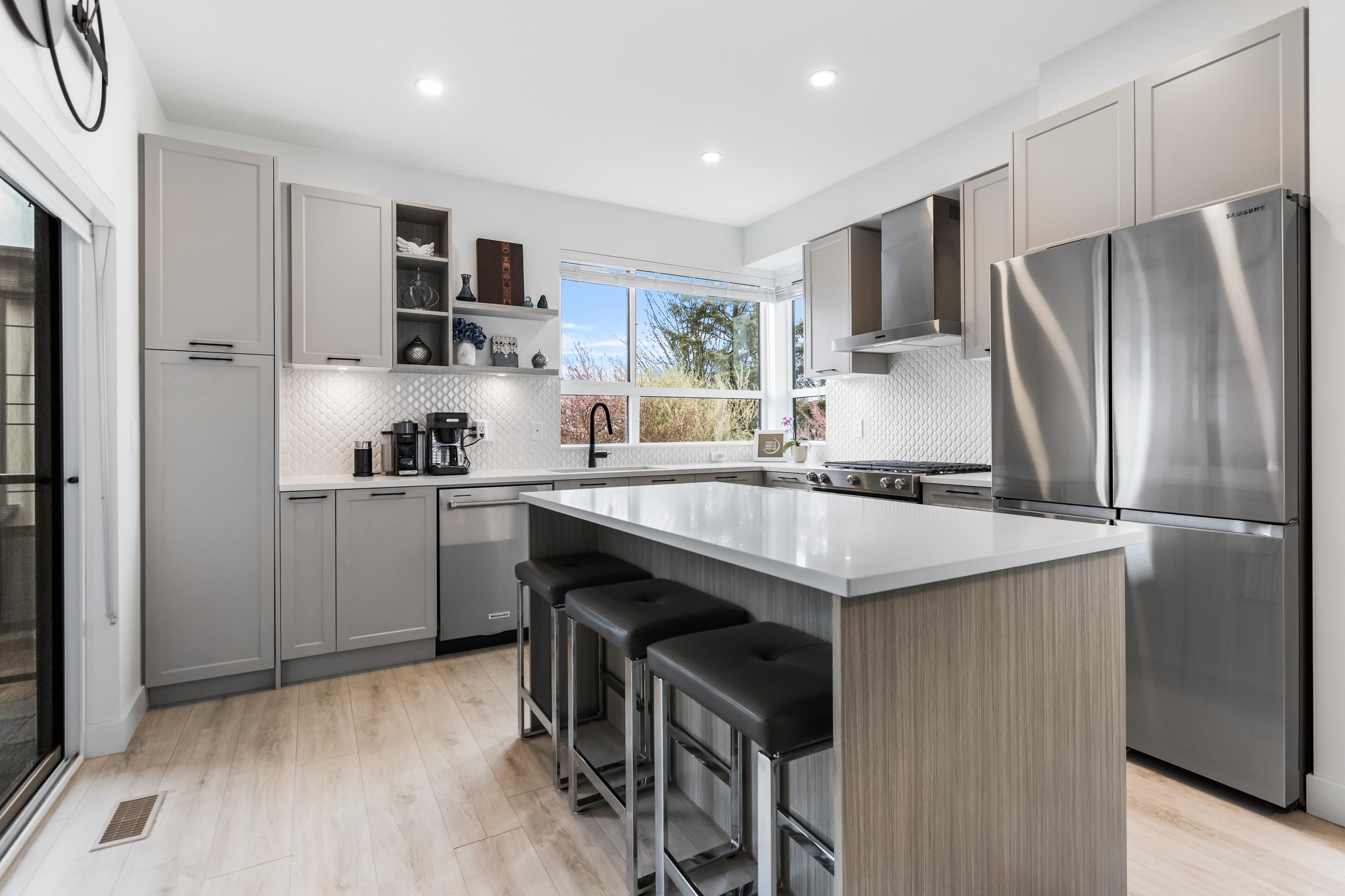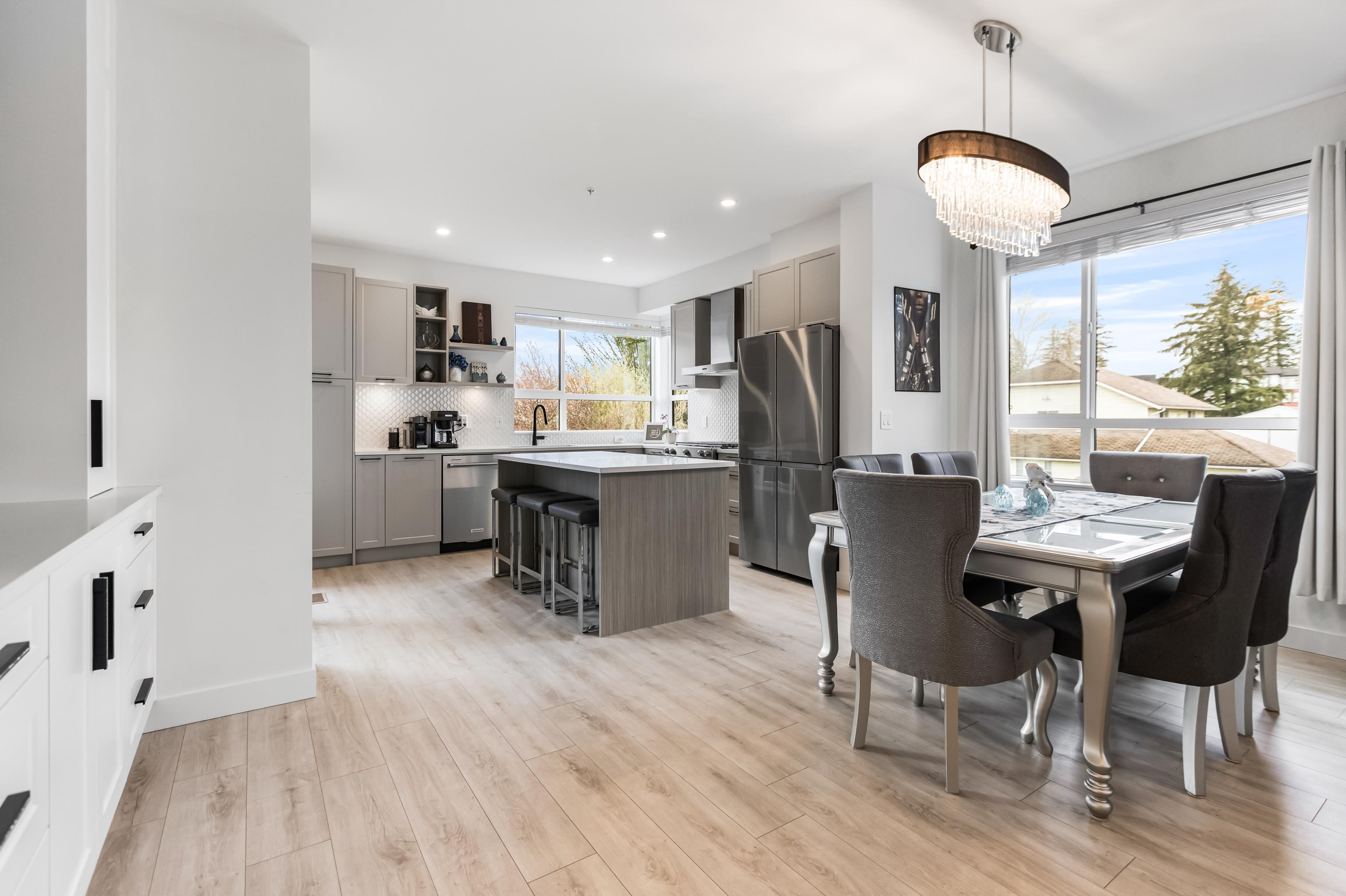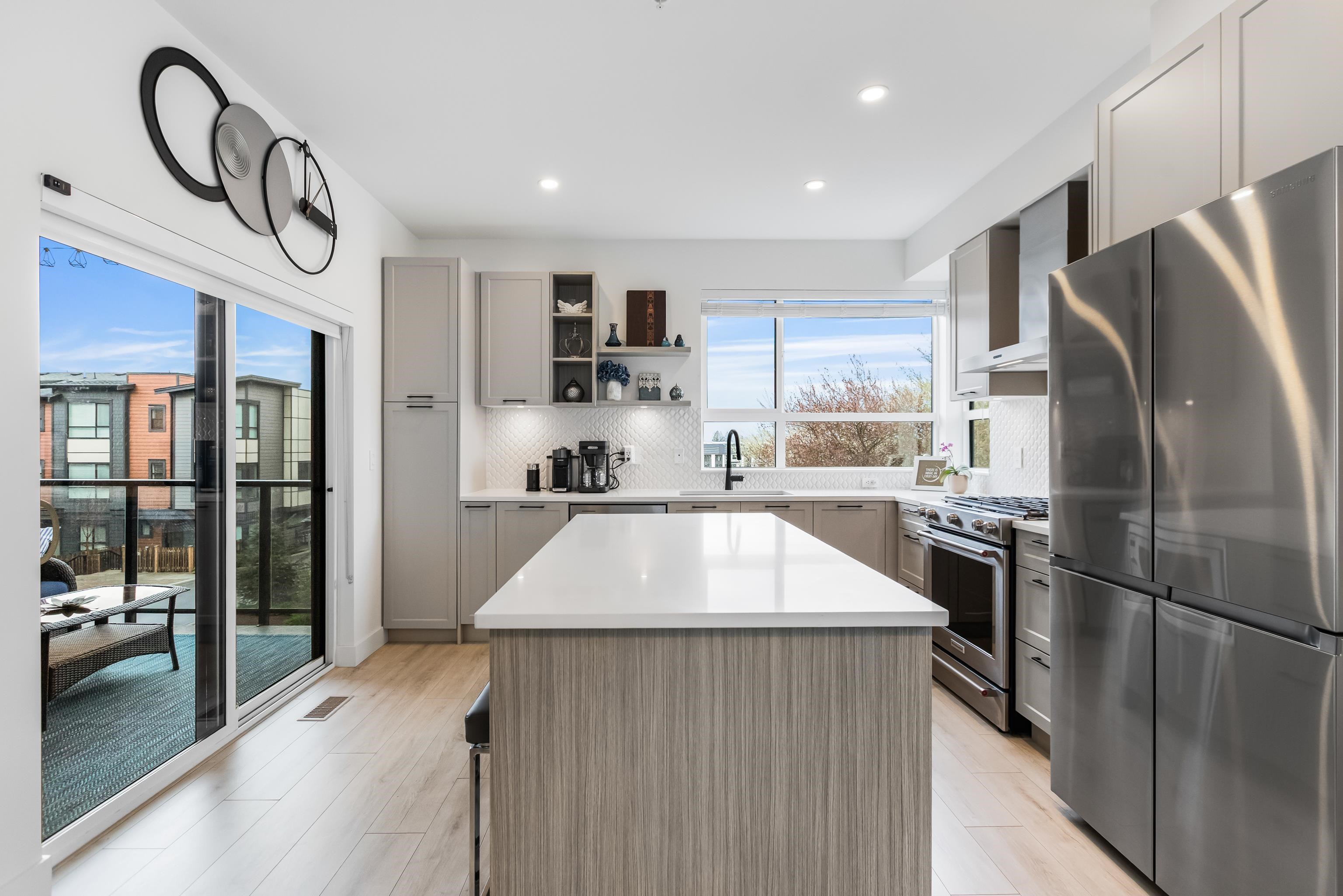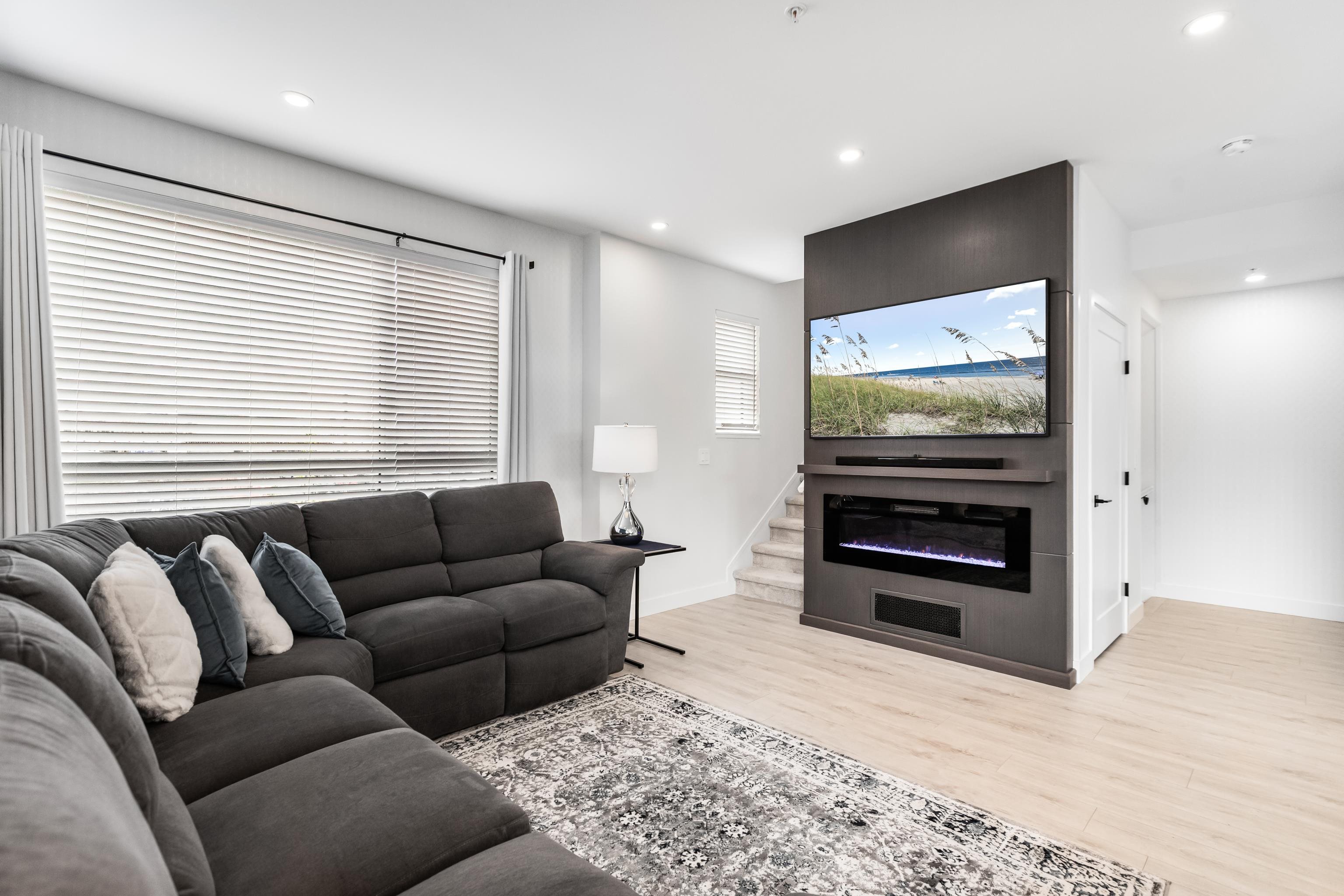 Welcome to Verge, a stunning end-unit townhouse built in 2023 with show-home quality finishes. This 3 bdrm home offers A/C & lower-floor office with built-in desk. The open-concept main floor features a gourmet kitchen with large island, gas stove, S/S appliances, built-in microwave & ample cabinetry & counter space. Built-in dining cabinetry with light-up wine display complements the living room with feature wall & electric F/P. Upstairs, the primary bdrm features a coffered ceiling, wall paneling, chandel...