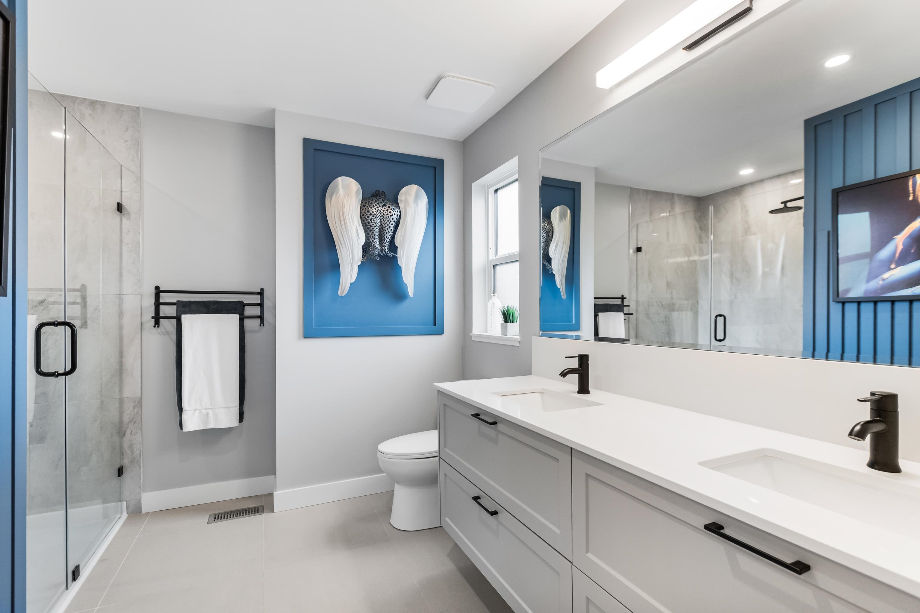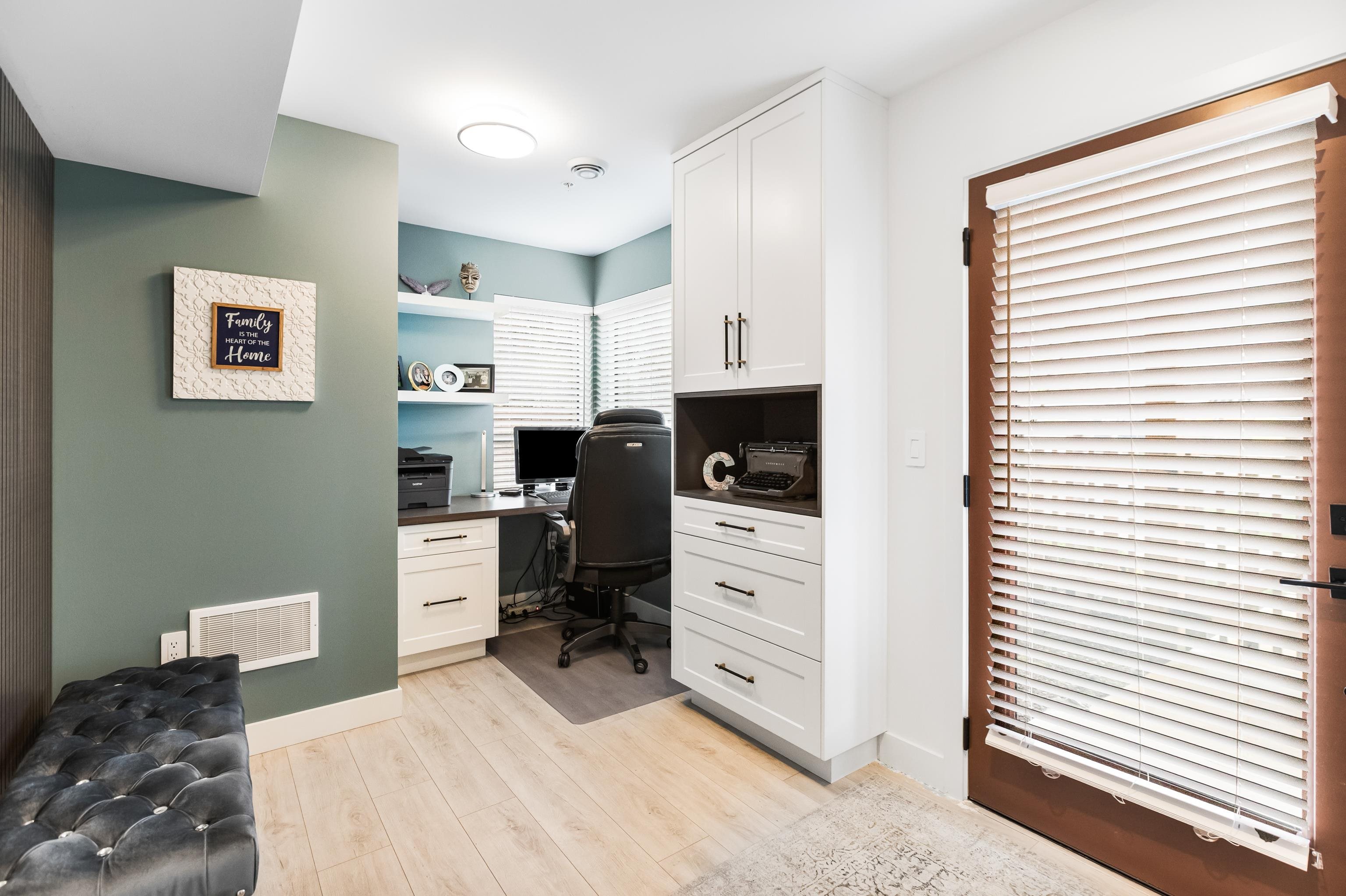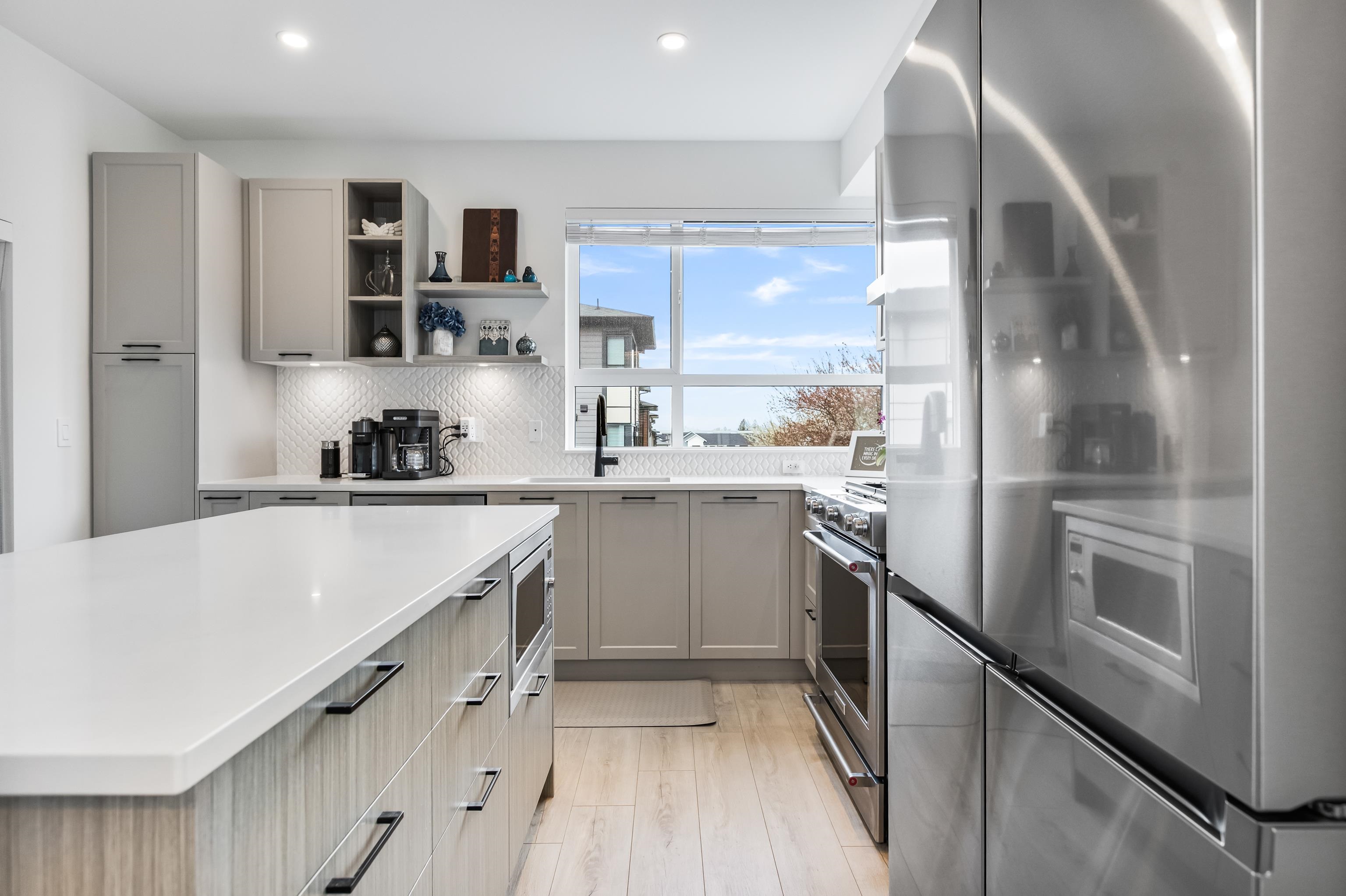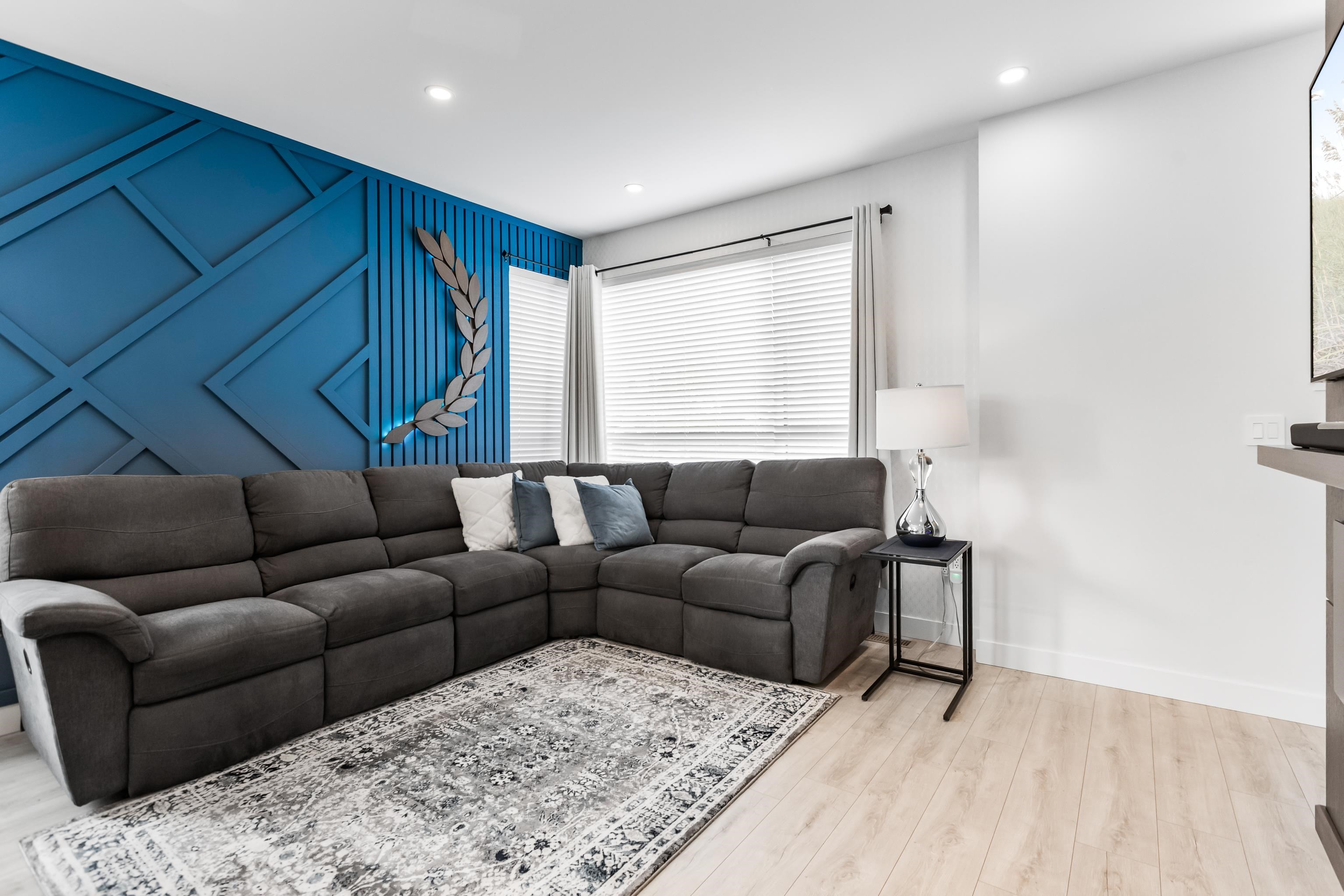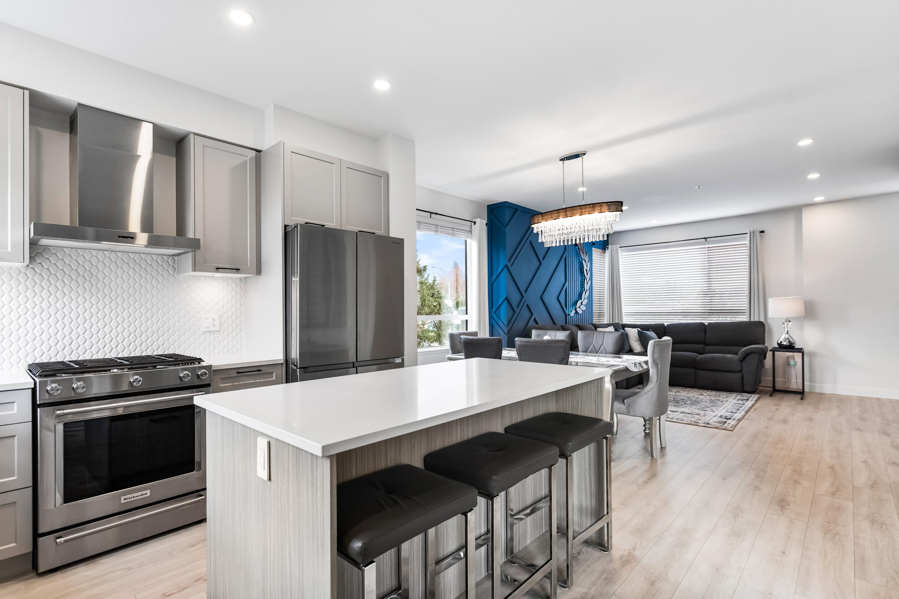 Welcome to Verge, a stunning end-unit townhouse built in 2023 with show-home quality finishes. This 3 bdrm home offers A/C & lower-floor office with built-in desk. The open-concept main floor features a gourmet kitchen with large island, gas stove, S/S appliances, built-in microwave & ample cabinetry & counter space. Built-in dining cabinetry with light-up wine display complements the living room with feature wall & electric F/P. Upstairs, the primary bdrm features a coffered ceiling, wall paneling, chandel...