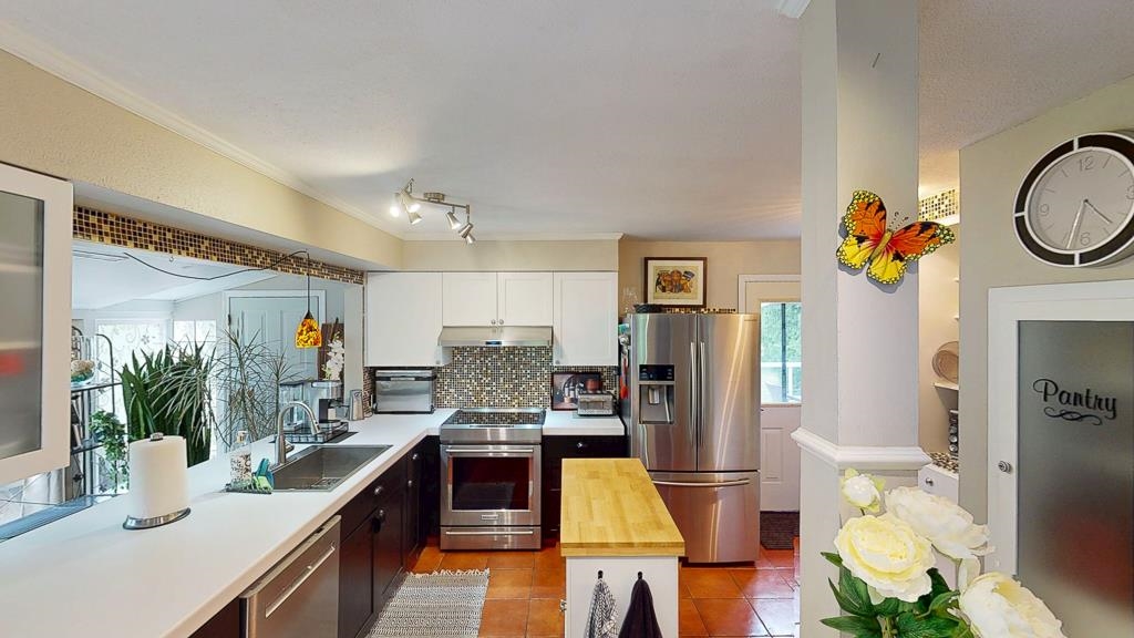 In the Hart of Halfmoon Bay. Bordered on one side by a Park, the .71 acre property features 4 bedrooms, 3 baths, a spacious kitchen and huge living room. The lower floor has 2 bedrooms (both with their own sink!) and a flex room that could be another bedroom. The enormous shop has a mezzanine and is large enough to store your toys and work on your next project There is an attached single garage on the house that could be turned in to a hobby or games room. Great exposure is perfect for gardening.