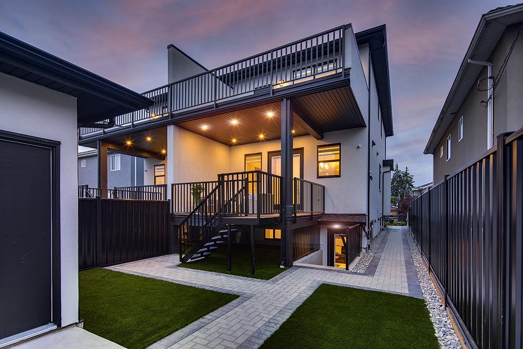 FINAL UNIT REMAINING! Brand New 5 Bed + 5 Bath Half Duplex in East Burnaby! This beautifully finished home offers over 2,500 sq ft of luxurious living with 10 ft ceilings on the main, engineered hardwood floors, and oversized windows for abundant natural light. The main floor boasts a gourmet kitchen with quartz counters, custom cabinetry, and premium appliances. Upstairs features 3 oversized bedrooms, including a spa-like primary ensuite. Enjoy a private deck with scenic mountain views. Basement offers fle...