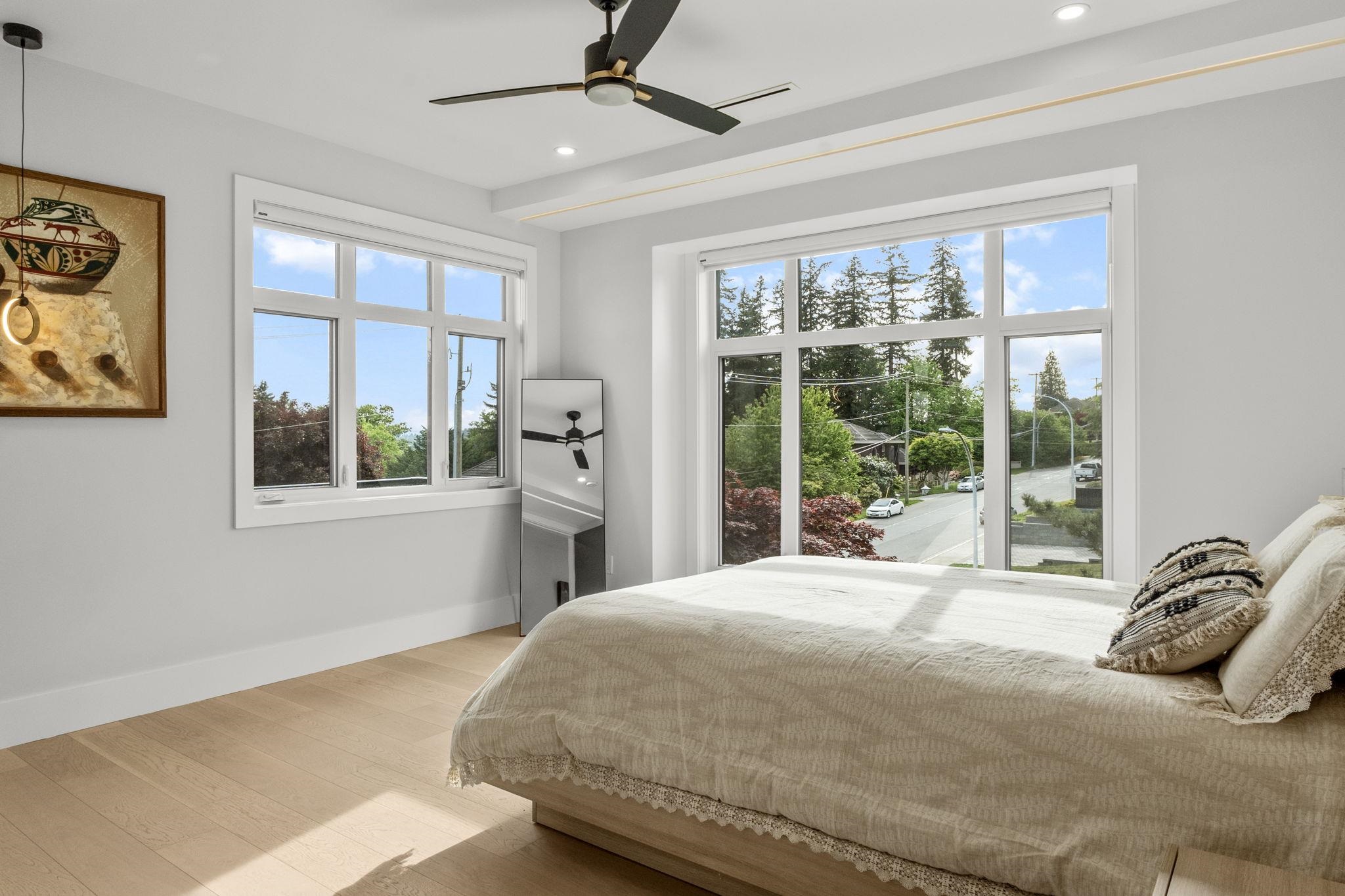 Stunning view property overlooking Mount Baker and North View Golf Course. Features smart locks on main door and garage, Fisher & Paykel and Miele panel-ready appliances, radiant heating with individual room zones, Daikin central A/C, and tankless water heater. Includes Cosentino countertops, porcelain slab double-sided fireplace, smart toilets, remote blinds, and central vacuum with hide-a-hose. Offers 2+2 bedroom suites, each with laundry and dishwasher, private lane access, and ample parking. Insulated, ...