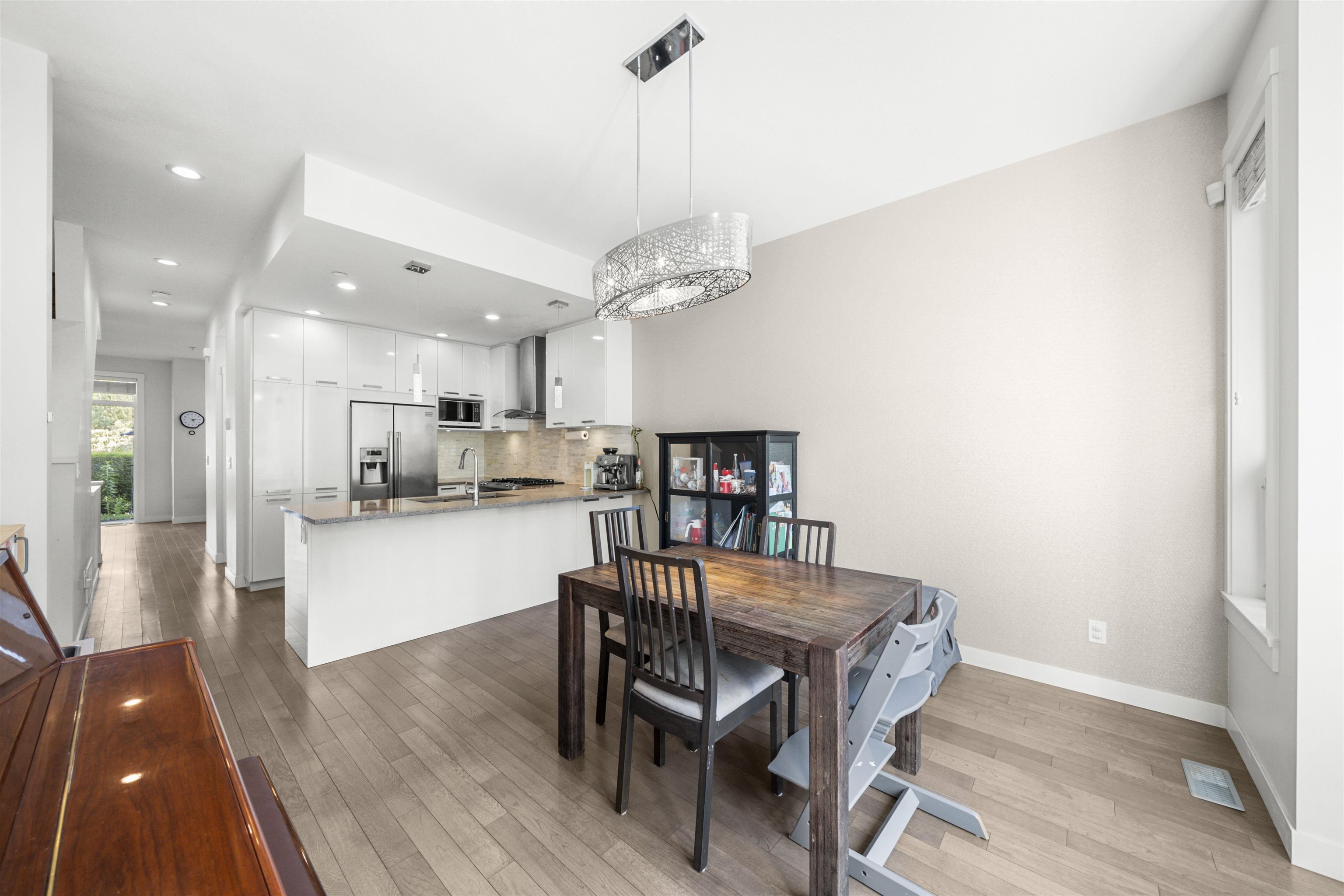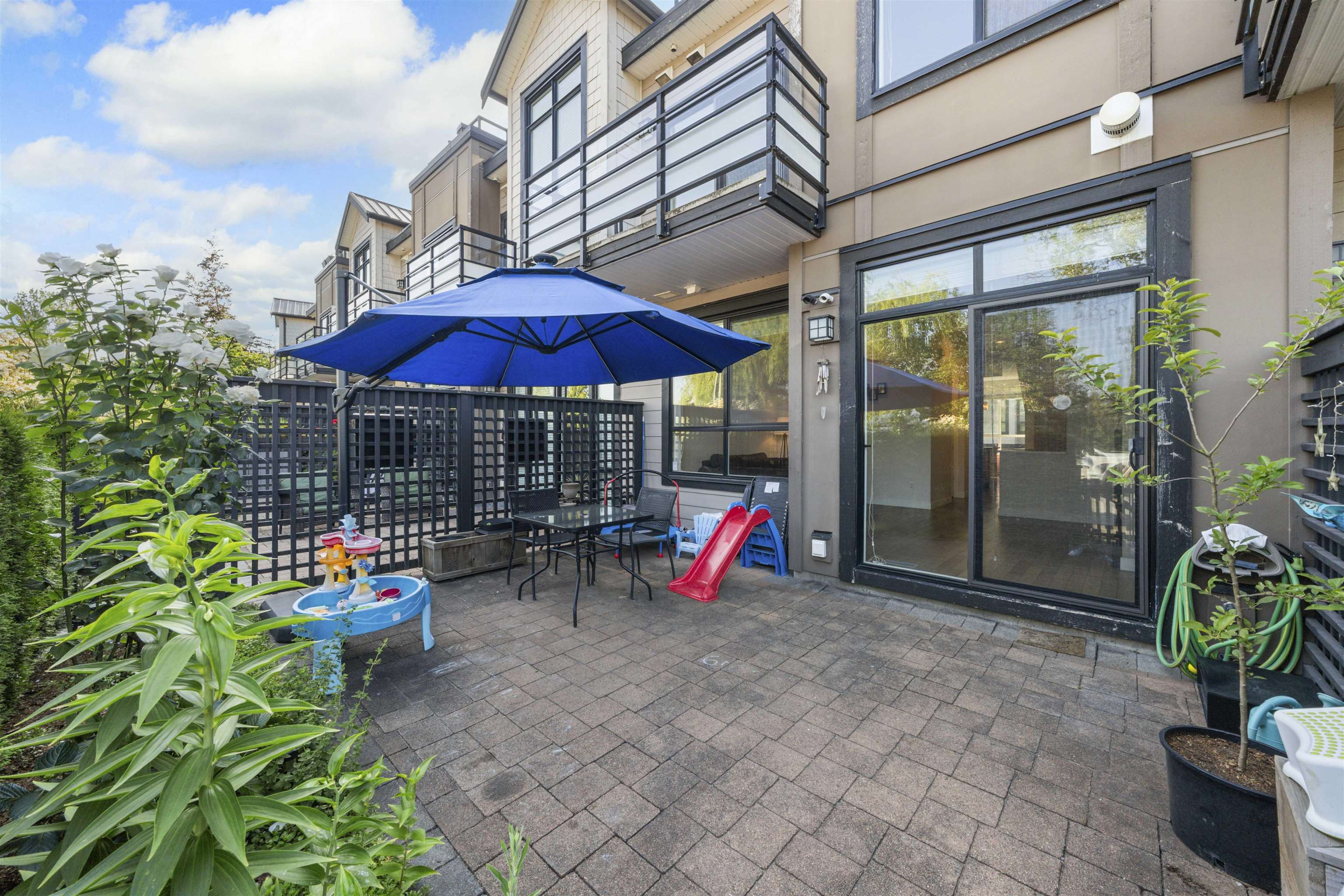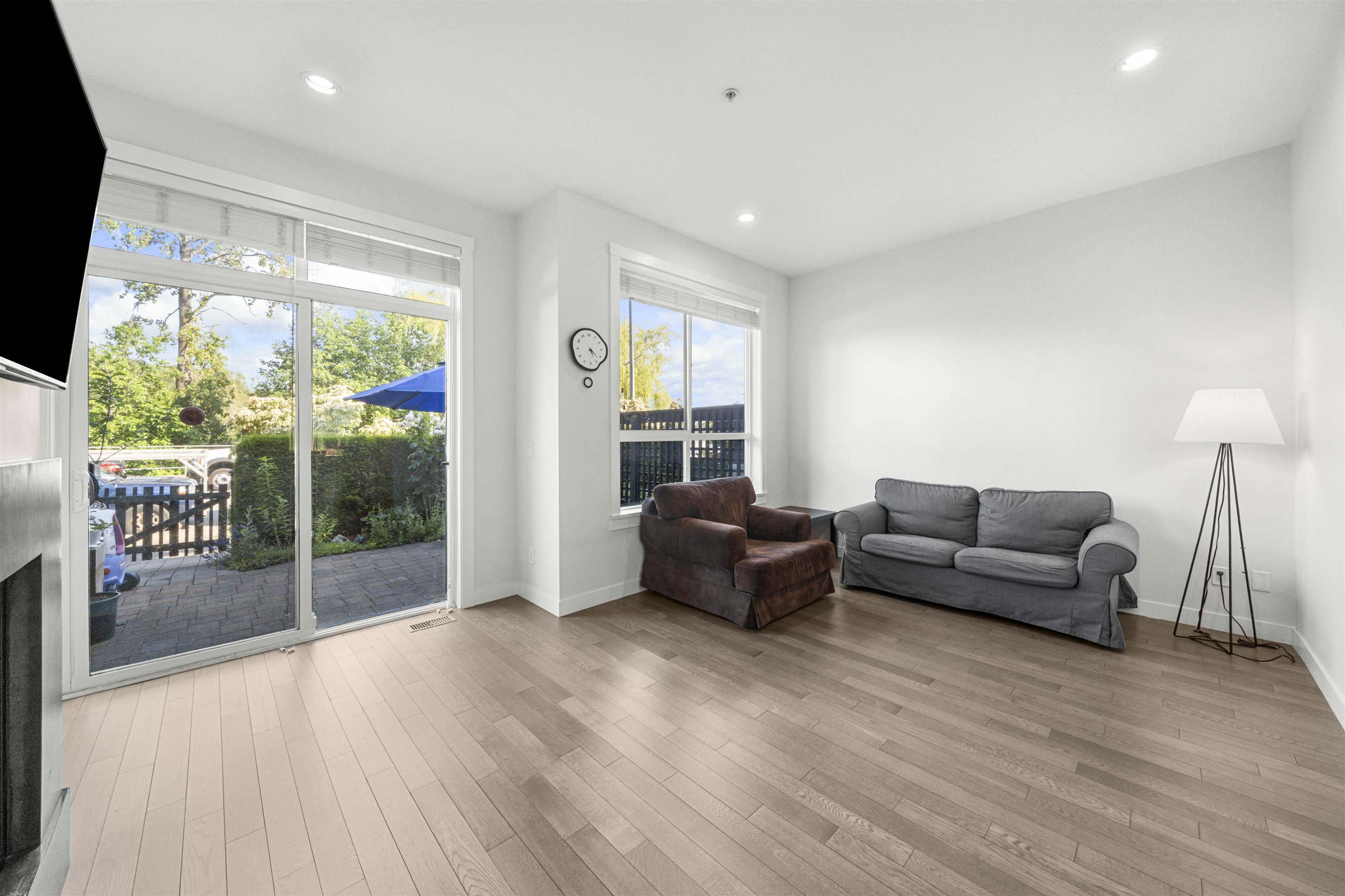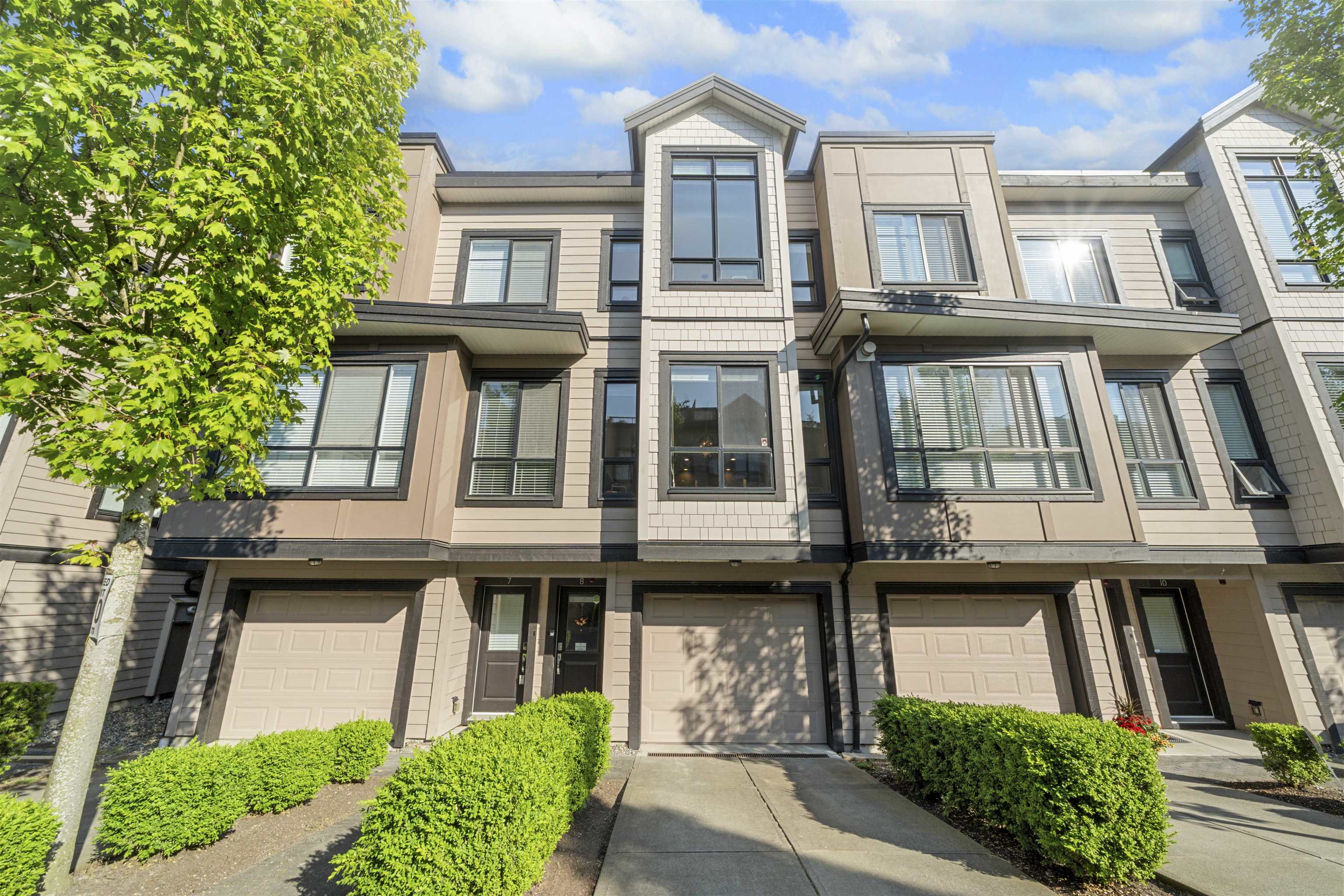 RIVERFRONT RETREAT! This bright and quiet 3-bed, 2.5-bath townhome (1,590 sq ft) in River’s Walk offers ideal indoor-outdoor living with a fenced yard on the riverfront greenway and a 356sq ft rooftop deck featuring a natural gas BBQ hook-up and river view. The main level boasts 9' ceilings, laminate hardwood floors, a gas fireplace, and stainless steel appliances. Upstairs, enjoy a king-sized primary retreat with 5-piece ensuite, two spacious bedrooms, and another full bath. Tandem garage plus driveway fit...