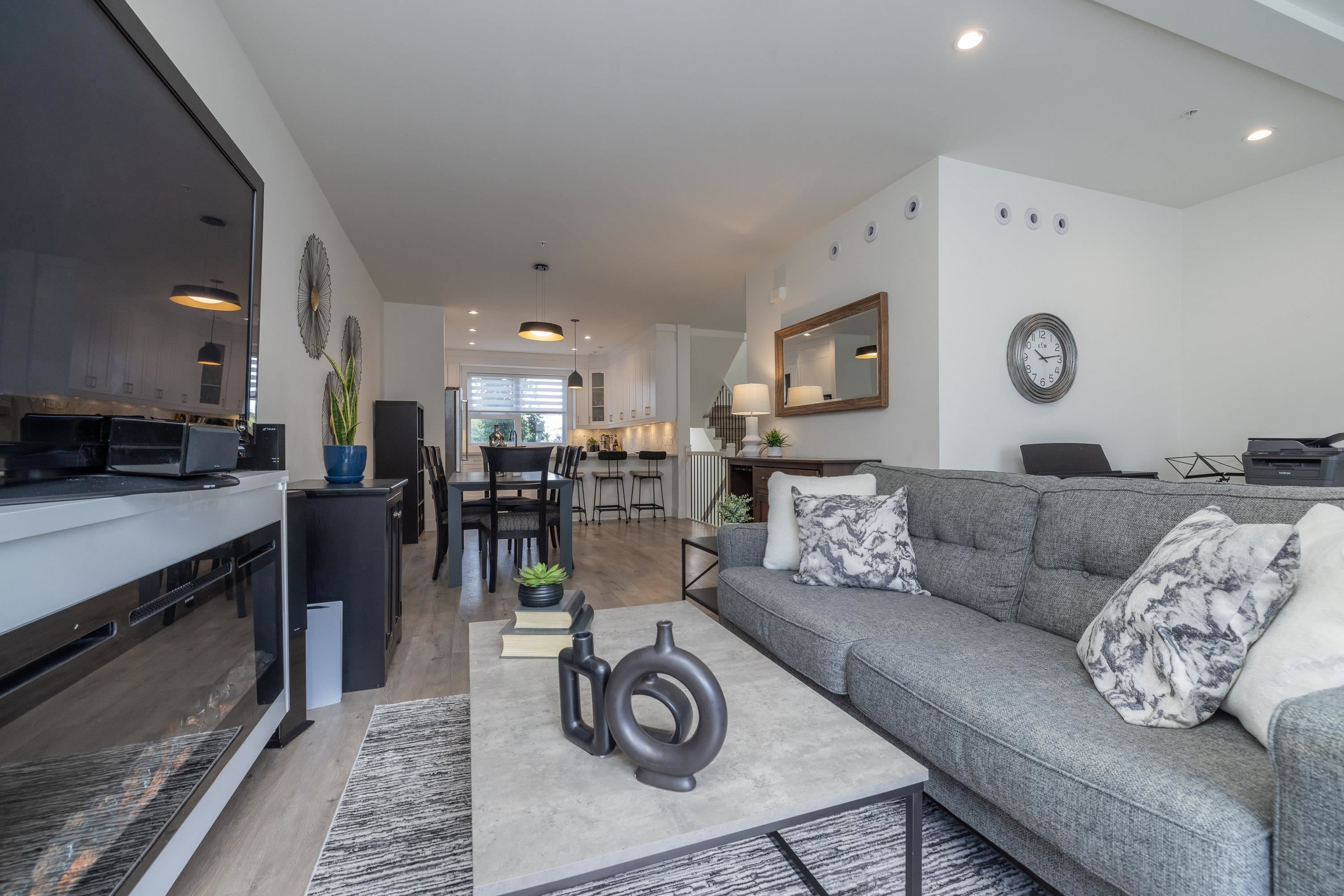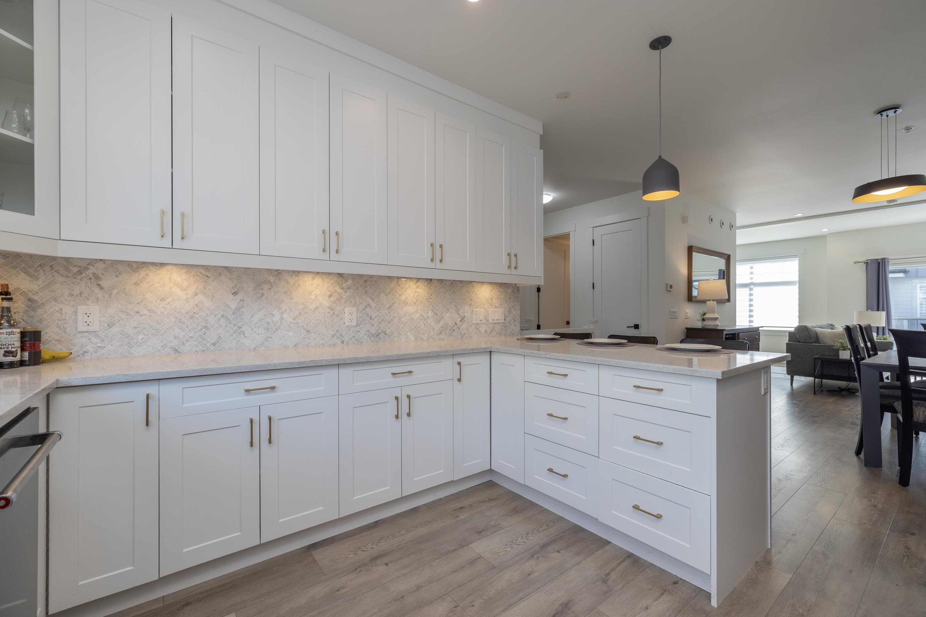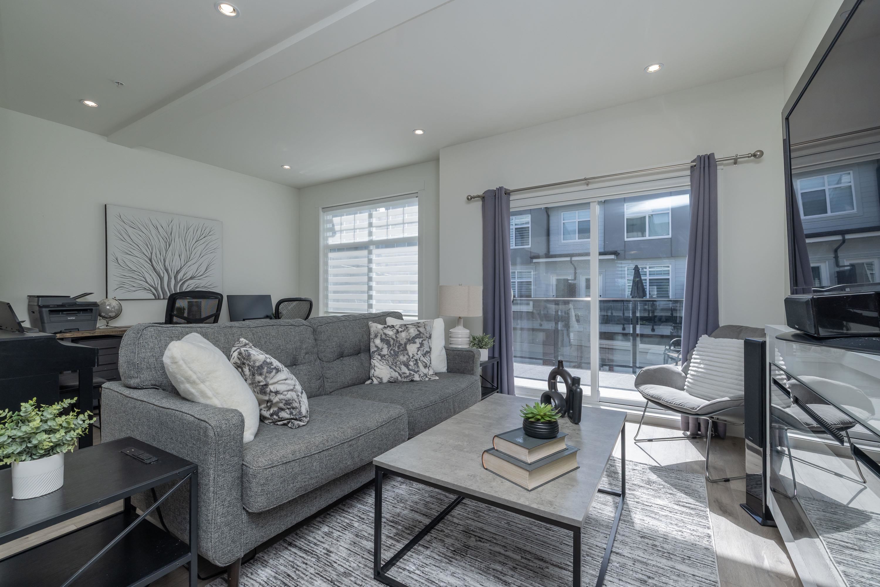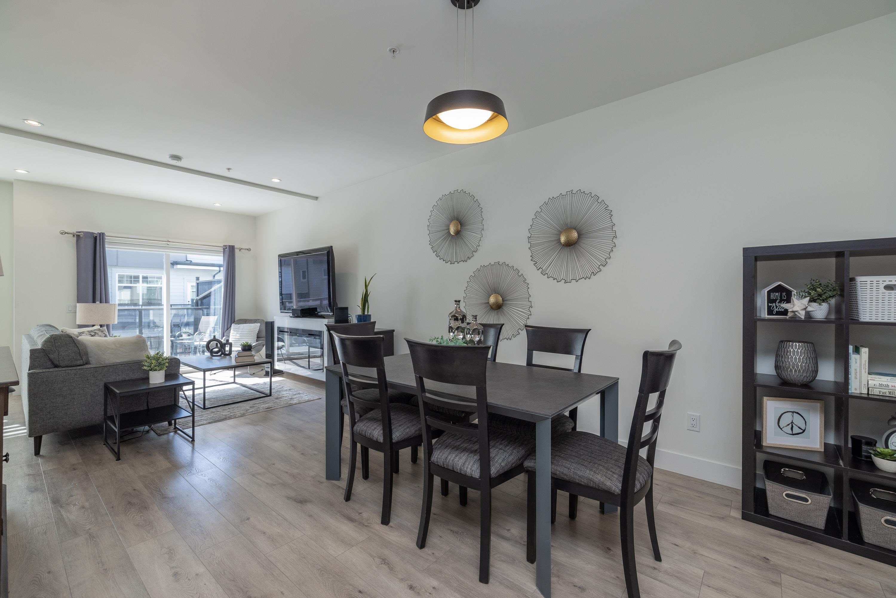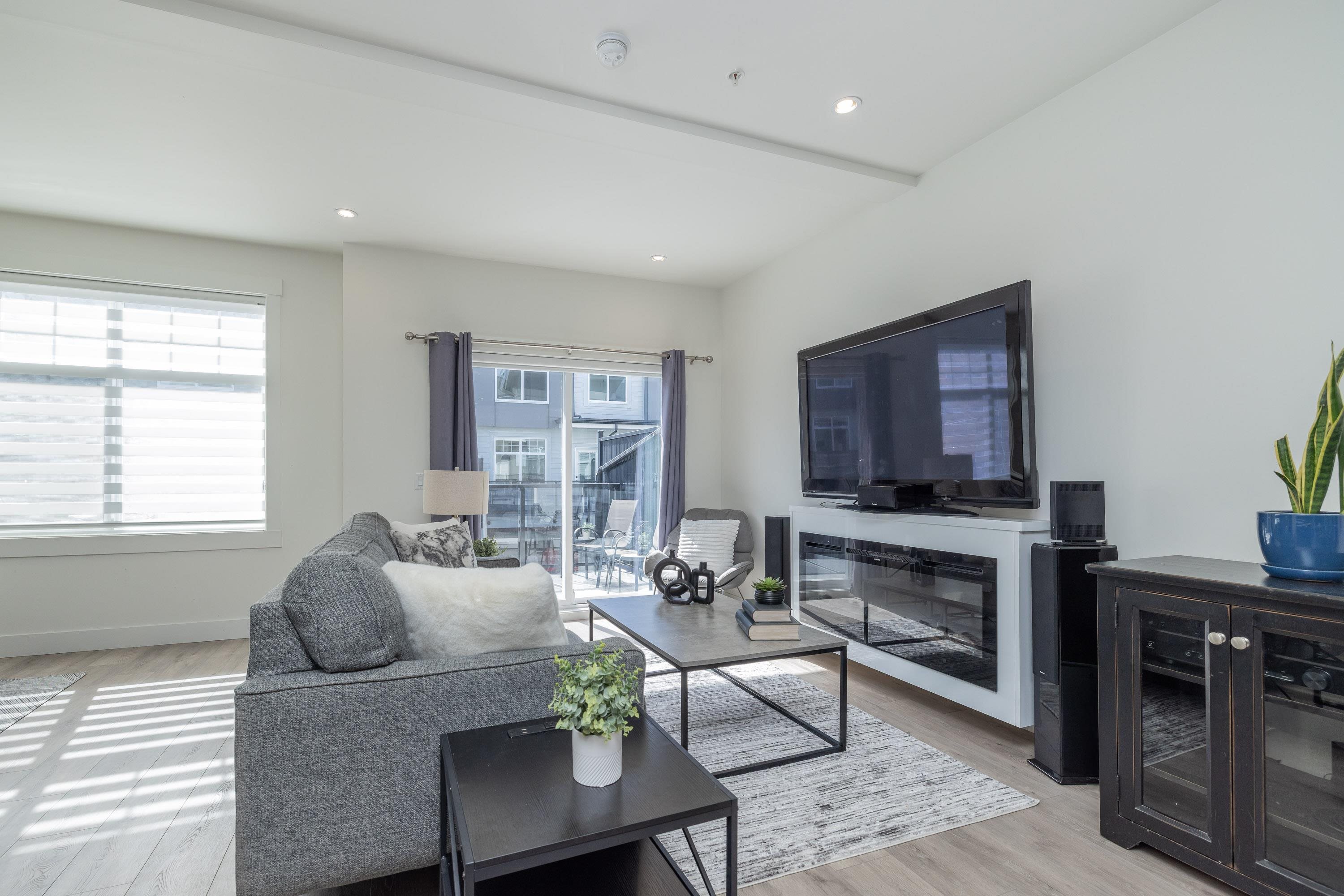 Gorgeous 4 bedroom, 4 bathroom townhome located in Murrayville’s Station 48. Open concept main floor boasts 9’ ceilings, wide plank laminate flooring, spacious living area w/ feature electric fireplace, space for computer/study area, glass sliding door to large south-facing deck w/ gas BBQ outlet, & adjacent dining area. Gourmet kitchen w/ white shaker cabinetry, peninsula w/ breakfast bar, stainless appliances, quartz counters, & marble tile backsplash. 2-pc powder room. 3 bedrooms up including the primary...