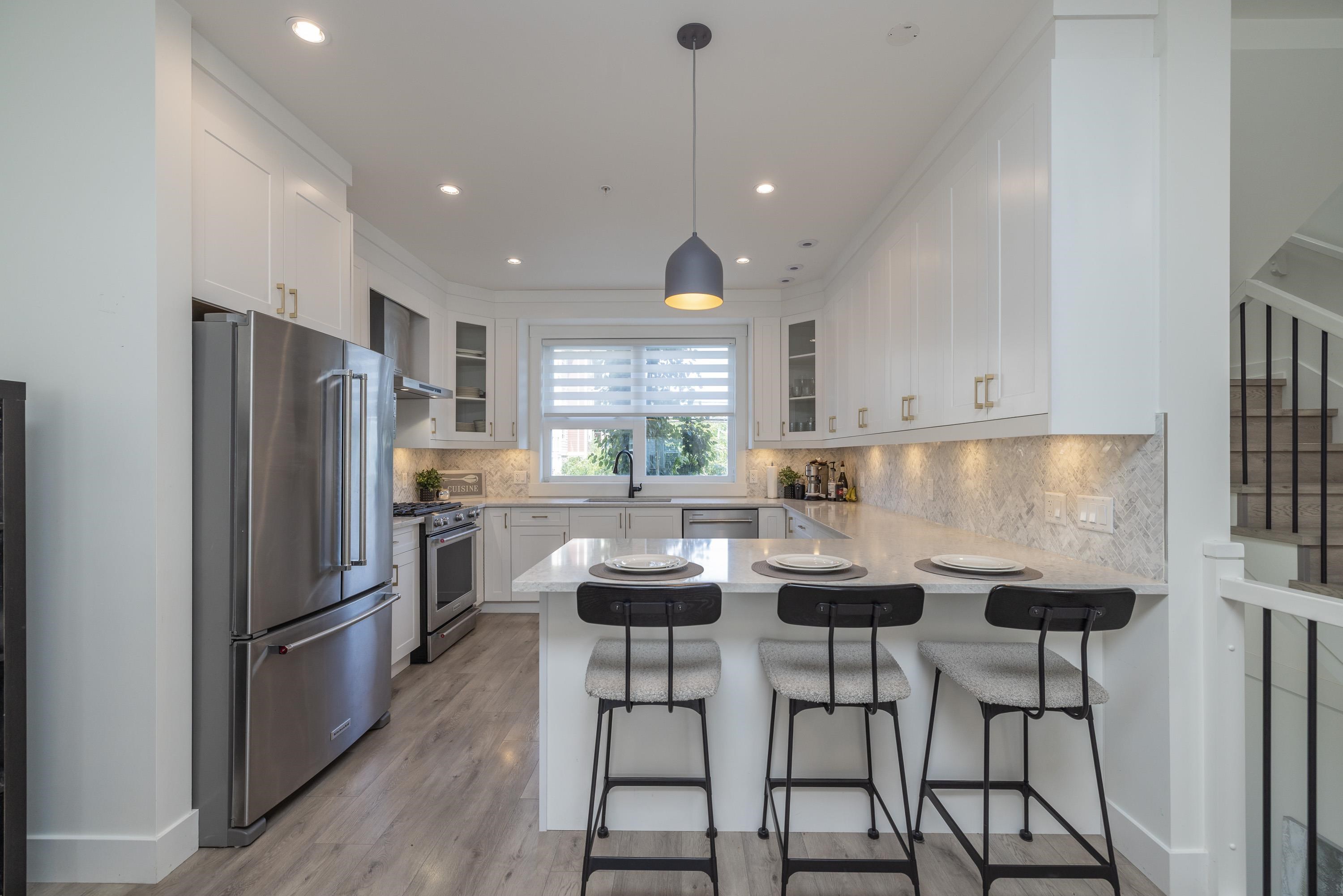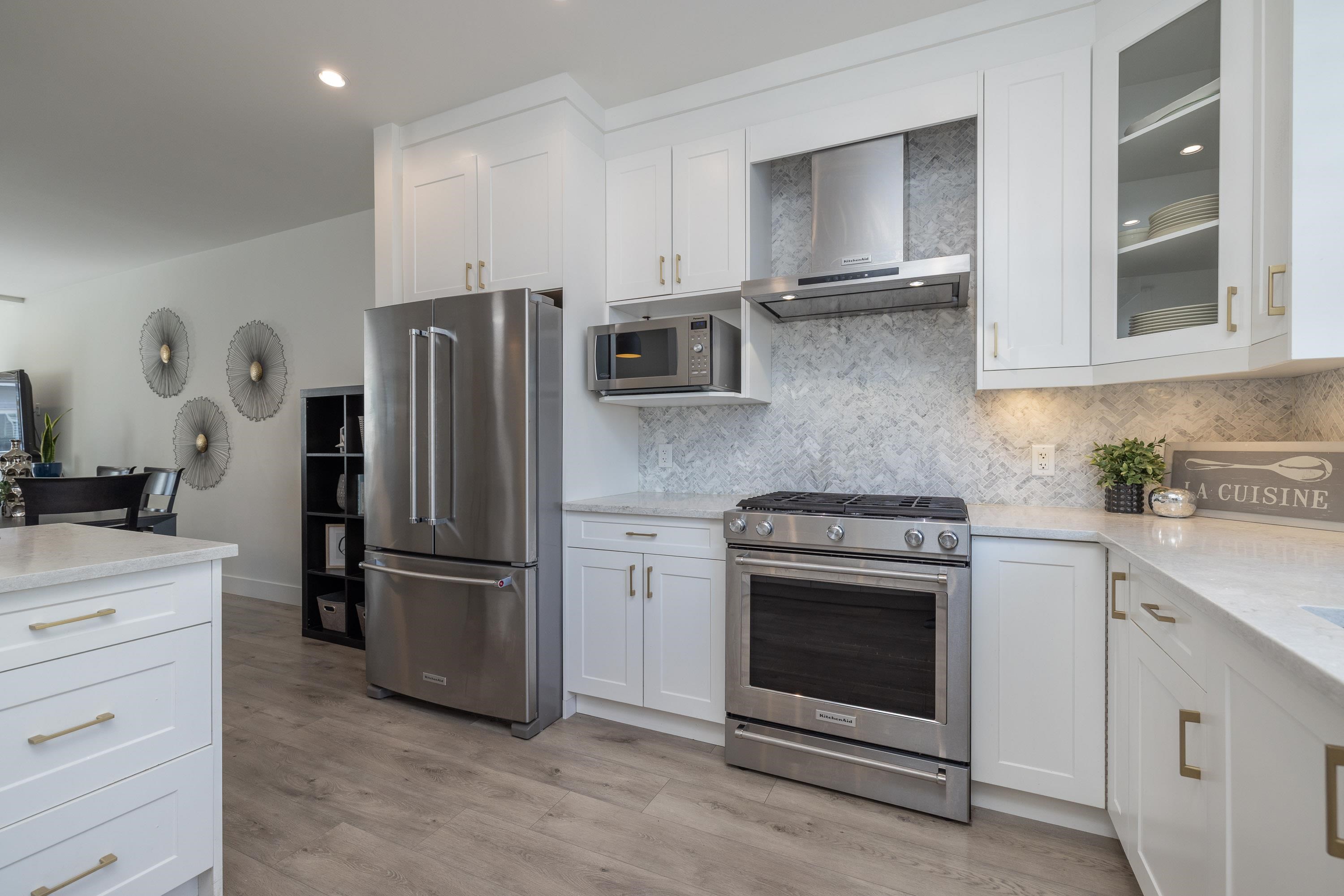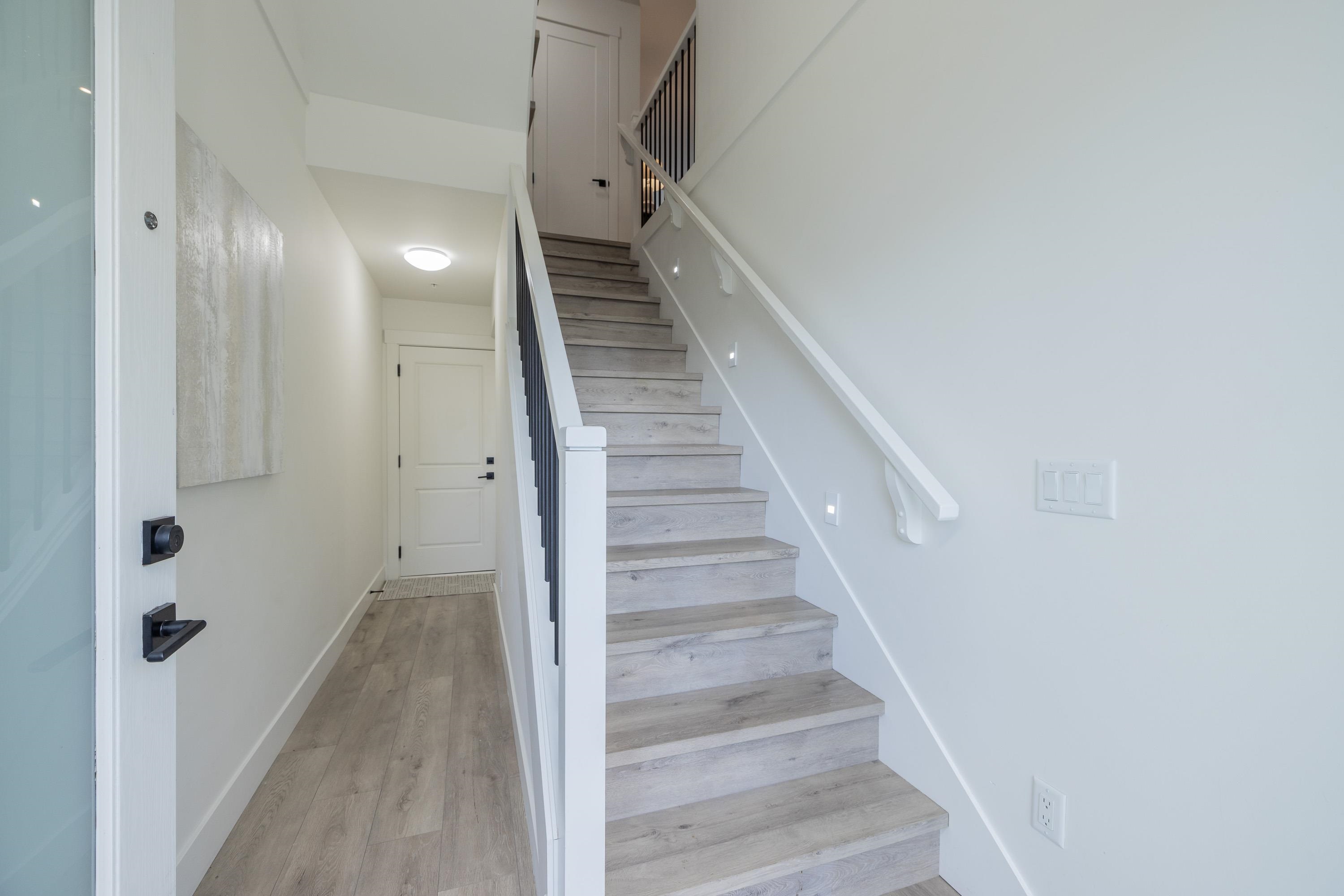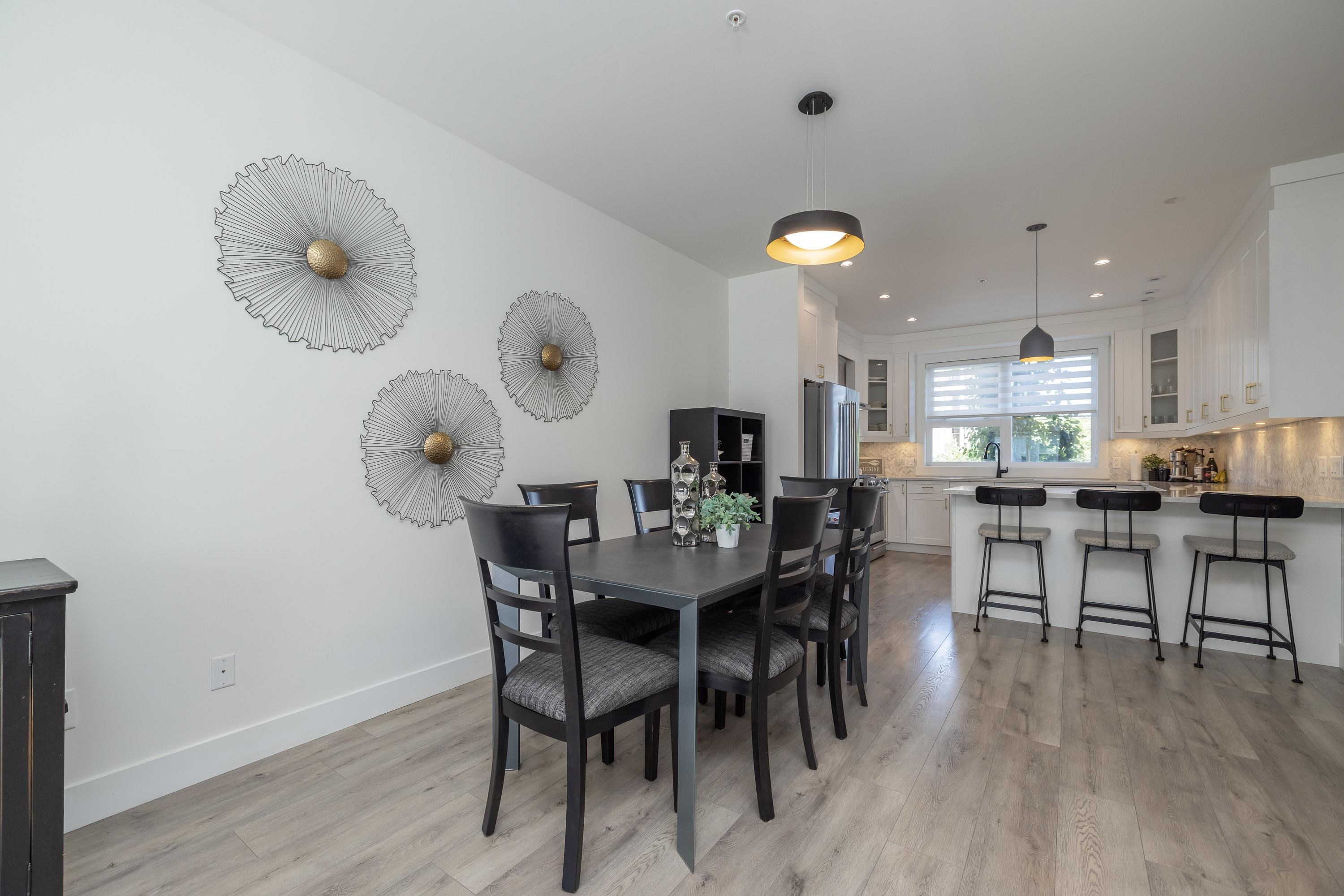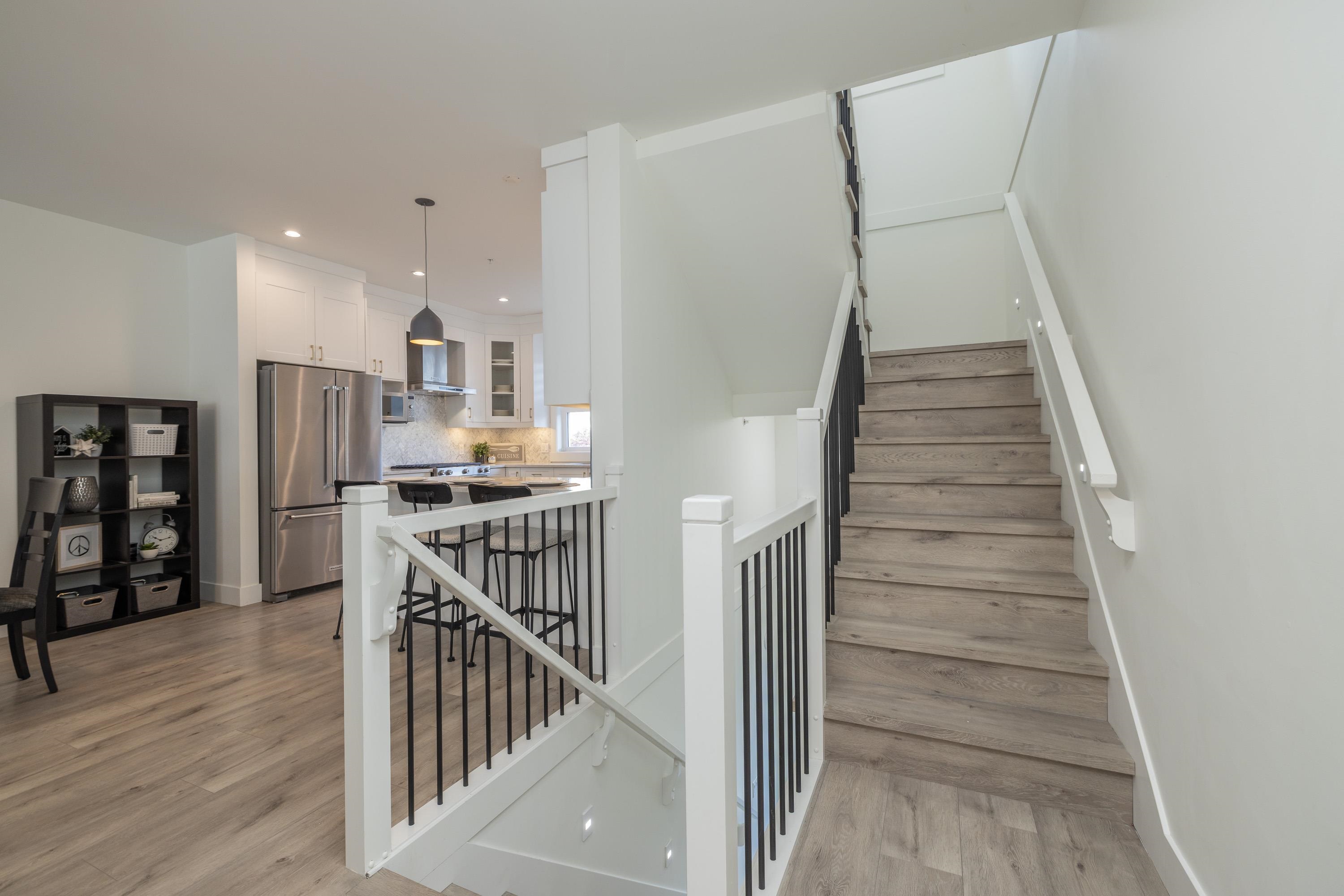 Gorgeous 4 bedroom, 4 bathroom townhome located in Murrayville’s Station 48. Open concept main floor boasts 9’ ceilings, wide plank laminate flooring, spacious living area w/ feature electric fireplace, space for computer/study area, glass sliding door to large south-facing deck w/ gas BBQ outlet, & adjacent dining area. Gourmet kitchen w/ white shaker cabinetry, peninsula w/ breakfast bar, stainless appliances, quartz counters, & marble tile backsplash. 2-pc powder room. 3 bedrooms up including the primary...
