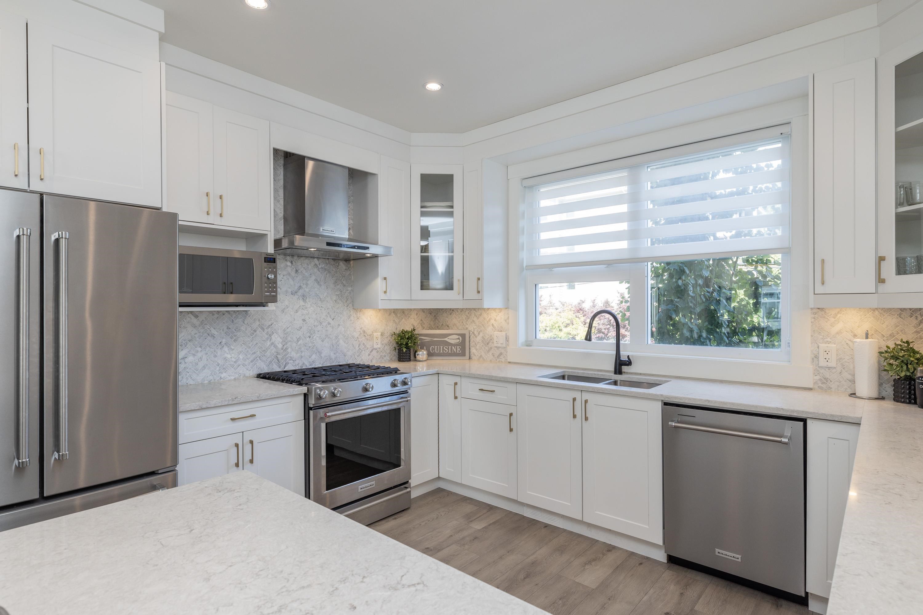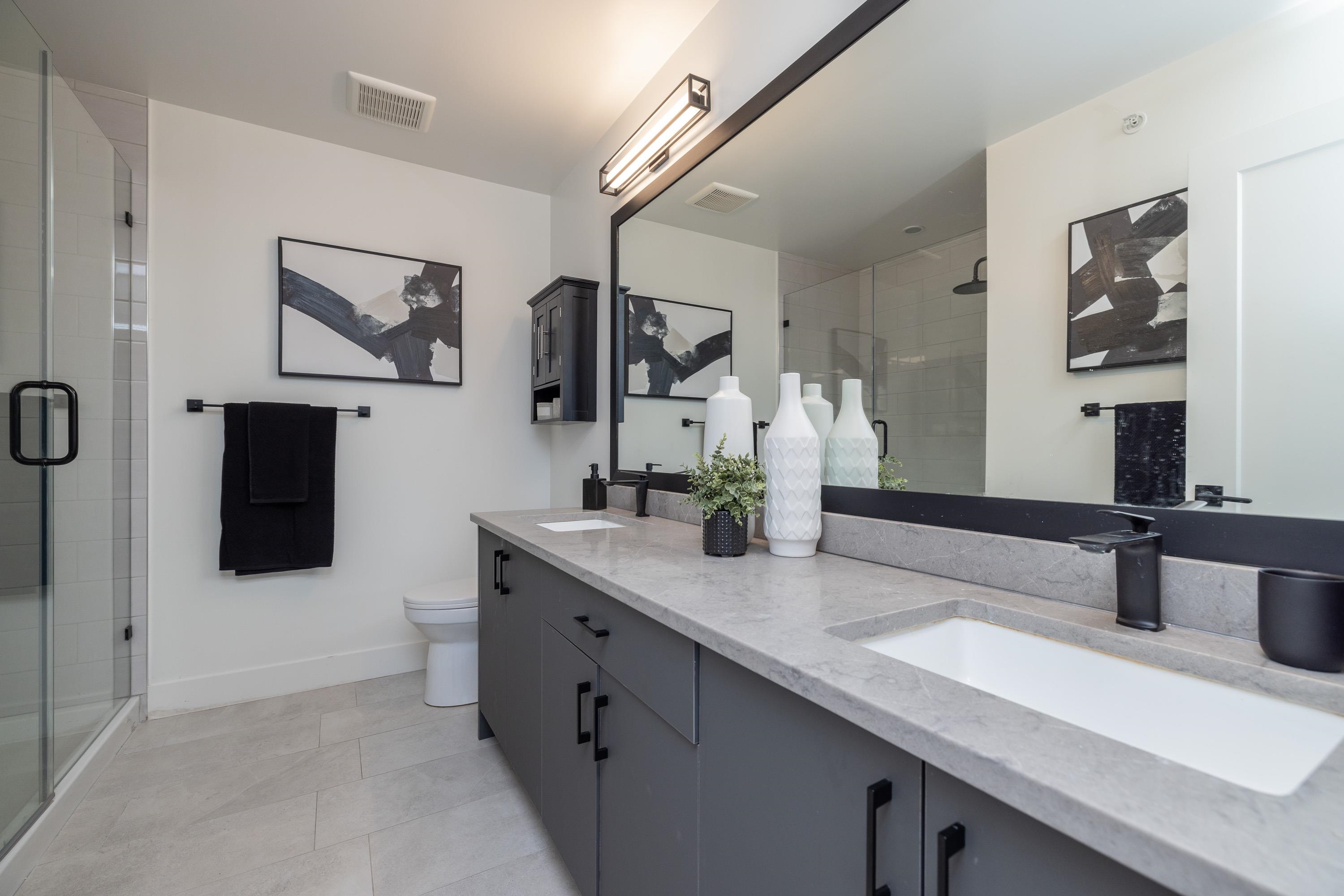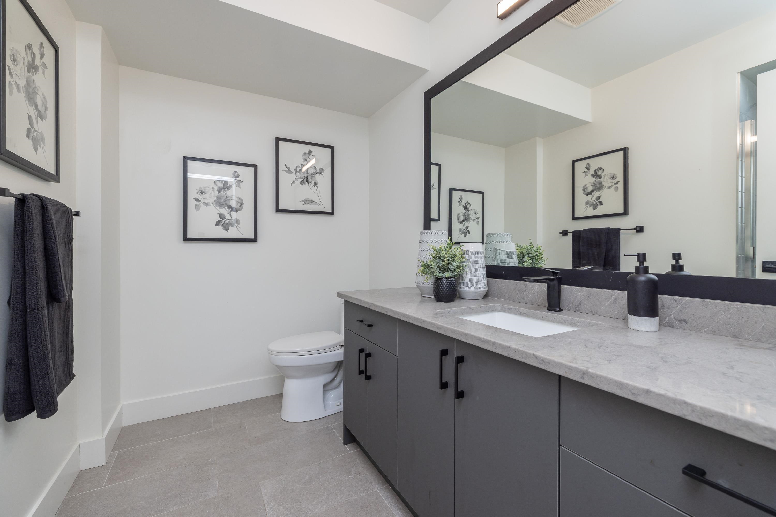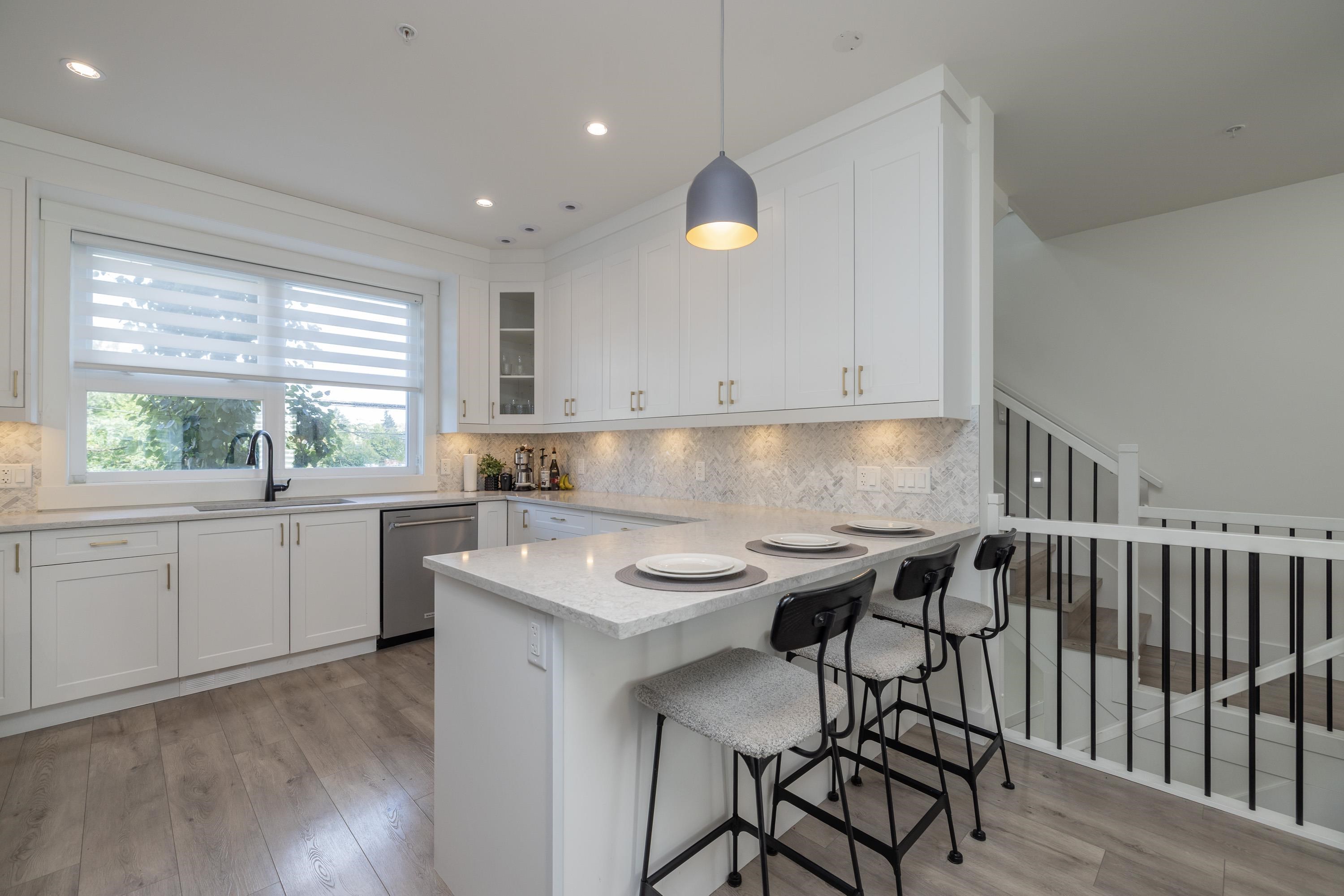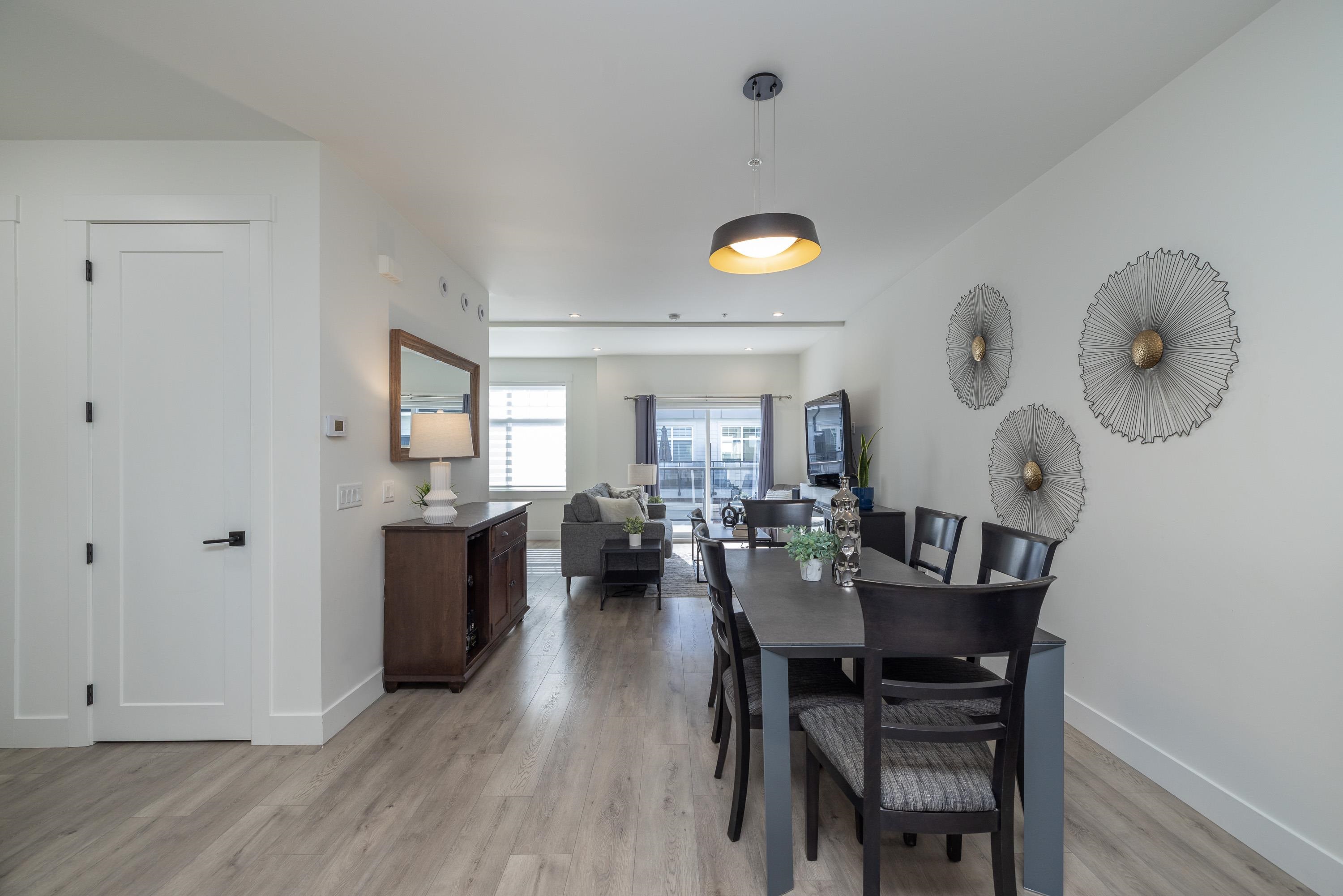 Gorgeous 4 bedroom, 4 bathroom townhome located in Murrayville’s Station 48. Open concept main floor boasts 9’ ceilings, wide plank laminate flooring, spacious living area w/ feature electric fireplace, space for computer/study area, glass sliding door to large south-facing deck w/ gas BBQ outlet, & adjacent dining area. Gourmet kitchen w/ white shaker cabinetry, peninsula w/ breakfast bar, stainless appliances, quartz counters, & marble tile backsplash. 2-pc powder room. 3 bedrooms up including the primary...