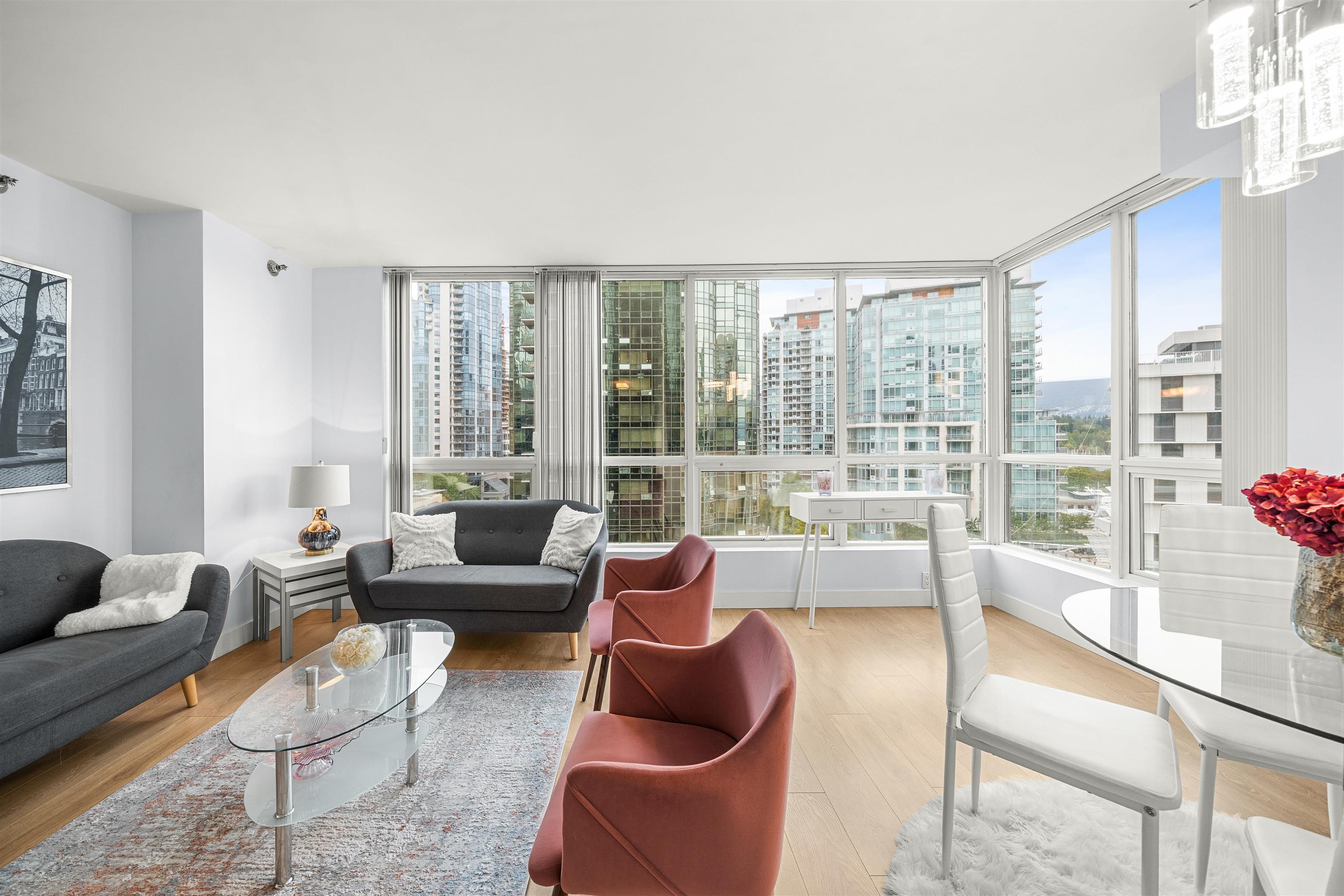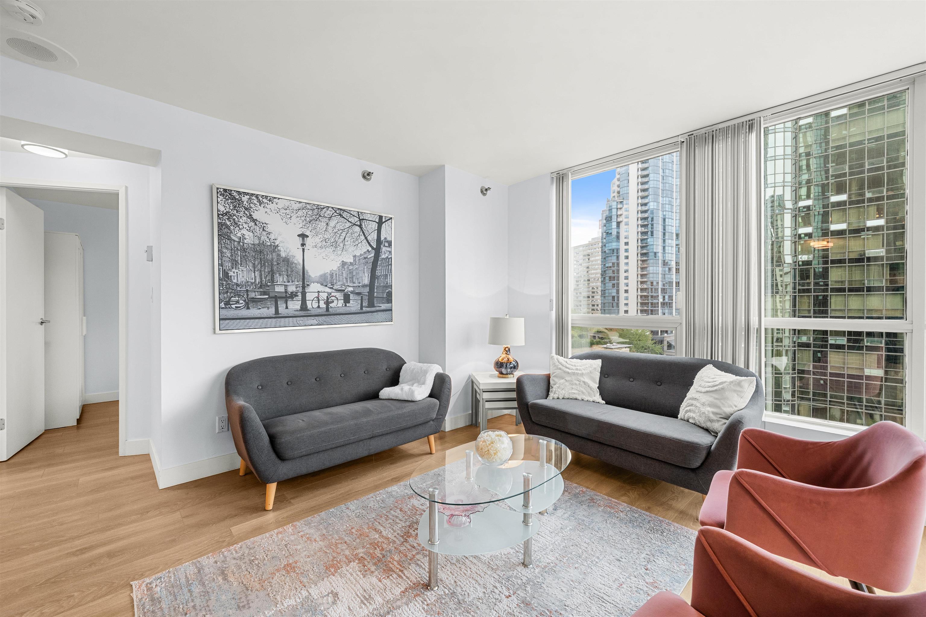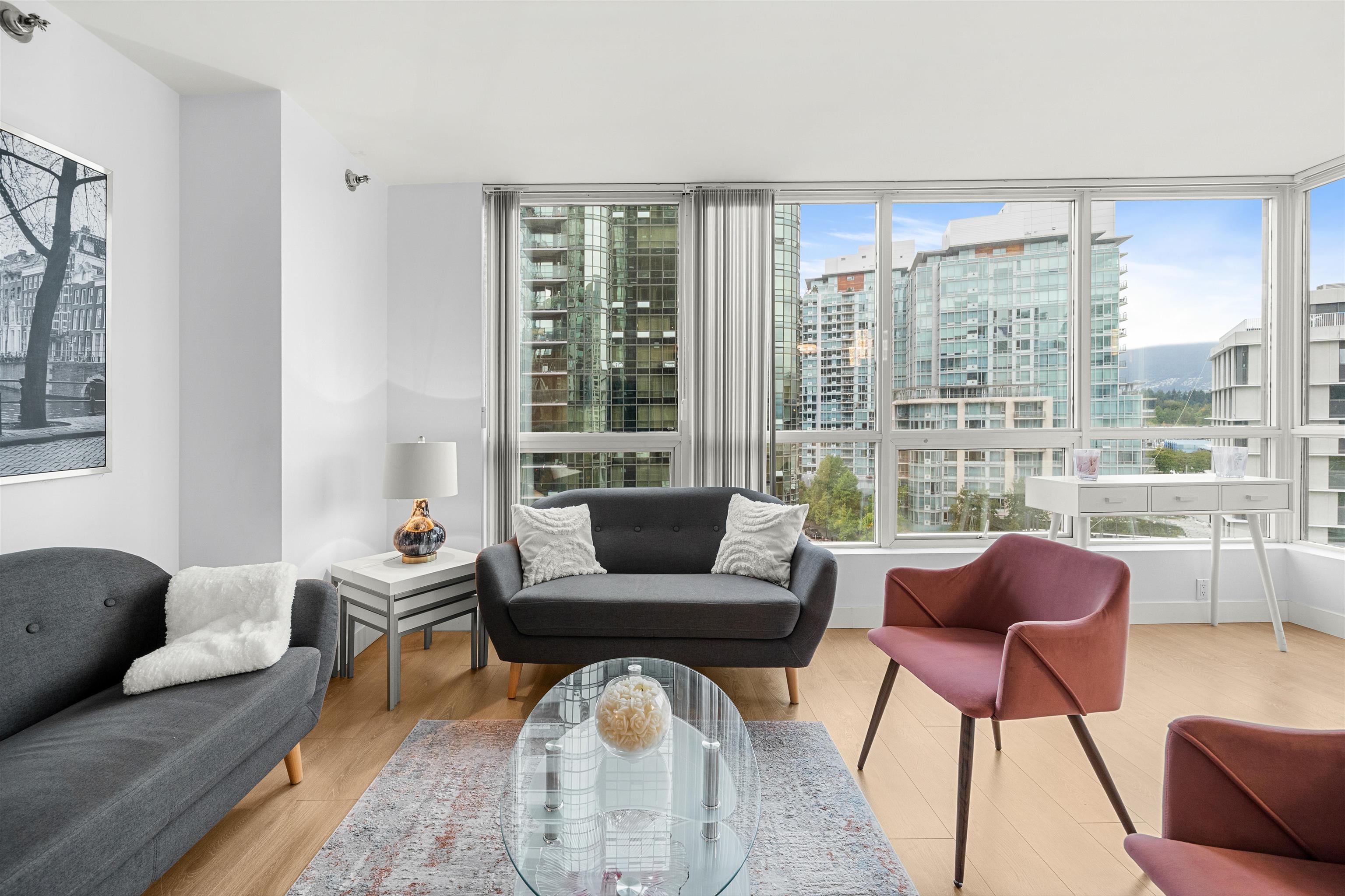 Welcome to Harbourside Park in Coal Harbour! This 589 sq. ft. furnished condo is cozy, charming, and equipped with everything you need for comfortable downtown living. The home features 1 bedroom + den, 1 bathroom, in-suite laundry, 1 parking stall, and 2 storage lockers. Residents enjoy access to outstanding amenities including an indoor pool, hot tub, fitness centre, meeting room, theatre, party rooms, and 24/7 security. Perfectly located just steps from the Seawall, Stanley Park, world-class dining, shop...