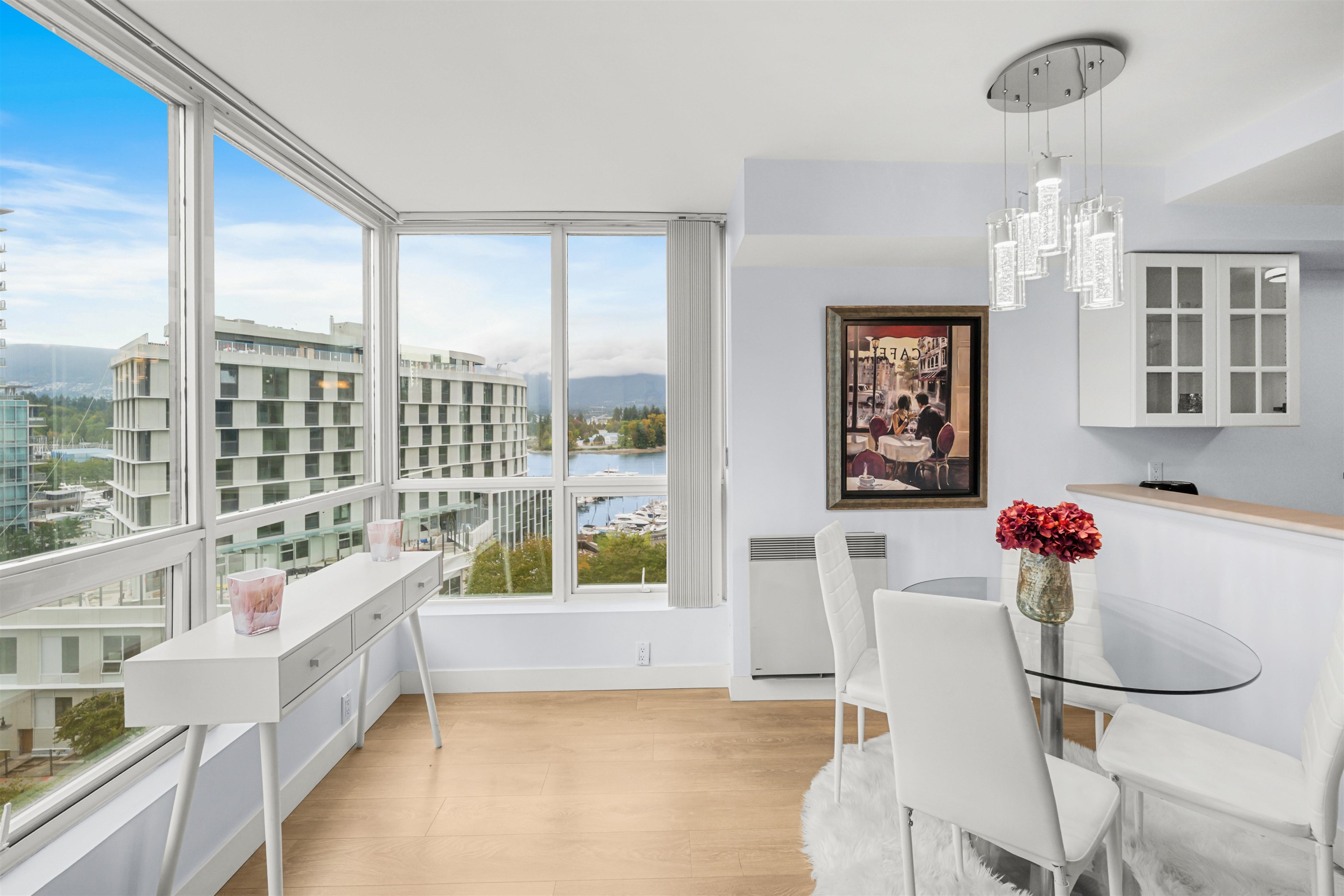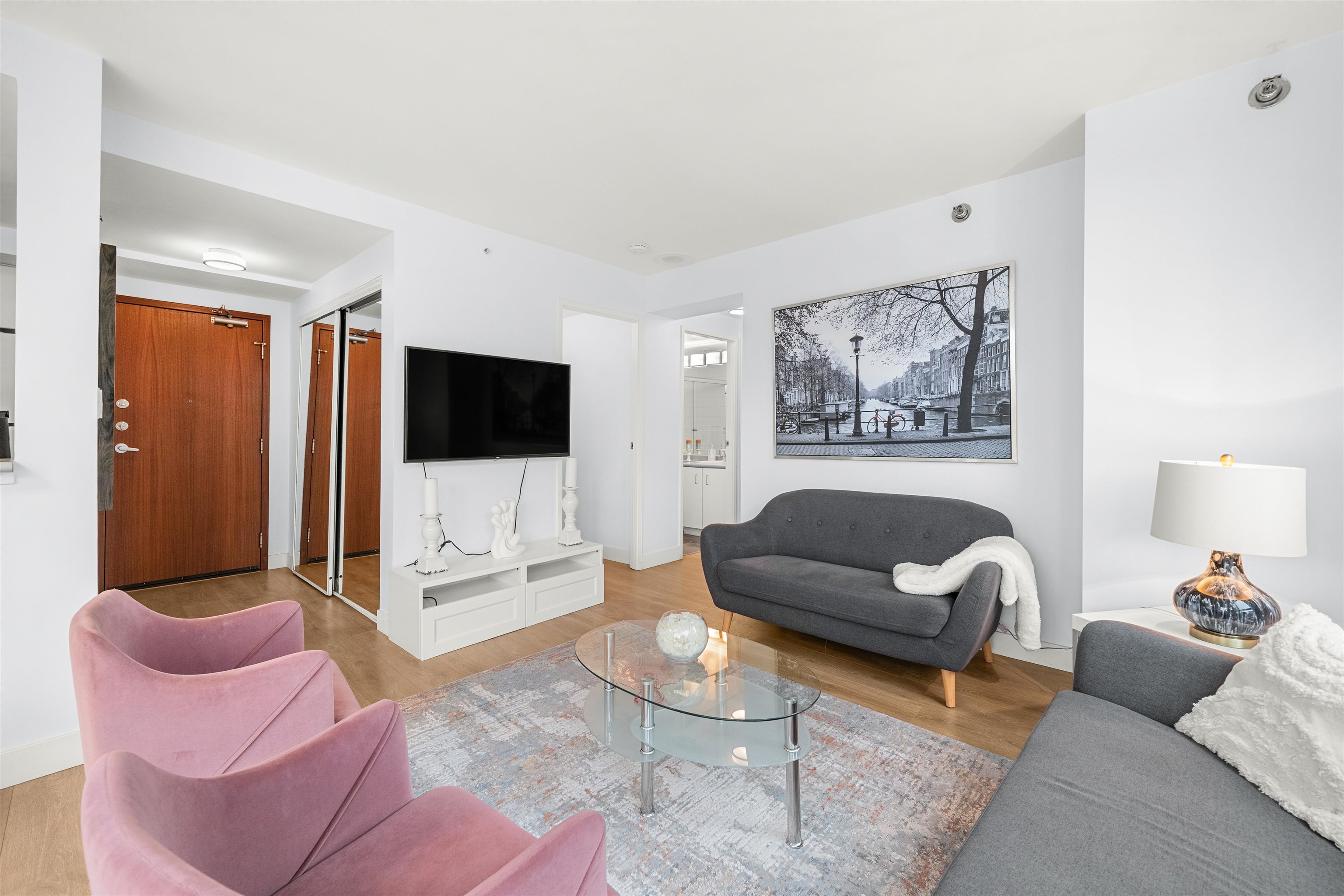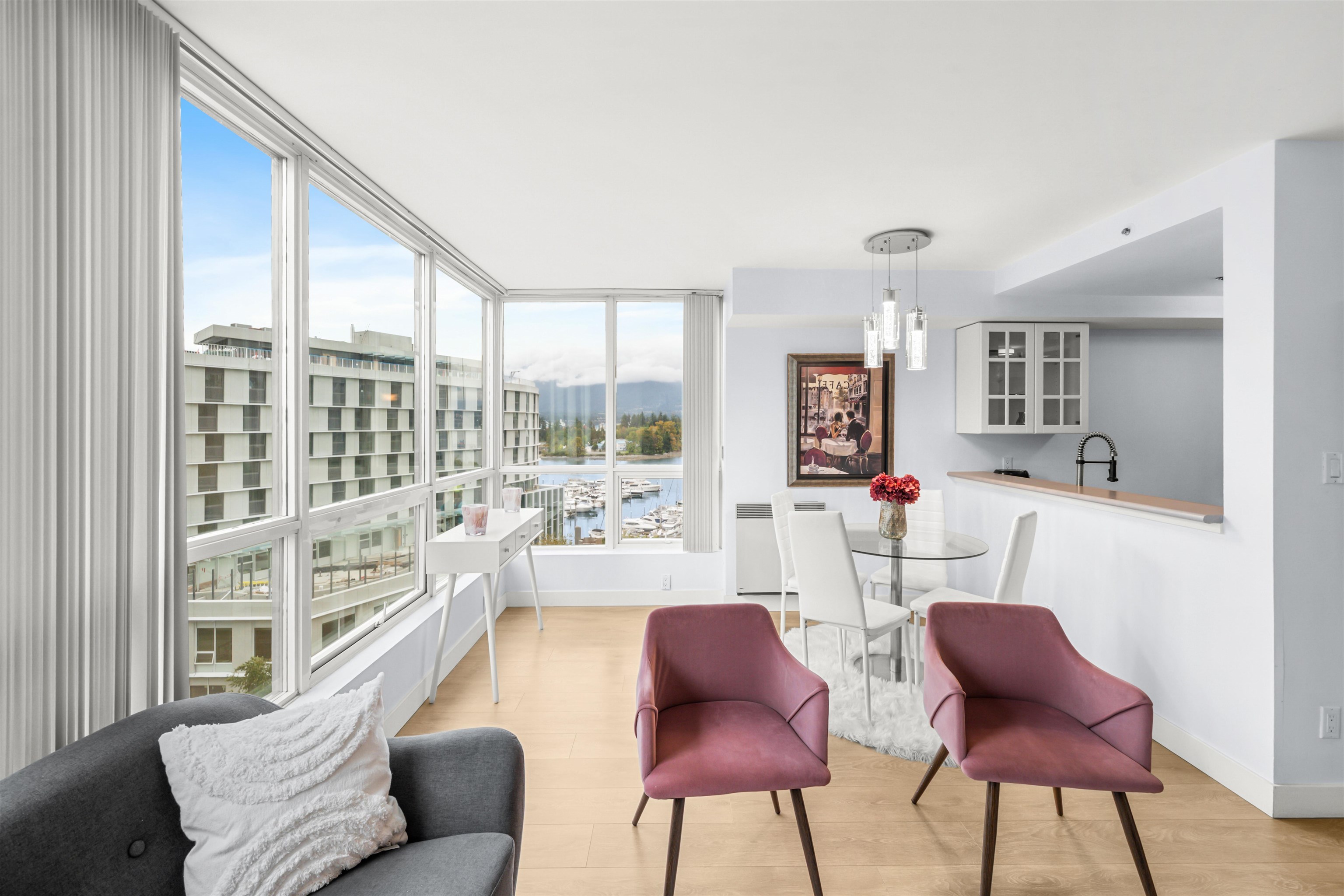 Welcome to Harbourside Park in Coal Harbour! This 589 sq. ft. furnished condo is cozy, charming, and equipped with everything you need for comfortable downtown living. The home features 1 bedroom + den, 1 bathroom, in-suite laundry, 1 parking stall, and 2 storage lockers. Residents enjoy access to outstanding amenities including an indoor pool, hot tub, fitness centre, meeting room, theatre, party rooms, and 24/7 security. Perfectly located just steps from the Seawall, Stanley Park, world-class dining, shop...