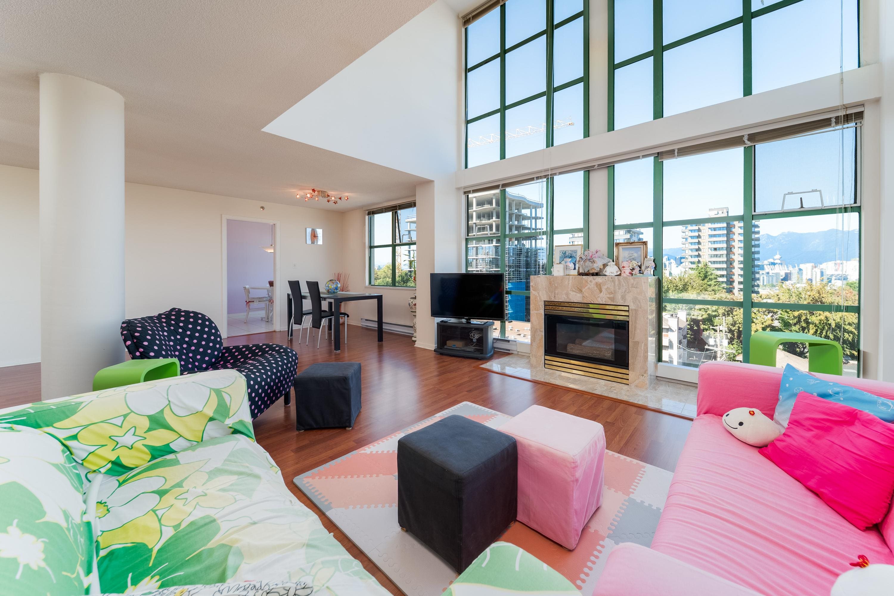 SHOWSTOPPER MNT & CITY VIEWS from this TWO LEVEL, 2430 SQFT Jr 4 bedrm+ DEN PENTHOUSE PLUS 1085 SQFT PATIO (!!!) in the heart of Cambie Village. A grand main floor entry leads to the vast open plan living/dining areas, soaring ceilings, fireplace, large kitchen w/eat in area & main floor flex (bedrm or office). STEP OUTSIDE to 1,085SQFT ENORMOUS PATIO, an outdoor oasis in the city! Unbeatable entertaining home! Primary + 2 more bedrooms, laundry room, and plenty of closets +Two 5 pce baths on the upper floo...