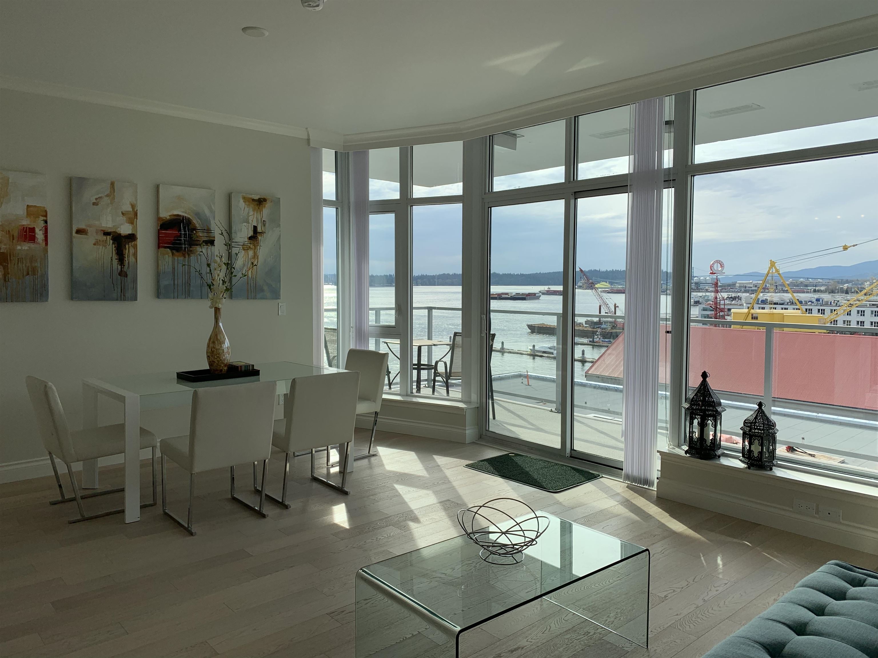 Cascade West - a stunning waterfront building in the heart of Lonsdale! This 2 bedroom, 2 bathroom & den, West facing suite features a luxurious open concept kitchen with European appliances. Massive walk-in closets, large balcony with water views, 9' ceilings, and air conditioning! Free access to world class amenities at the Pinnacle Hotel include: indoor pool, hot tub, sauna, large gym, yoga room, & patio! Steps to restaurants, cafes, seabus, and so much more! 1 parking, 1 locker. Come see for yourself!