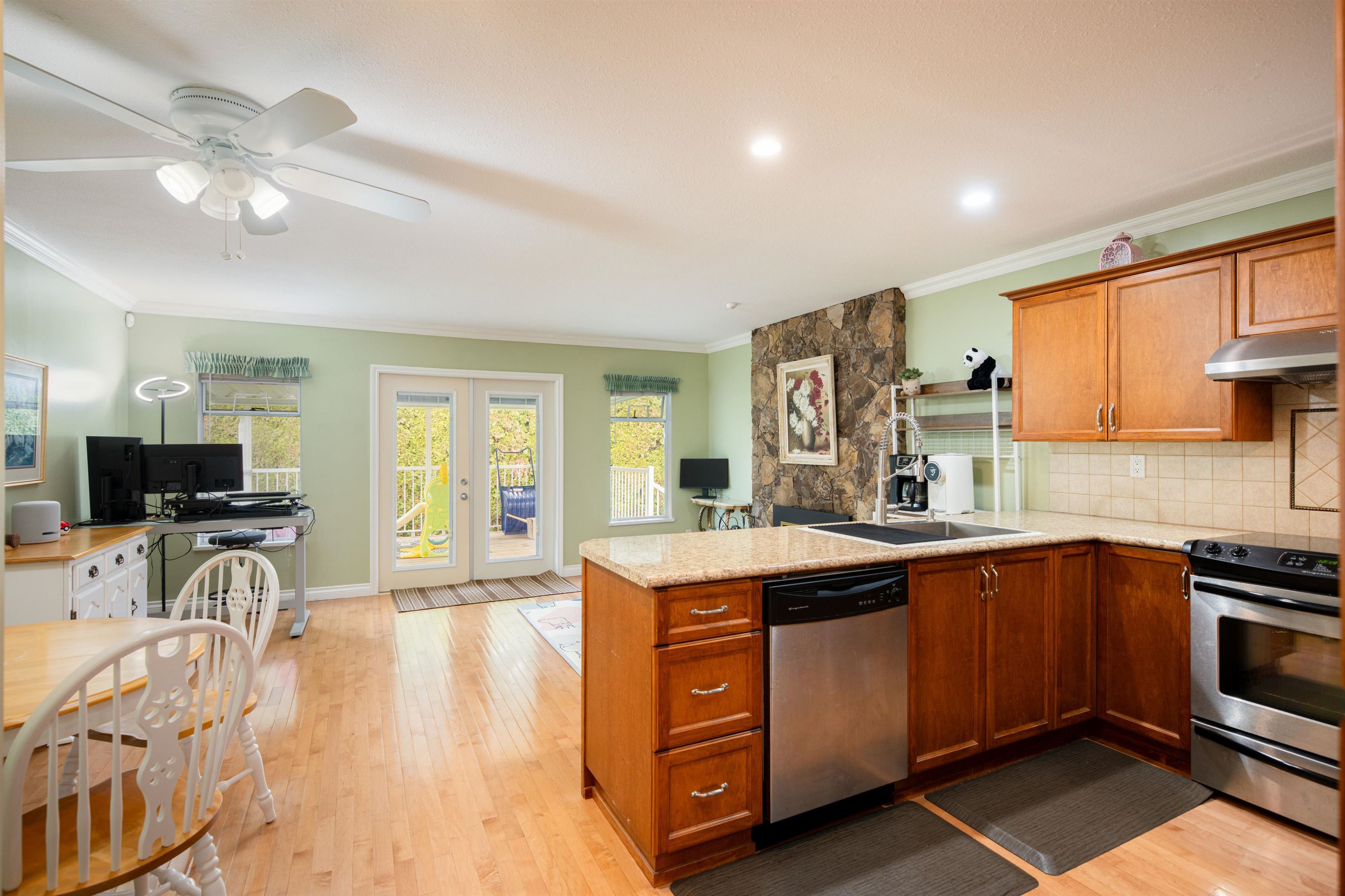 Tastefully upgraded single-level Fleetwood home offering modern comfort and functionality. Recent improvements include a new heat pump, upgraded insulation, LED lighting, brand new appliances including washer and dryer, new kitchen sink, and a fully finished double garage with new door, opener, flooring and custom storage. Solid wood flooring throughout and an oversized primary bedroom enhance the home’s appeal, complemented by two gas fireplaces for added warmth and ambiance. Situated on a spacious lot wit...