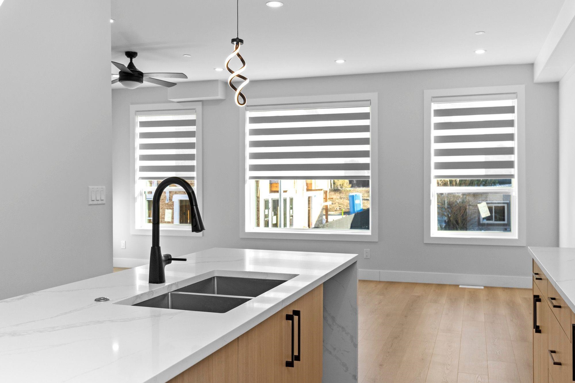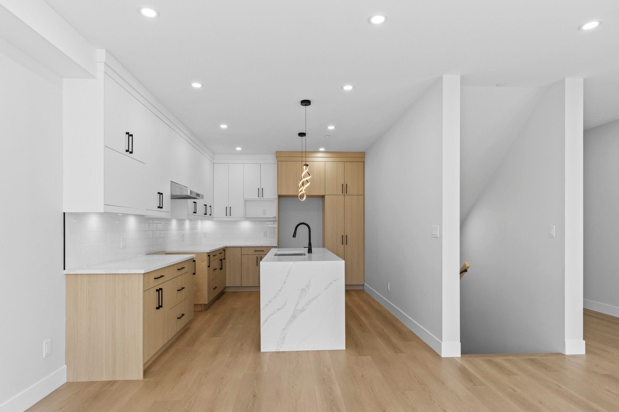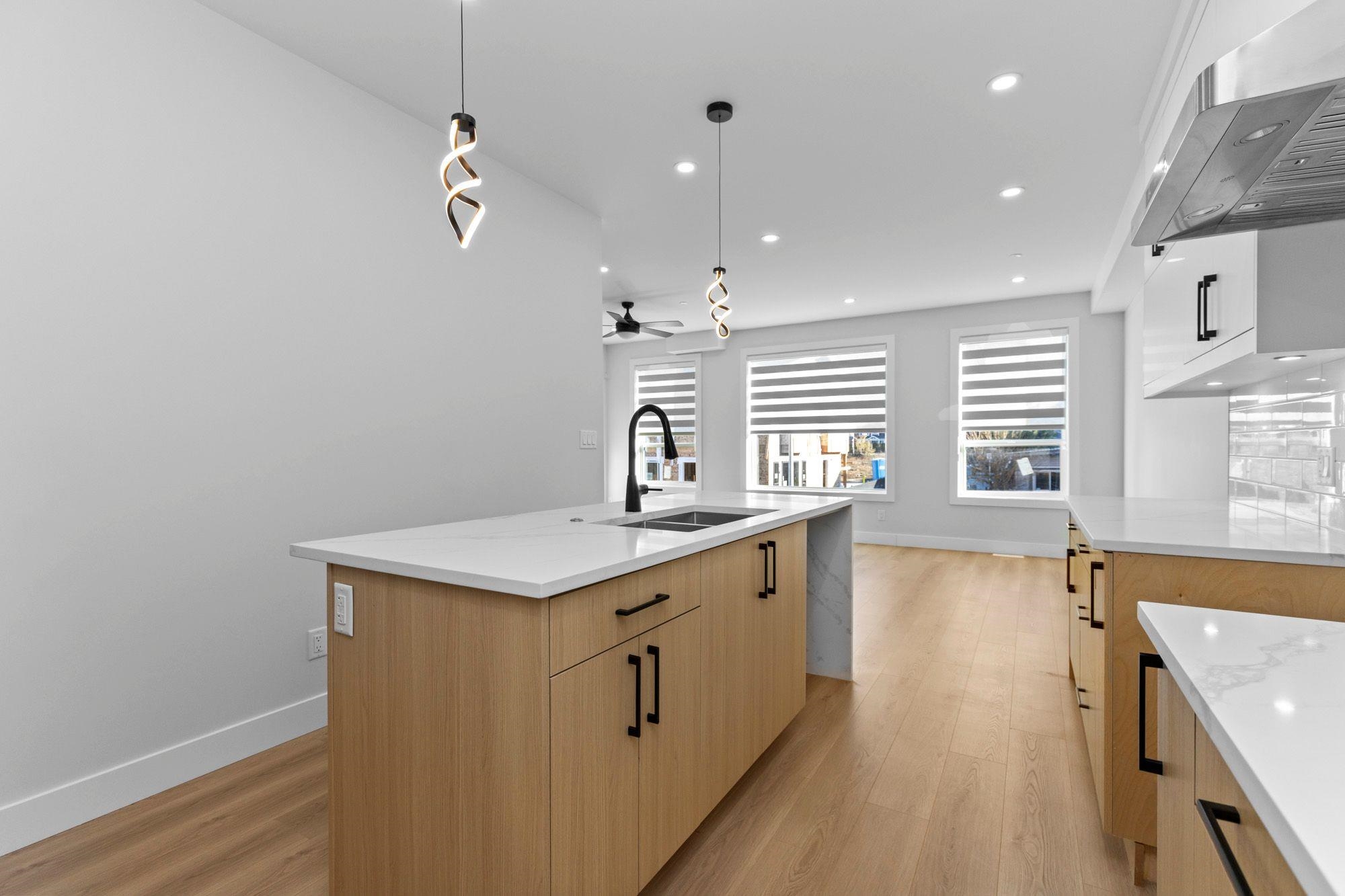 3 level 1/2 duplex with 1 bedroom suite and double garage! This unique floorplan offers modern kitchen with flat panel cabinetry and quartz countertops, great room with gas fireplace and Primary bedroom on the main floor. Top floor for children with 2 bedrooms, full bathroom and laundry! Lower level is ground level with 1 bedroom suite with separate entrance and own laundry (no stairs for your parents and no window wells, bright, all above ground) Long life metal roof, double garage, huge driveway, heat pum...