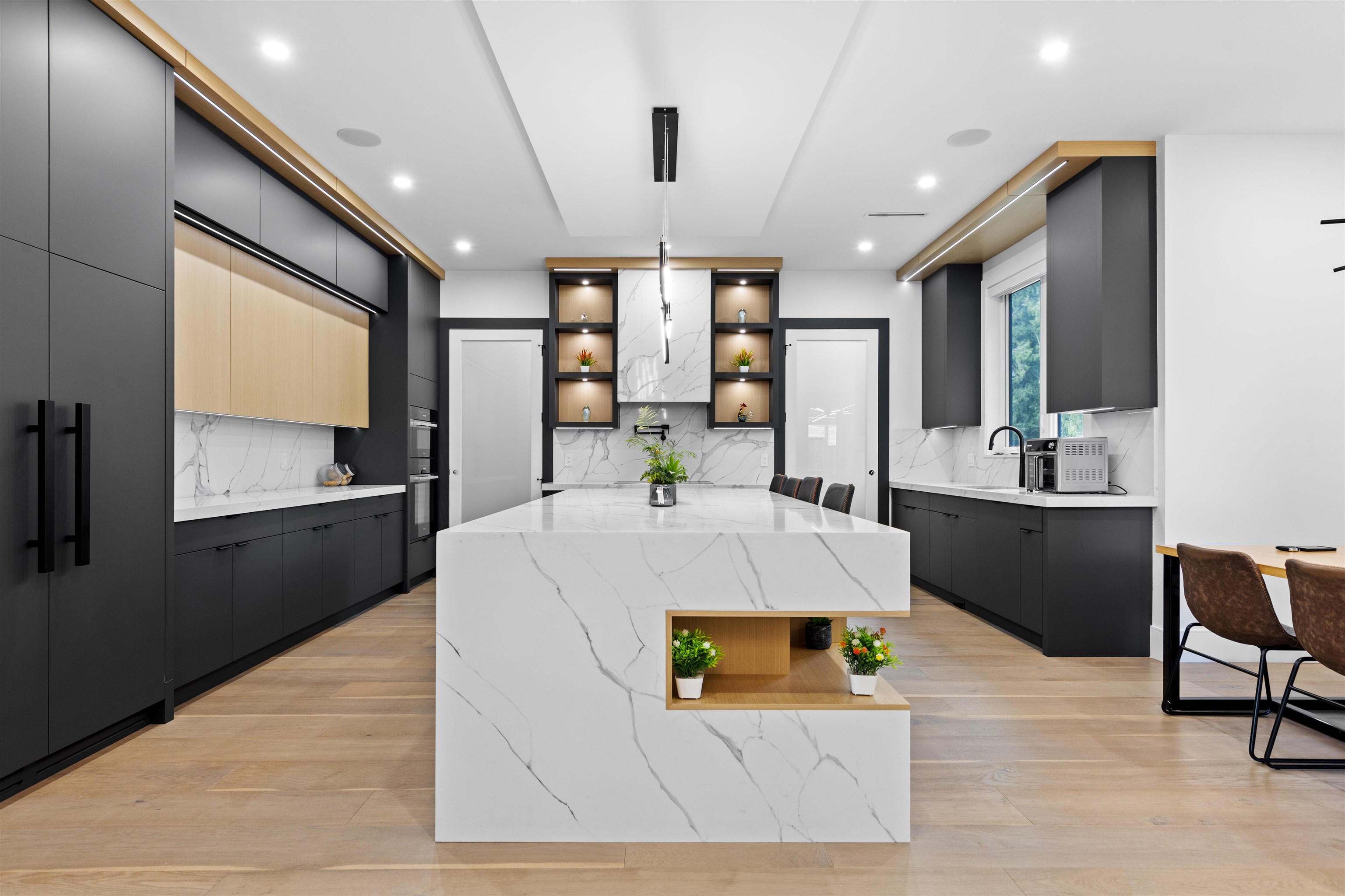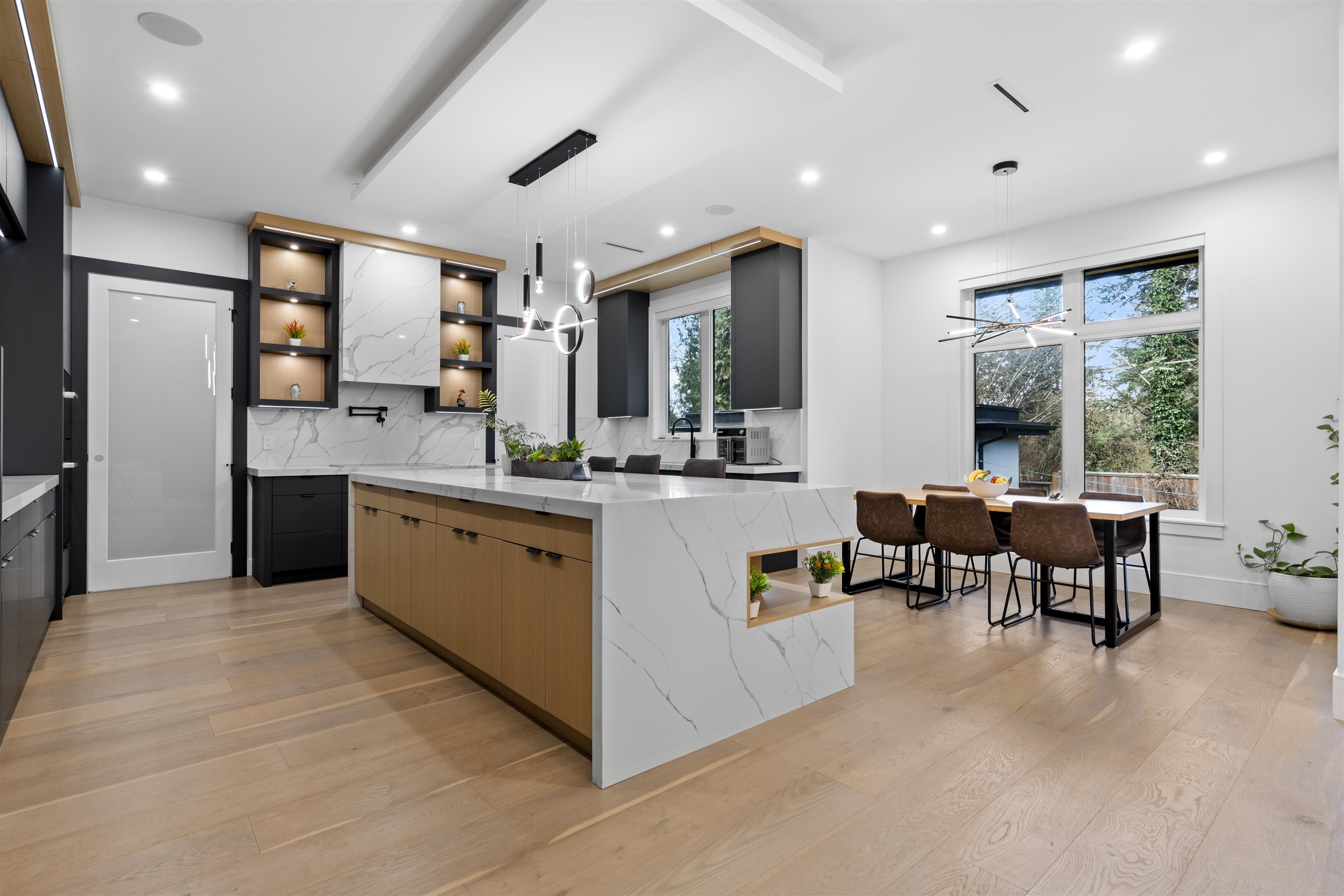 Luxurious modern home in the sought-after neighborhood of North Delta! NO GST! This stunning 8-bedroom, 8-bathroom residence offers approximately 5000 sqft of thoughtfully designed living space, blending elegance, comfort, and functionality. Featuring high-end finishes throughout, a sleek contemporary design, and three sets of laundry for ultimate convenience. The home includes a spacious 2-bedroom legal suite with separate laundry & also have option of 1 Bed Suite ideal for rental income or extended famil...