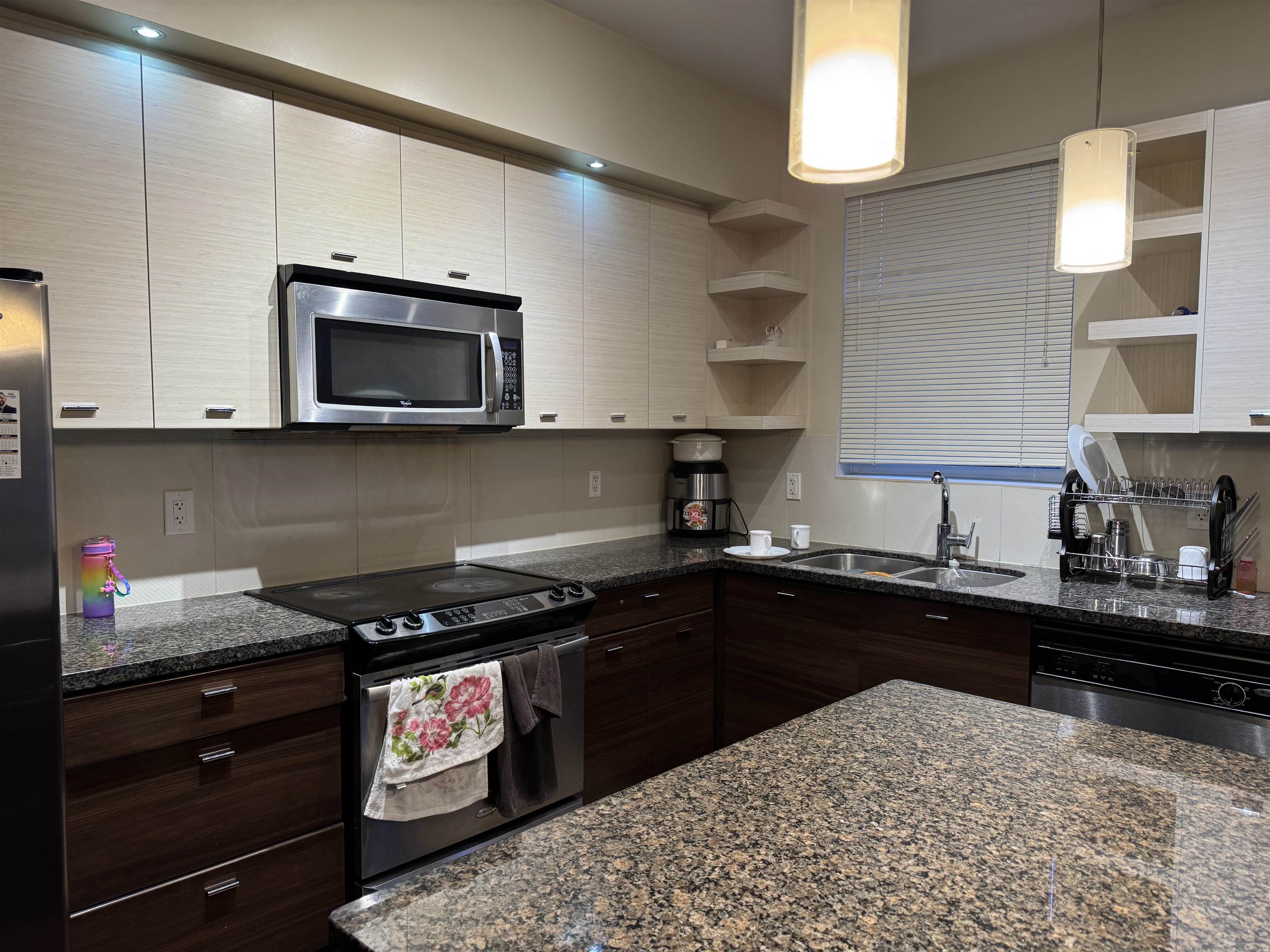 Almost 1900 sq ft of spacious living. 3bdrm/ 3bath END unit townhouse plus large rec room. Main floor features open kitchen with s/s appliances, granite countertops, living, dining and family room plus large sundeck perfect for a BBQ and entertaining. Upstairs you will find MBDRM with vaulted ceilings, ensuite with granite and walk in closet plus 2 more bedrooms for the kids plus laundry. Downstairs you will find rec room (easy to convert to 4th bdrm) plus double side by side garage and fenced private backy...