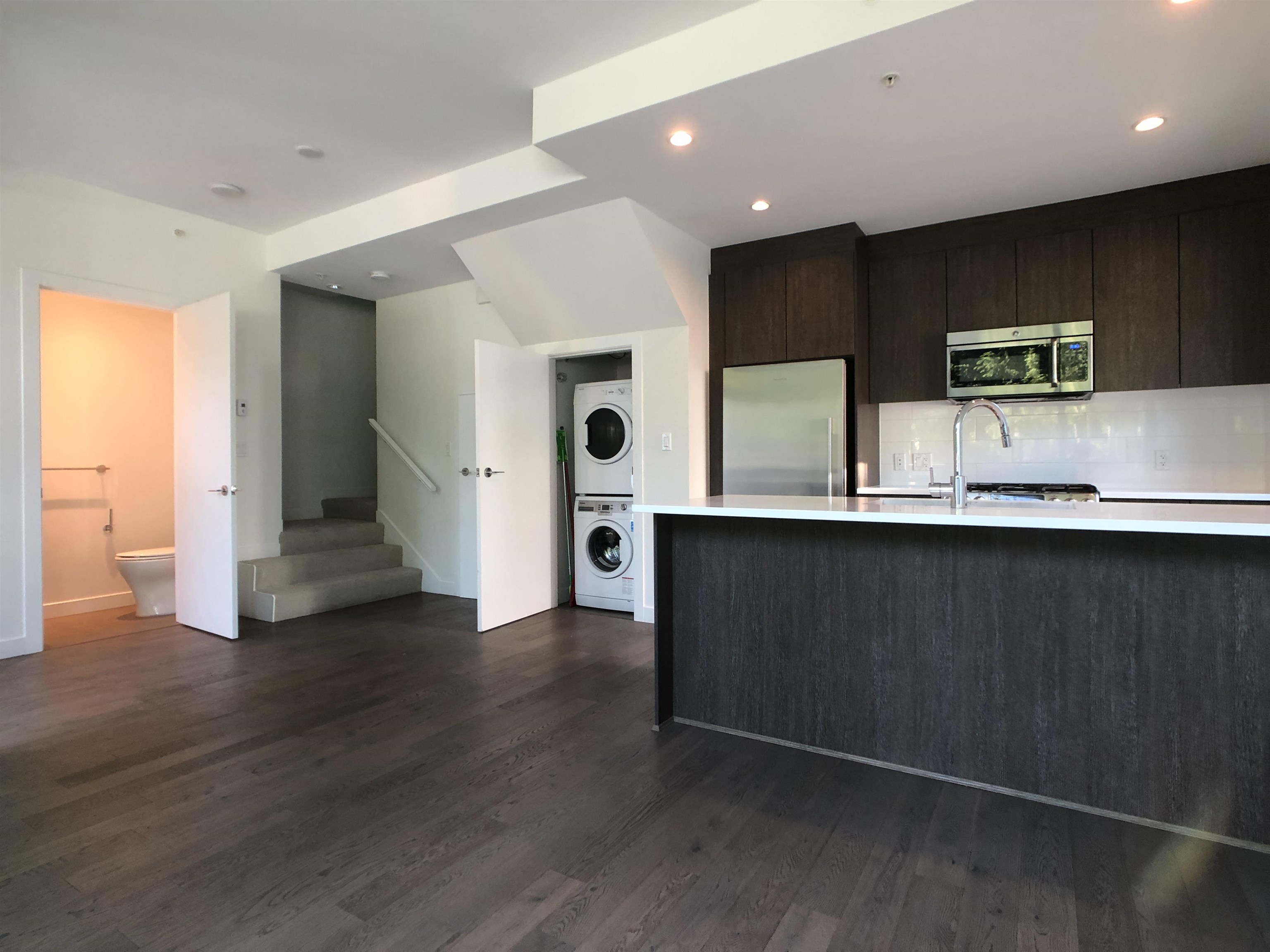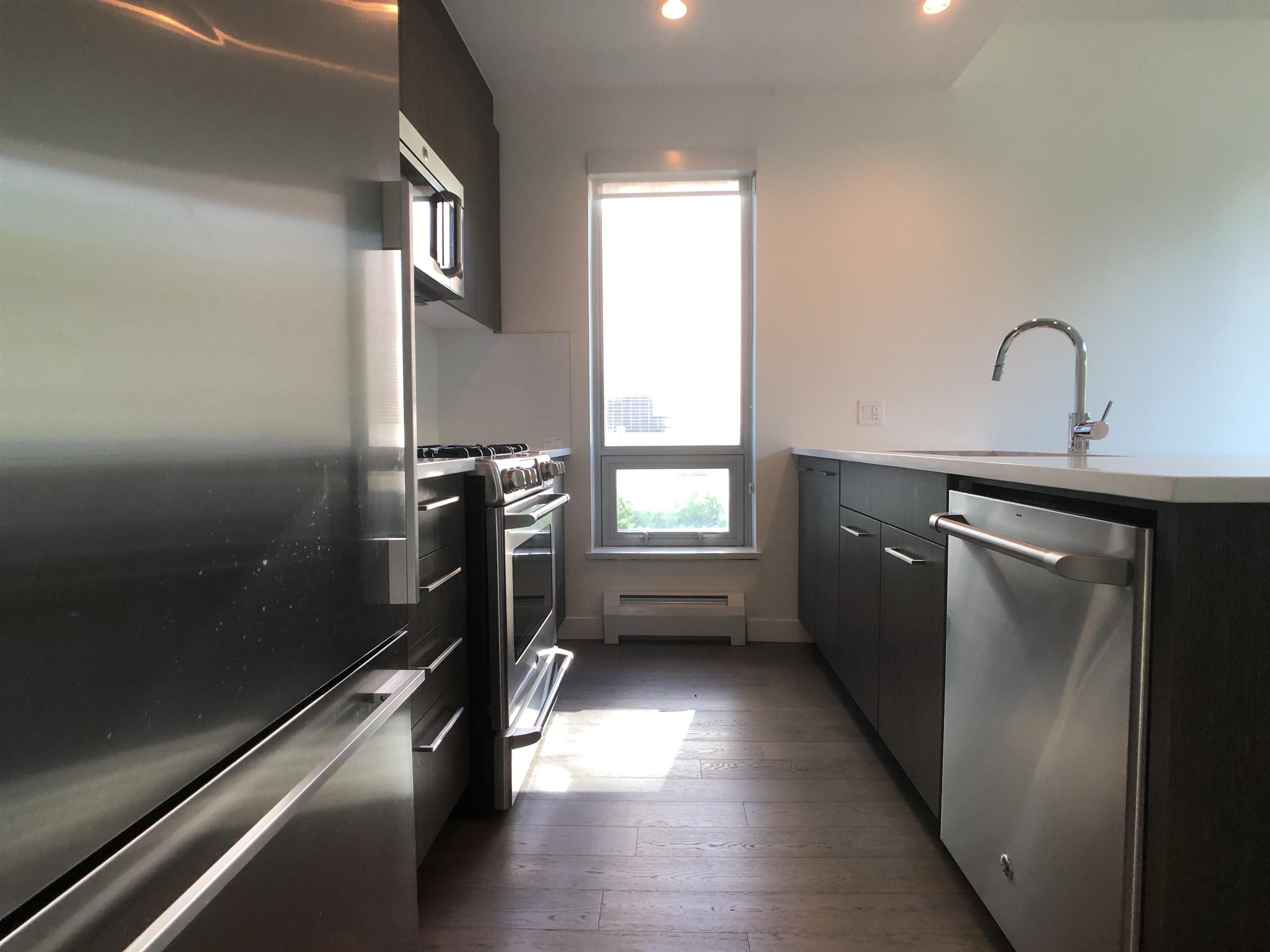 Concrete townhouse unit at Altitude building located on Burnaby Mountain. Just walking distance to SFU campus, bus loop, high street and beautiful trails and scenery. Private patio with street access. Open layout with powder room on main level, carpeted bedrooms and two bathrooms upstairs. Secured underground parking and bike locker included. Rent does not include electricity and telecommunications. Pets not considered. For long term tenancy.