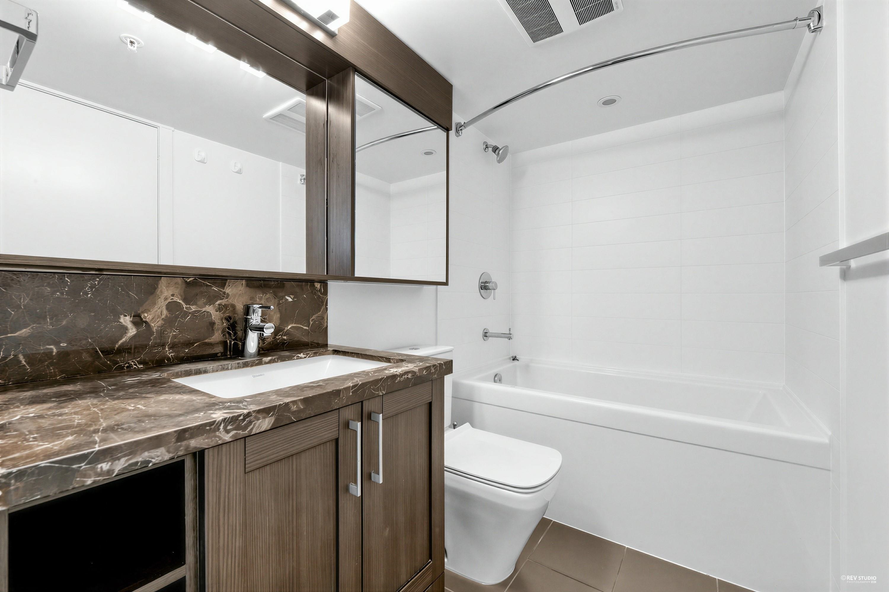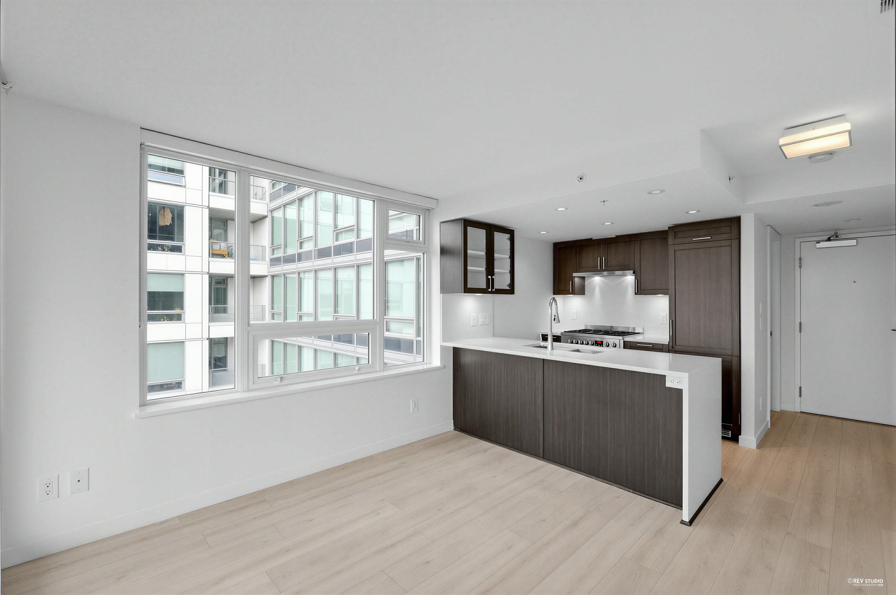 Wall Center T1, 519 sf 1 bedroom plus den corner unit. Laminated floor. Trendy kitchen cabinetry. Open concept kitchen with beautiful quartz countertops for a sophisticated look. Large windows in all rooms for increased natural light. Overseeing roof top garden on the balcony. Only floor connected to Tower 2 for accessing to the swimming pool amenity. Walking distance to daily necessity shopping on Kingsway, Center Park, skytrain station.