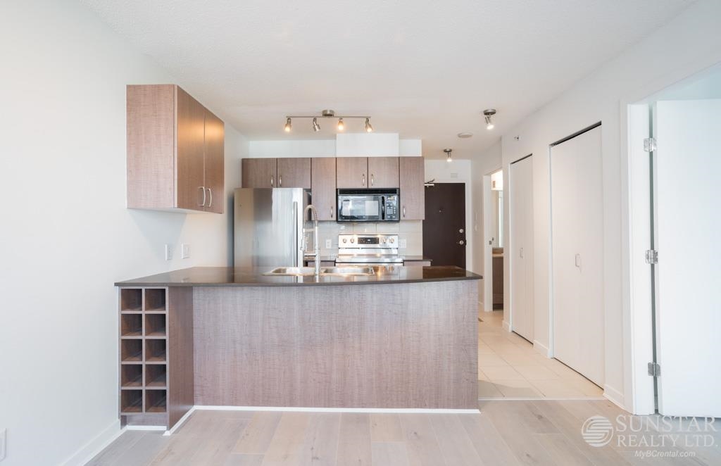 The Hudson residential component sits on top of a host of new exciting commercial retail outlets. This 400+ units tower features 6 elevators, a grand hotel style lobby and other amenities. This 523sf, 1 bedroom + office + balcony unit comes with a very functional layout, maximizing the utility of space. Enter directly into the "peninsular kitchen" featuring stainless steel appliances, newer range & fridge, quartz stone kitchen countertops, cordovan brown cabinetry, breakfast bar and built-in wine rack. Off ...