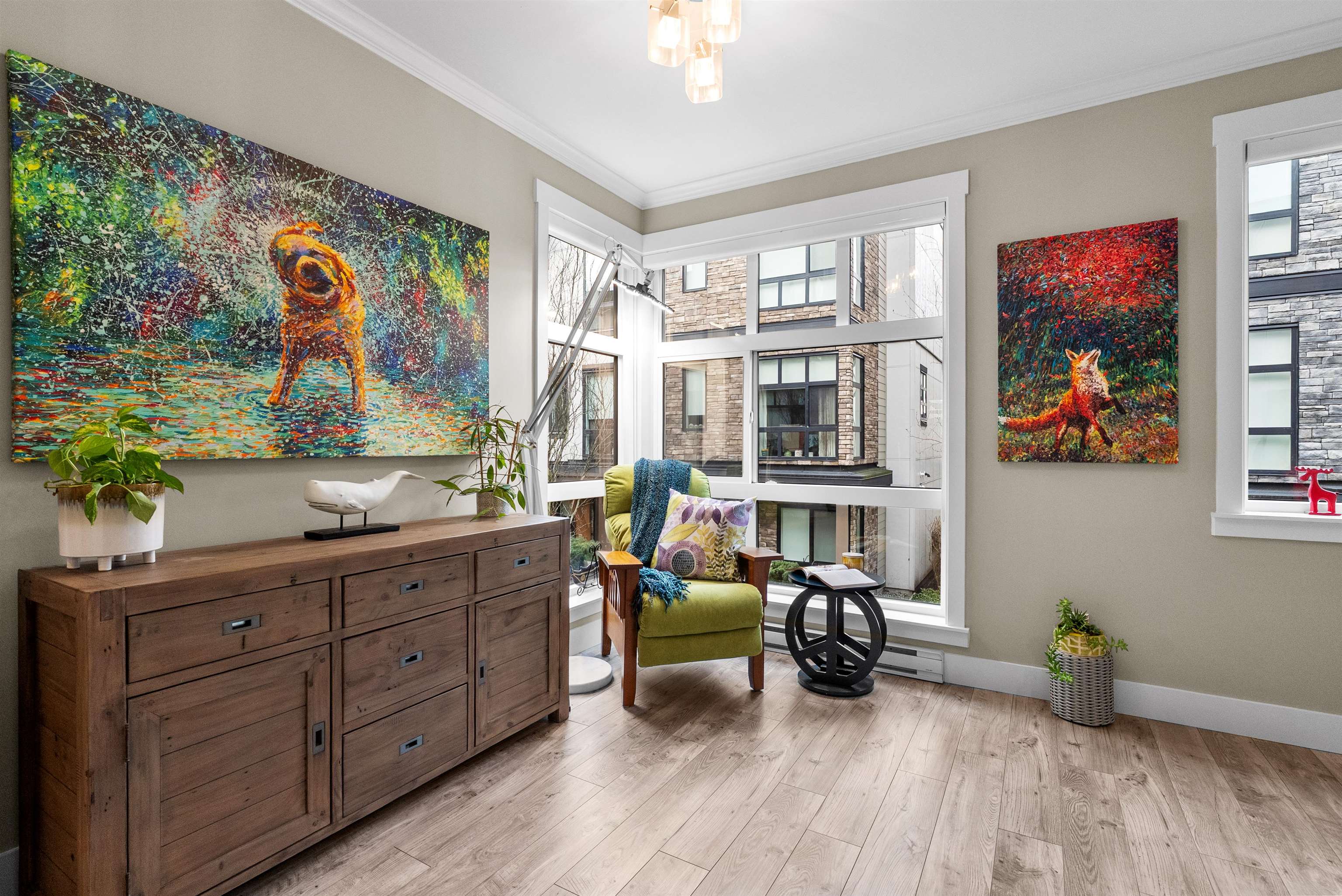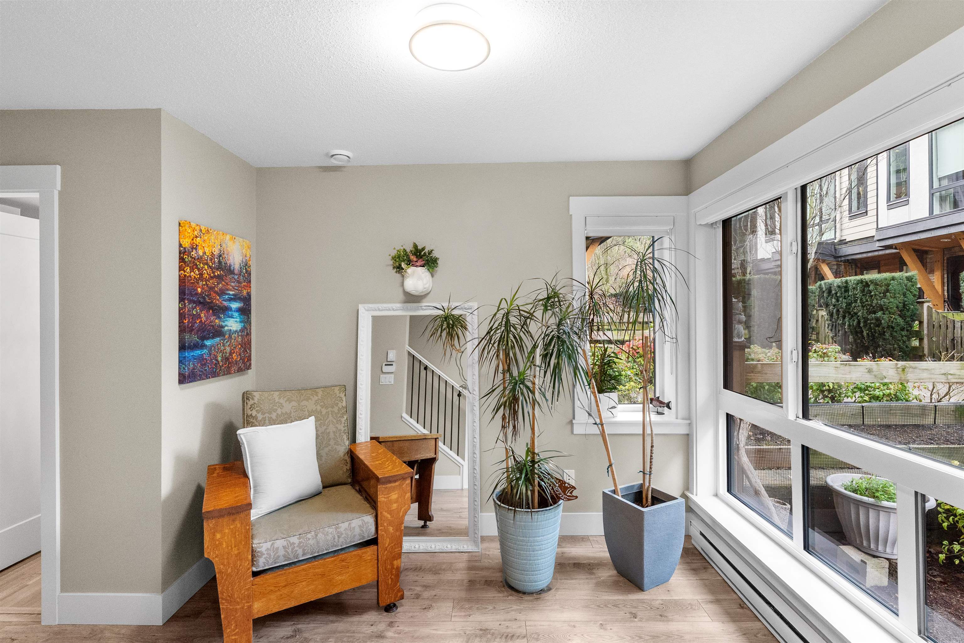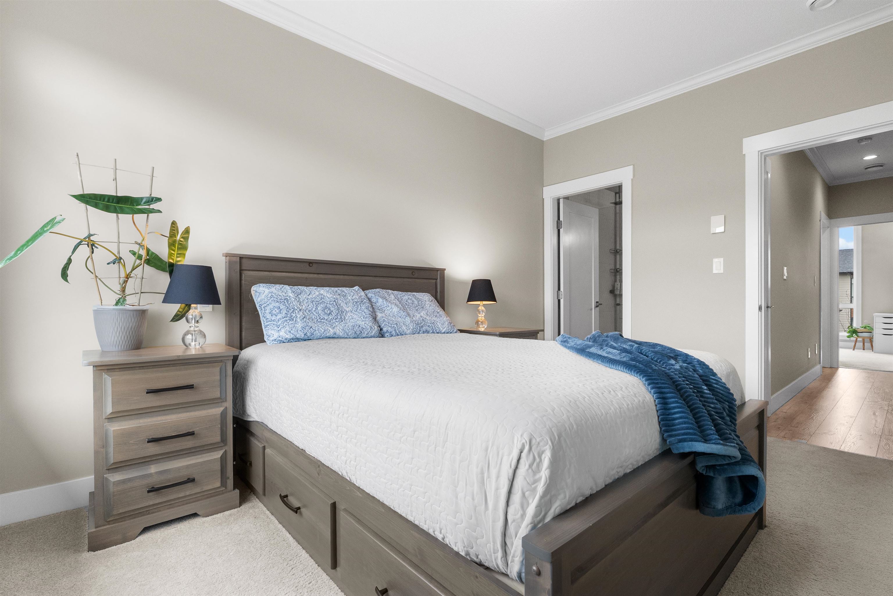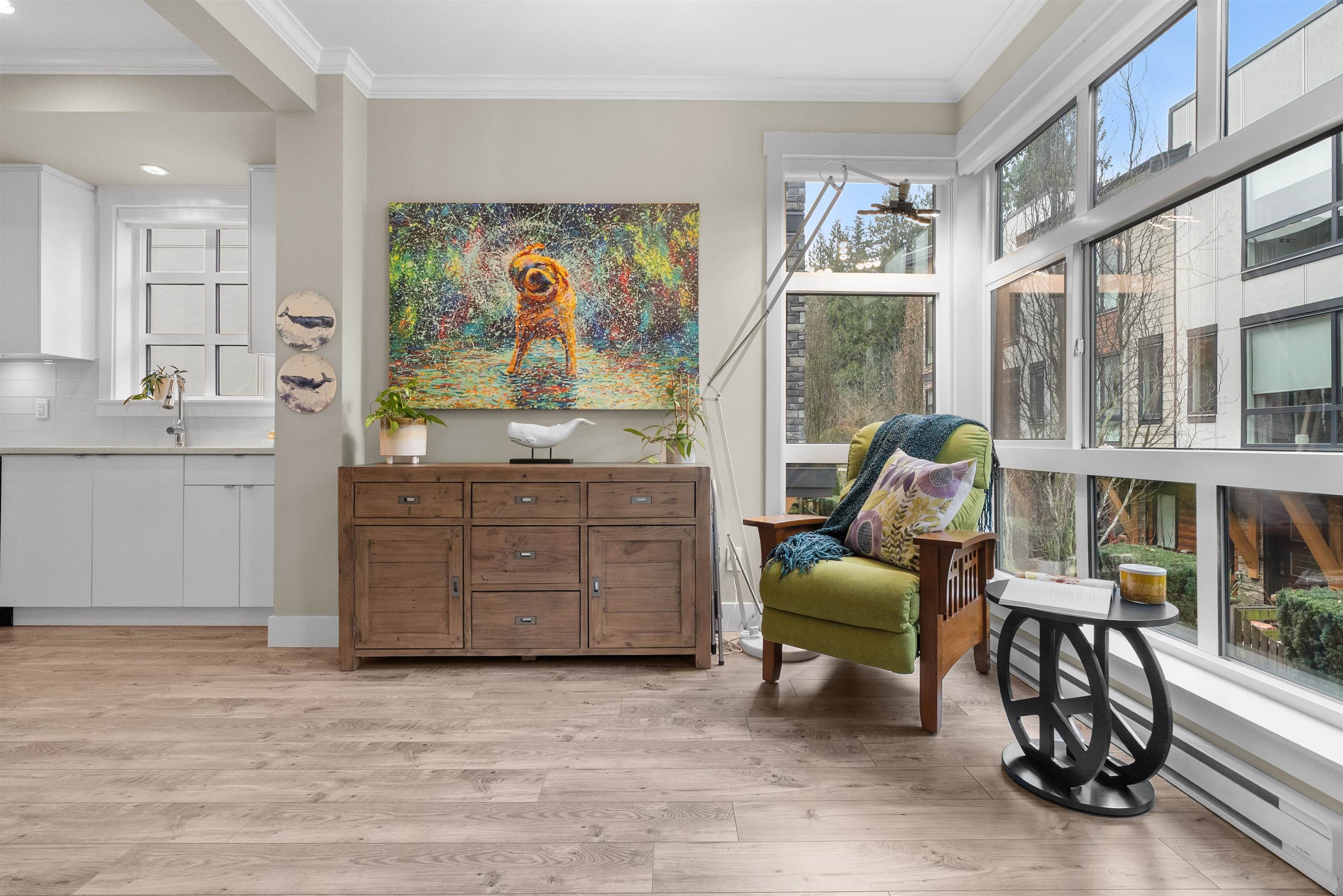 Beautifully maintained end unit at Harvest at Bose Ridge Farm in West Cloverdale! The open concept living space features a gourmet kitchen with quartz countertops, modern cabinetry, stainless steel appliances, gas cooktop, and a striking waterfall island, perfect for everyday living and entertaining. 9 foot ceilings and floor to ceiling windows create a bright, airy feel throughout. A versatile flex room/den welcomes you at the entry while the upstairs offers a generous primary bedroom and the second bedr...