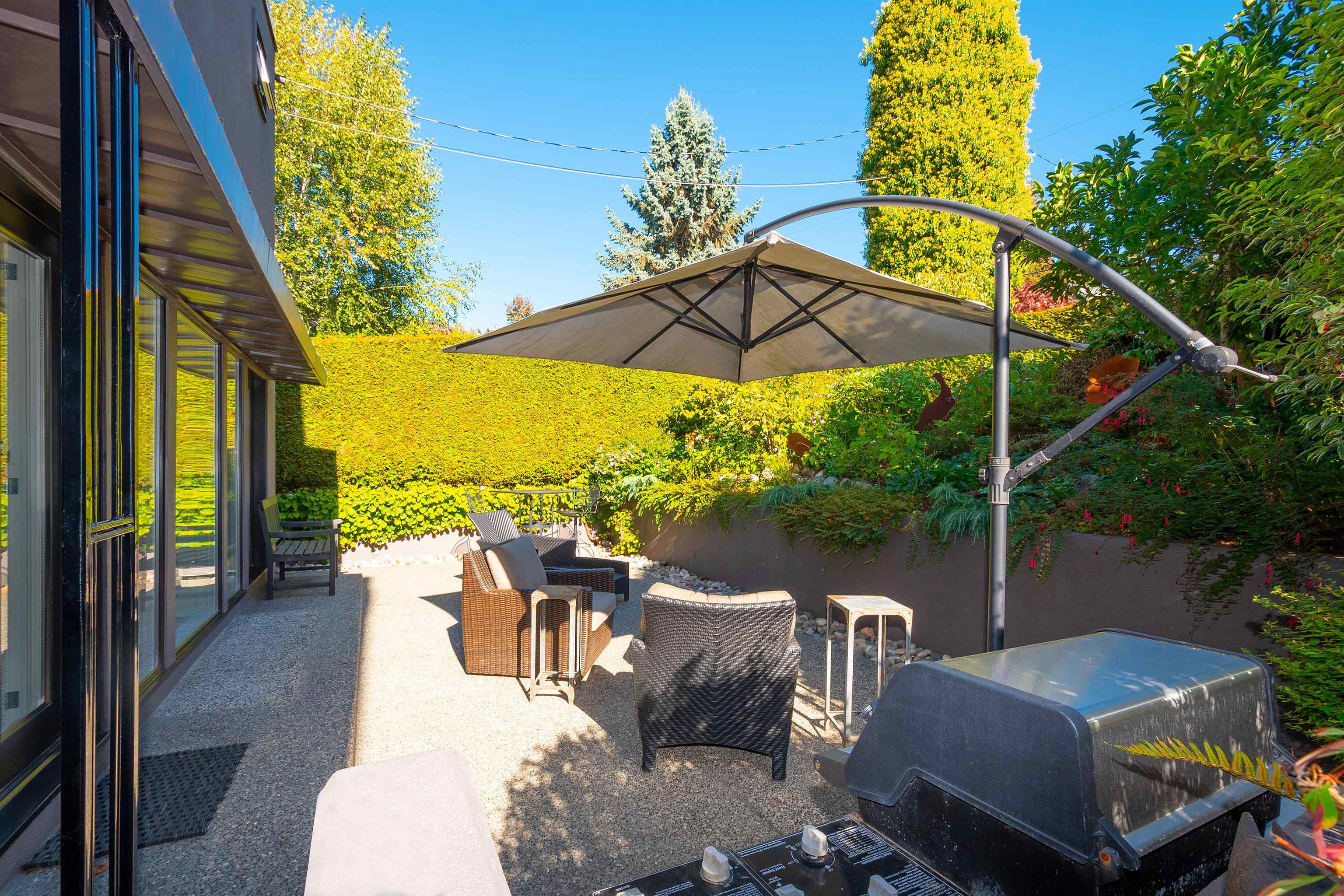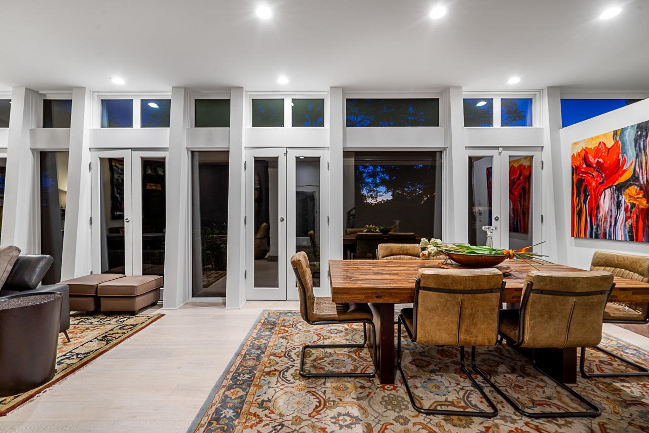A truly special contemporary home, surrounded by private gardens, on 1 of the best streets in Ambleside! Tastefully updated & meticulously maintained, this 3 level home offers an open concept main floor, perfect for entertaining & enjoying the in/outdoor lifestyle. The kitchen has been completely remodeled (including 5 burner Bosch gas stove/steam oven), the living/dining rooms are filled with natural light from the floor to ceiling windows. Upstairs has vaulted ceilings with 2 large bedrooms, Juliet balcon...
