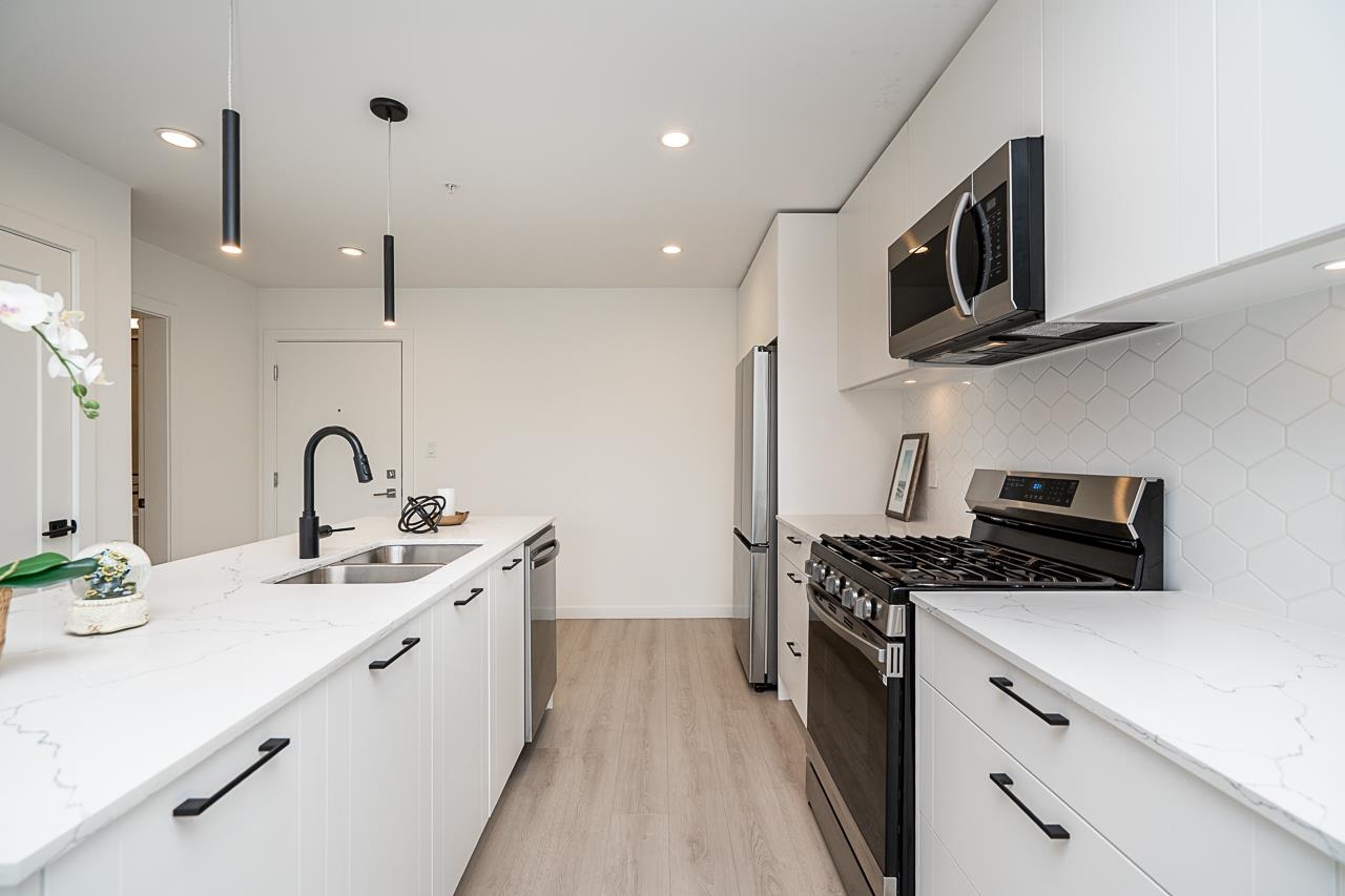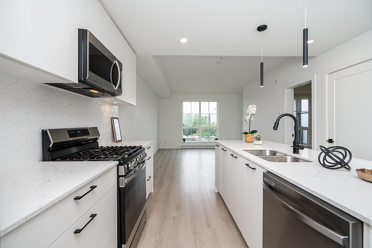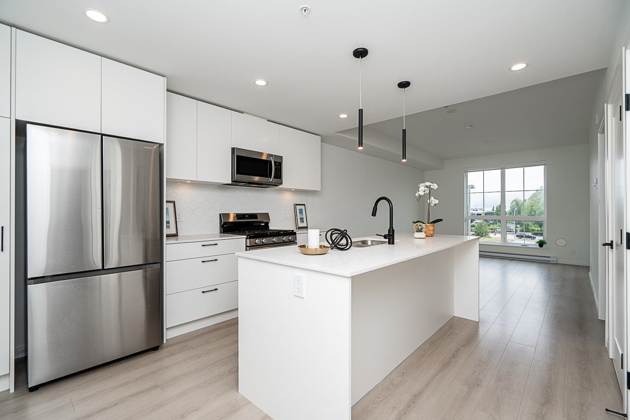 Welcome to Massive 74 Acre Latimer Village's Spacious 1 Bed Condo "READY TO MOVE IN" home is awaiting for its first home owner! This home features Open concept floor plan with oversized windows, facing the Courtyard. Samsung appliances, gas range, quartz countertops in the kitchen. 1 EV ready parking and 1 storage locker. Located near Blacksmith bakery, Sidebars, Kai Sushi and more. Shopping, parks, schools and Langley Event Centre, Calvorth Bus Exchange and more! Book your tour NOW!