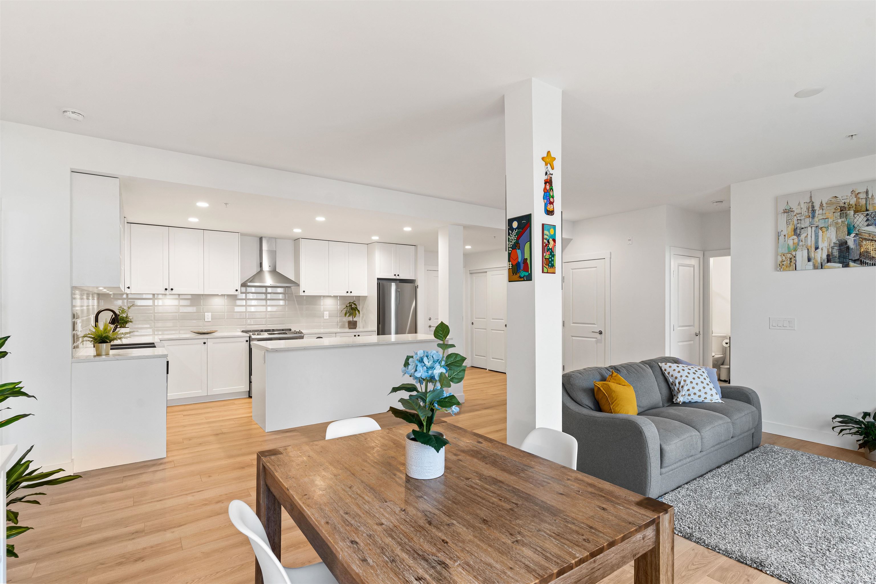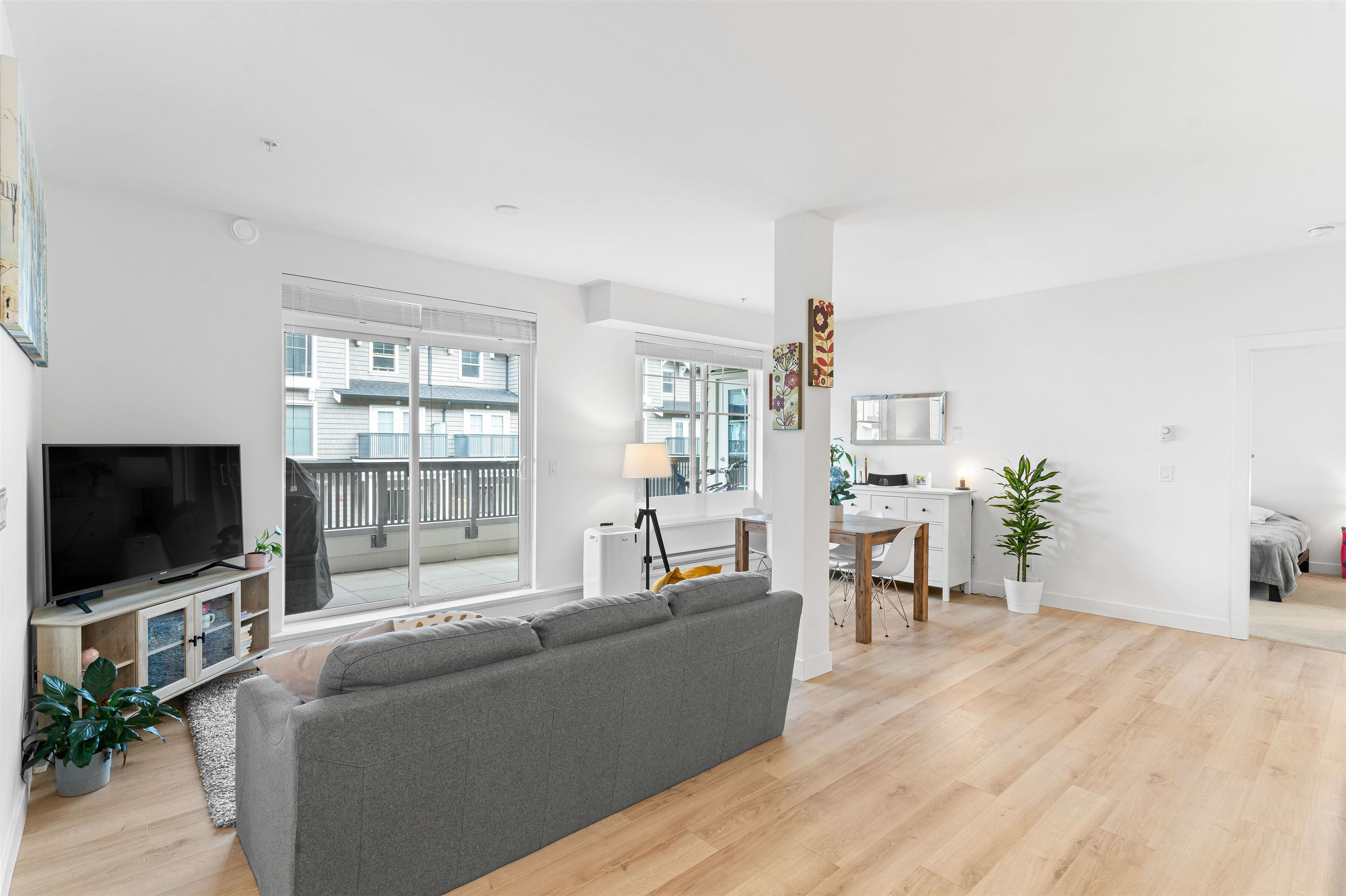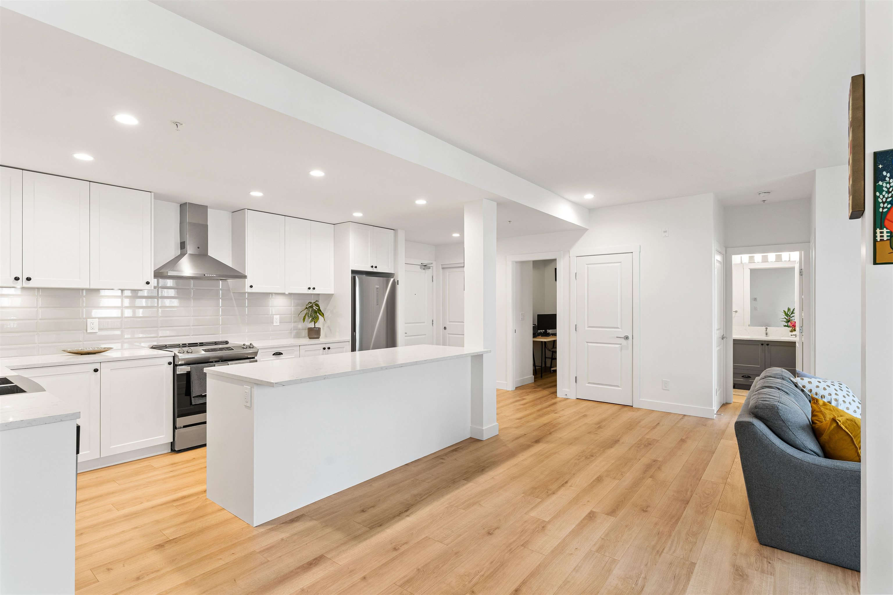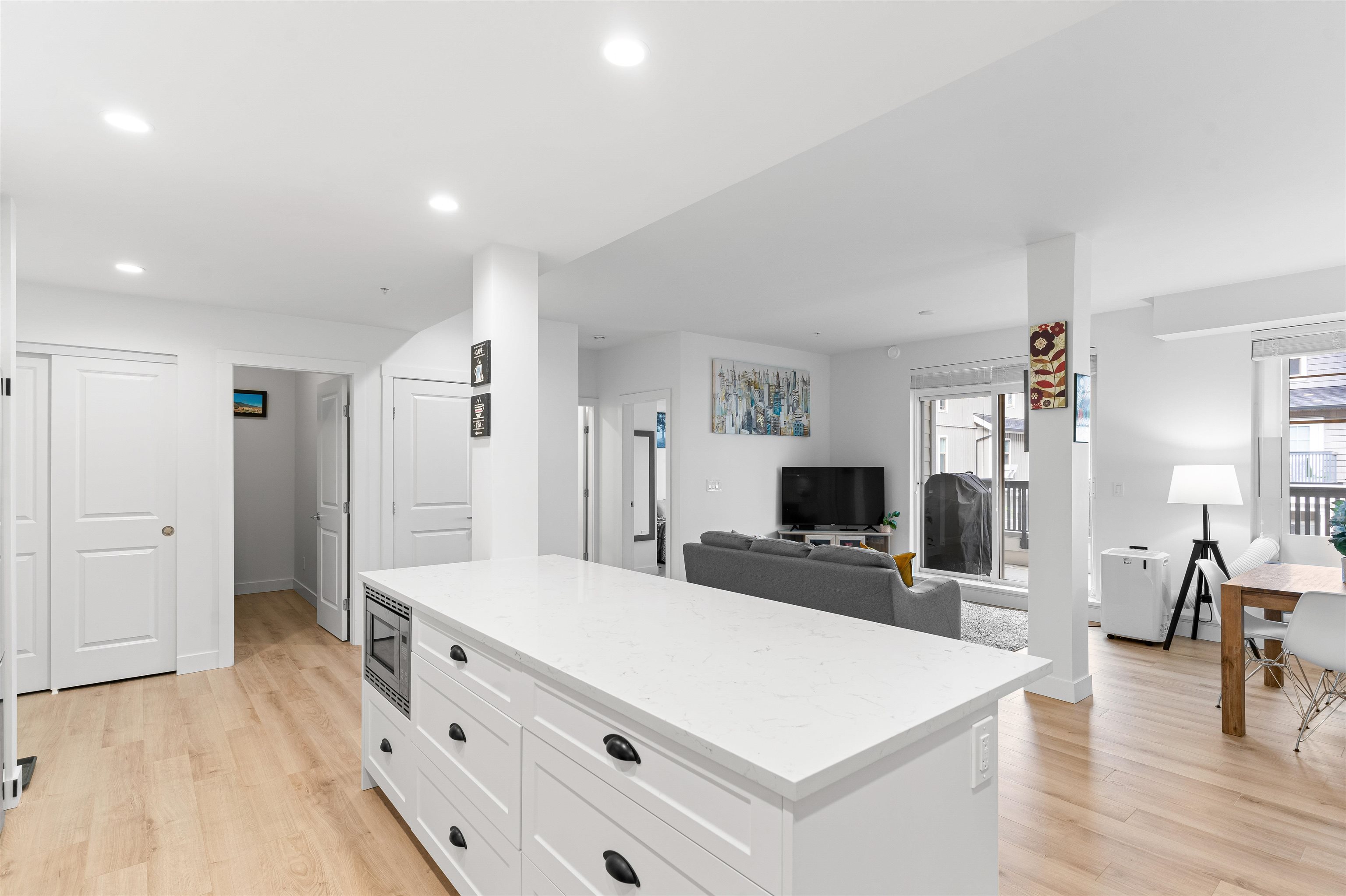 Welcome to Township Commons conveniently located within walking distance of all Langley has to offer. This 1244 sq ft two bedroom + den condo competes with the size of some townhomes with the advantage of one-floor living. Open concept main living area with a modern designer kitchen features an oversized island, classic shaker cabinets and quartz countertops. The massive master bedroom is large enough to have a sitting area or a second bed! The ensuite boasts a shower and tub and double sinks with plenty of...