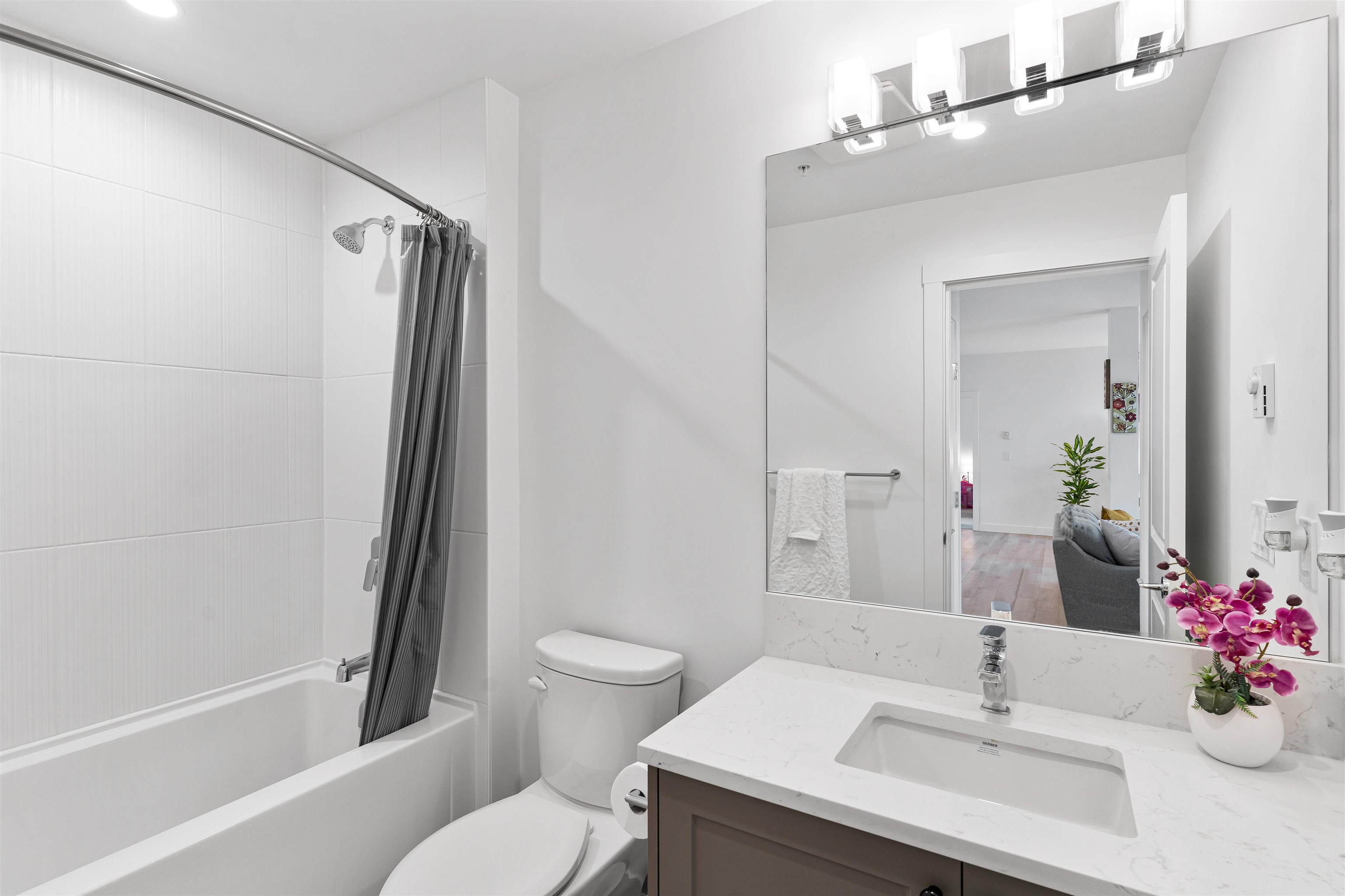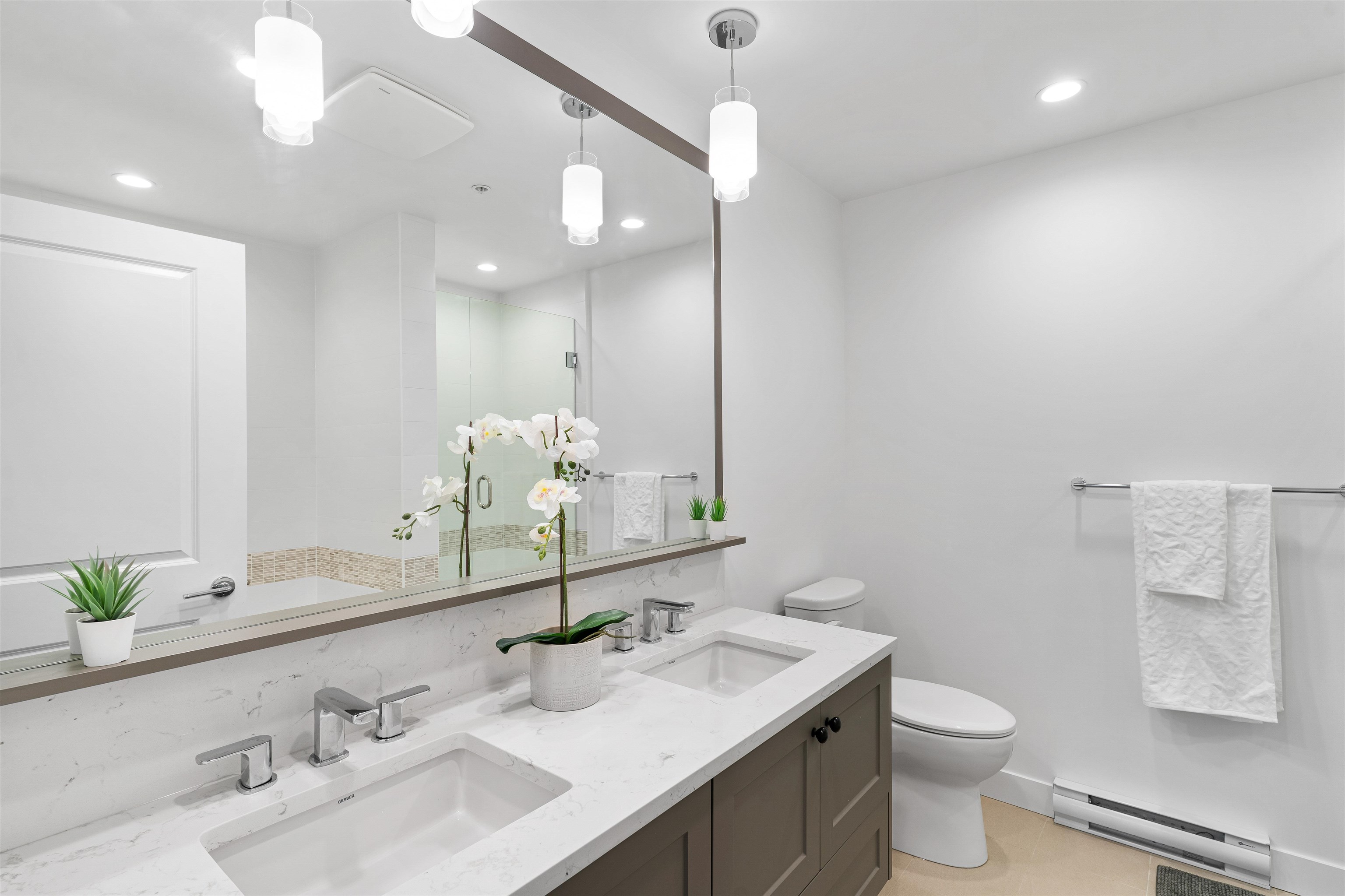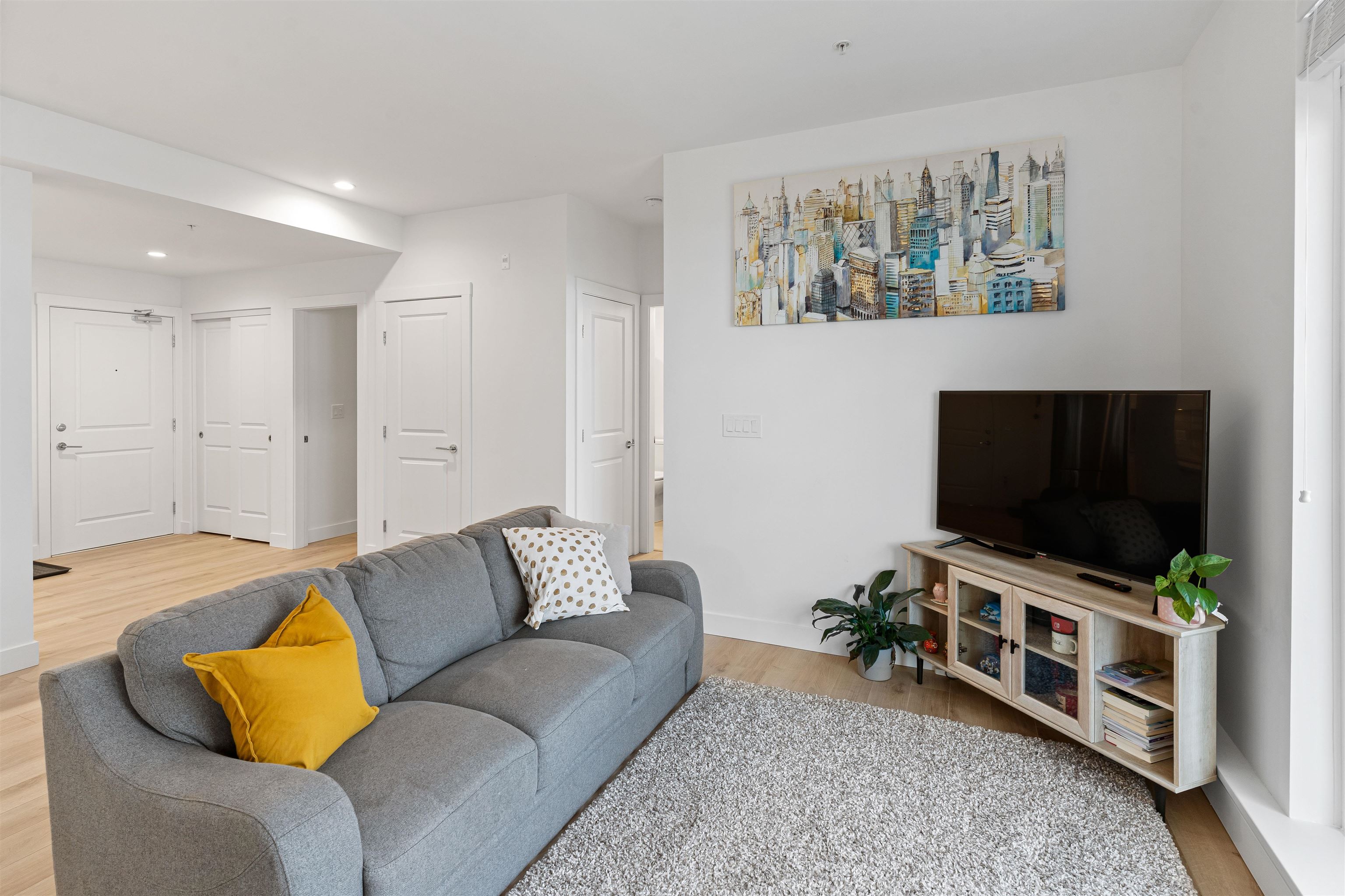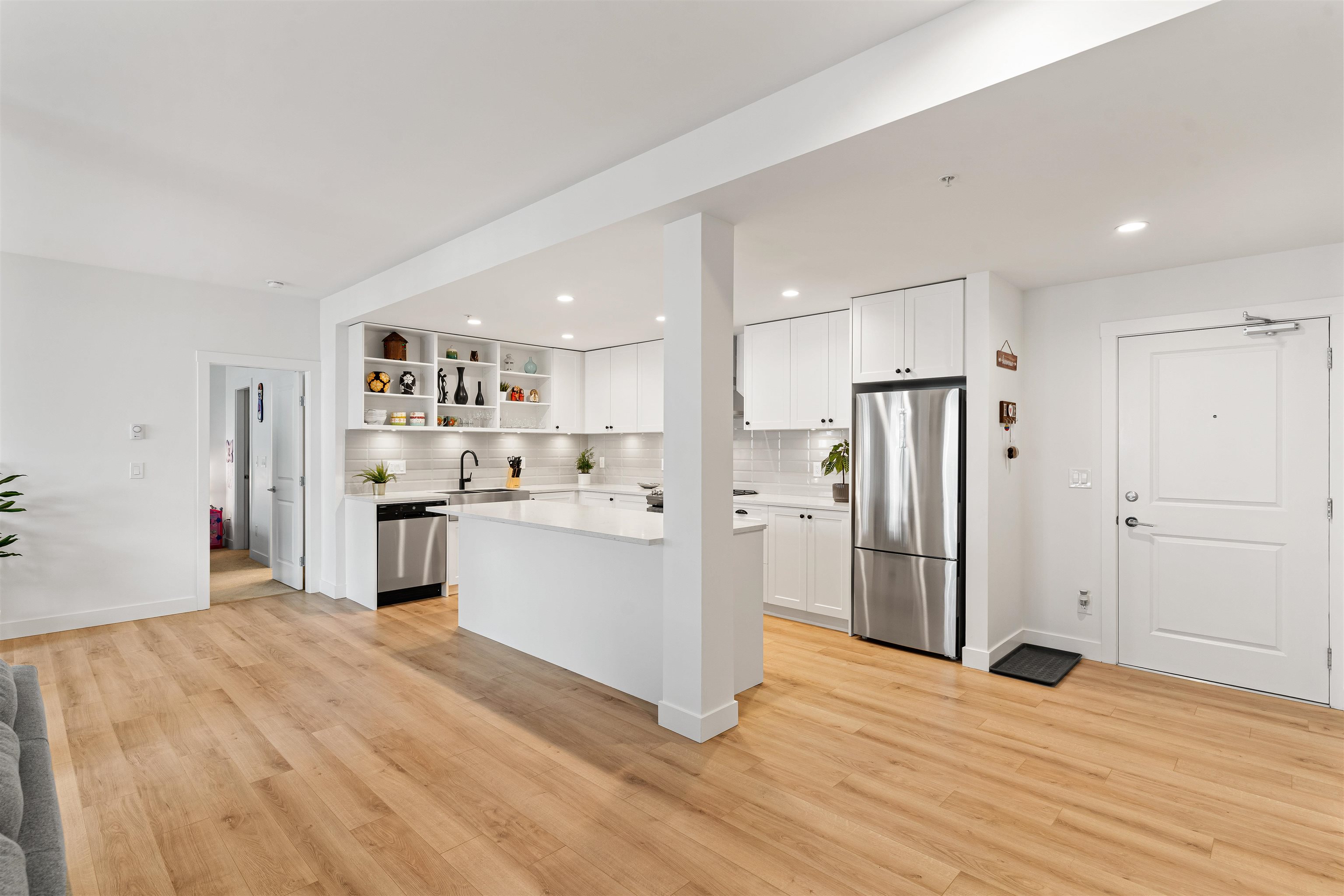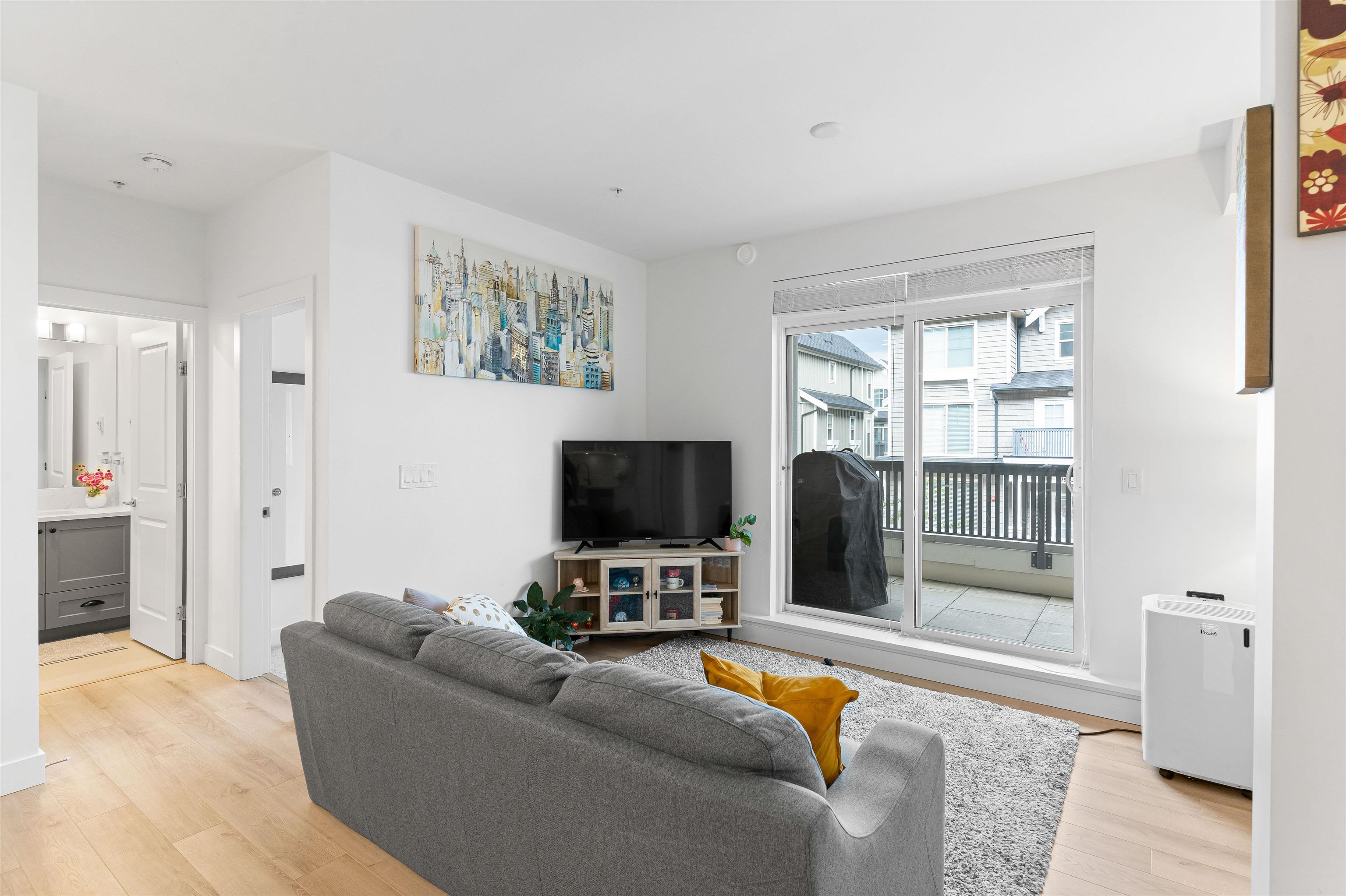 Welcome to Township Commons conveniently located within walking distance of all Langley has to offer. This 1244 sq ft two bedroom + den condo competes with the size of some townhomes with the advantage of one-floor living. Open concept main living area with a modern designer kitchen features an oversized island, classic shaker cabinets and quartz countertops. The massive master bedroom is large enough to have a sitting area or a second bed! The ensuite boasts a shower and tub and double sinks with plenty of...
