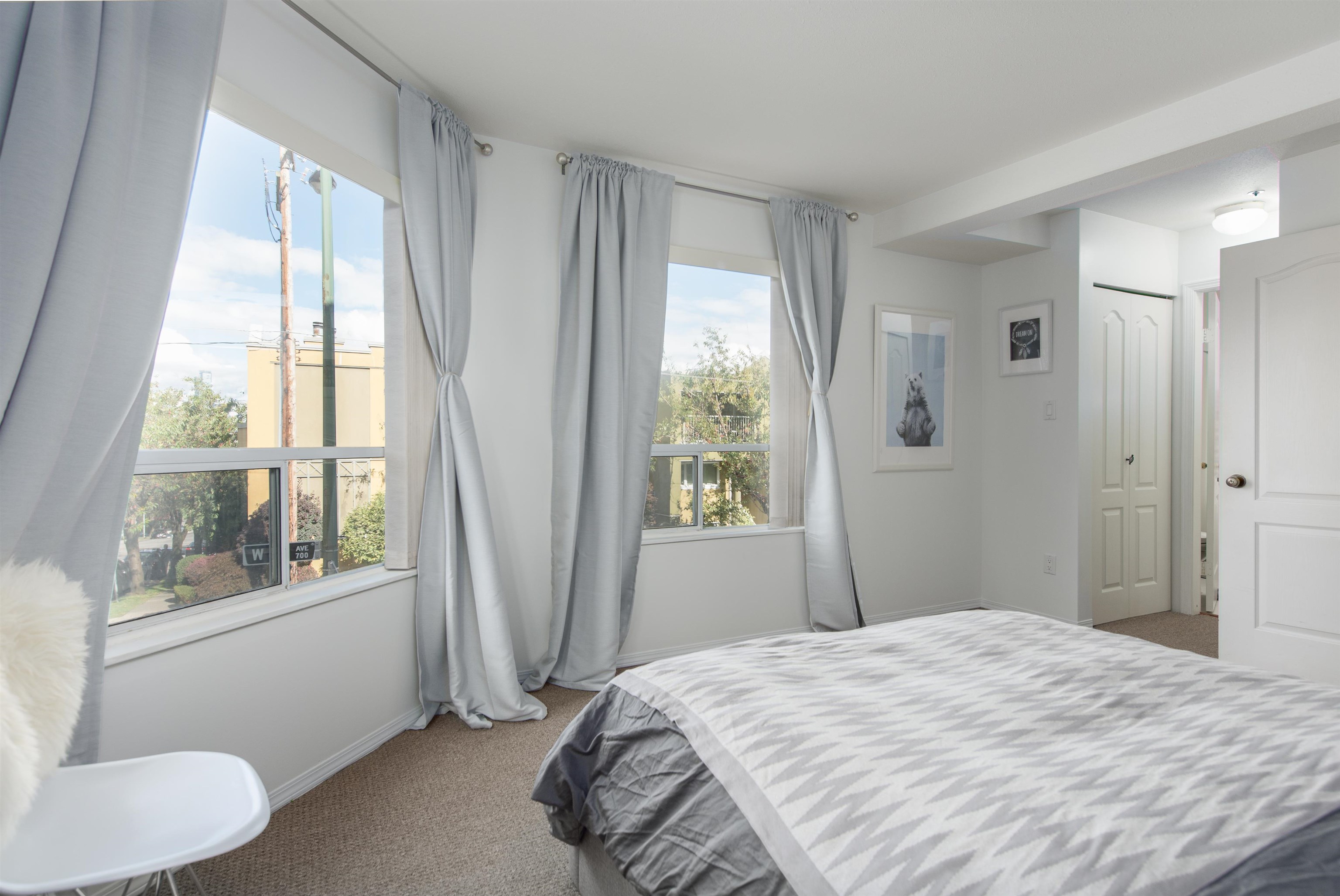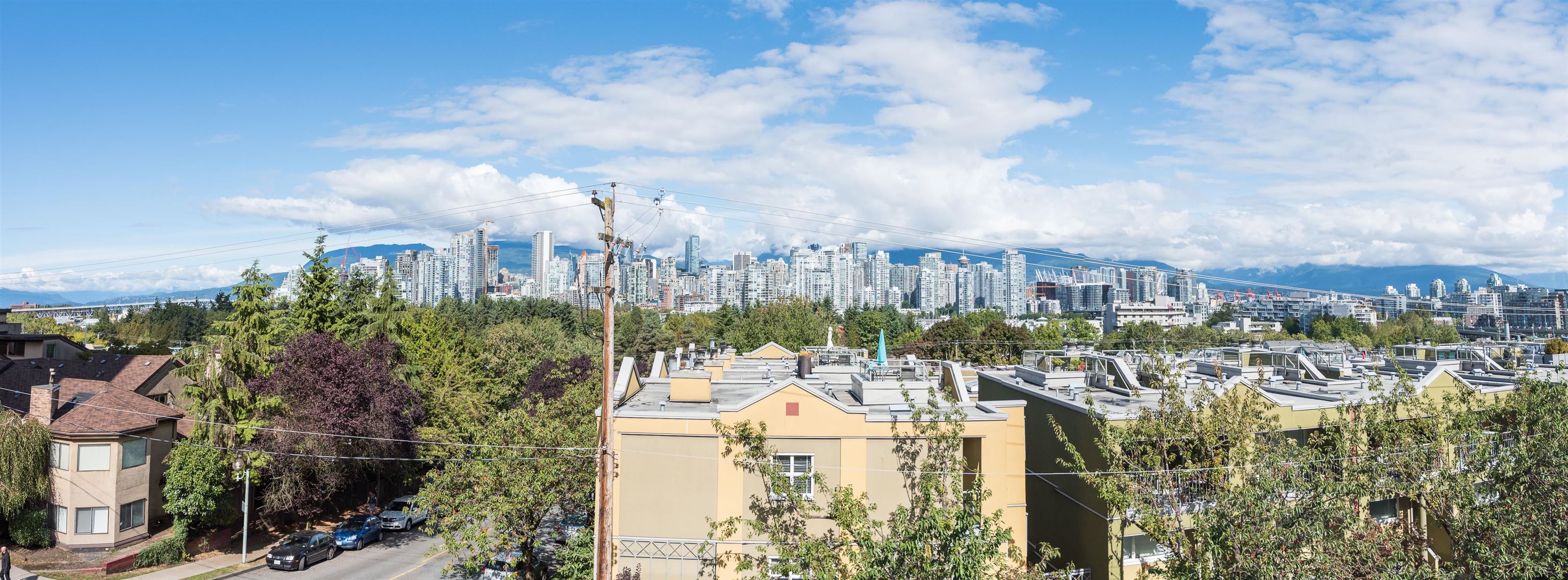 Spacious 3 bedroom reverse-layout townhome located in the heart of Fairview. The main living area showcases impressive city and mountain views and soaring ceilings. Enjoy cozy evenings by the gas fireplace, or relaxing on your private rooftop patio. Ideally located within walking distance to Broadway, Granville Island, & rapid transit. 2 parking stalls & 1 storage locker included. No dogs. OPEN HOUSE SATURDAY MARCH 21 (2-4PM).