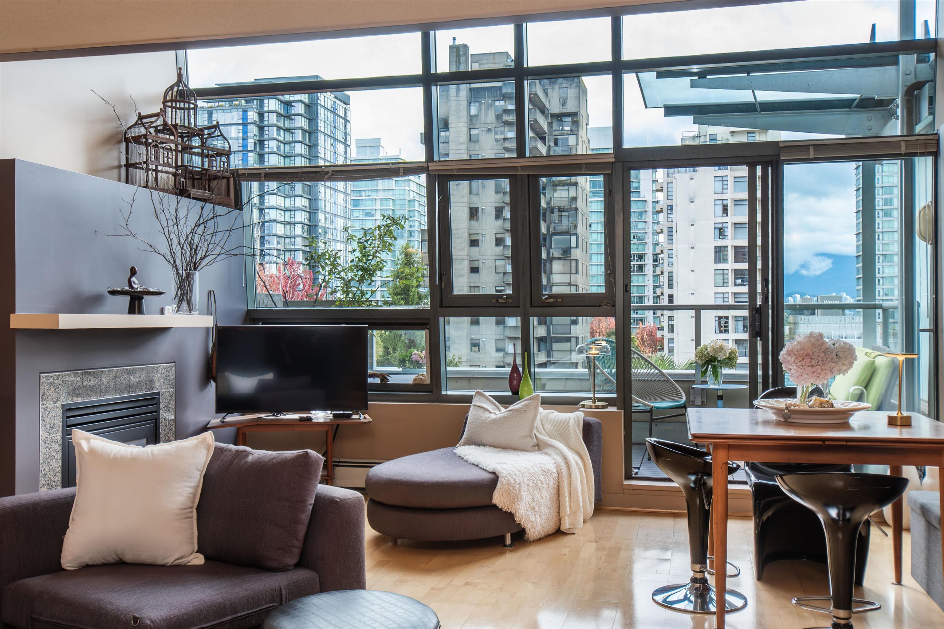 The West End LOFT you've been waiting for! Peaceful + Private. This incredible Penthouse 2 level Loft with 2 bedrooms (each w/ensuite) upstairs + den/office and a powder room on the main. Soaring 18' Floor to Ceiling Windows that let the natural light and views shine in. You'll enter off the outdoor terrace into this spacious loft with both North and South exp. Room to entertain, space for an office and a great kitchen. Enjoy the mountain, water & city views, cozy f/p & balcony. Perfectly located in the bes...